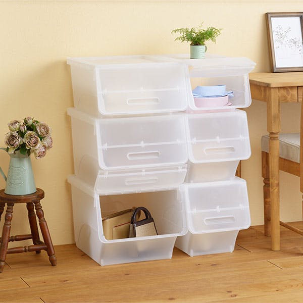 ■前面開閉式だから、積み重ねても下に入っているものが取り出せる■蓋がカパッと開いてそのまま固定できるから出し入れラクラク■5つのサイズを自由に組み合わせできる■別売りキャスターで移動ラクラク!■収納目安(約) ・トレーナー…4枚・Yシャツ…11枚・バスタオル…4枚
