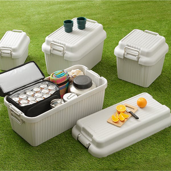 ■耐荷重100kgの頑丈でおしゃれなコンテナ■Lサイズの上にSSサイズを3個またはSサイズを2個積重ねできます■座ってもOK!■大きめハンドルで持ち運びしやすい■蓋を本体に安定してかけられるグリップシート付き■収納目安(約)2Lペットボトル…21本※メーカーや形状により入らない場合がございます