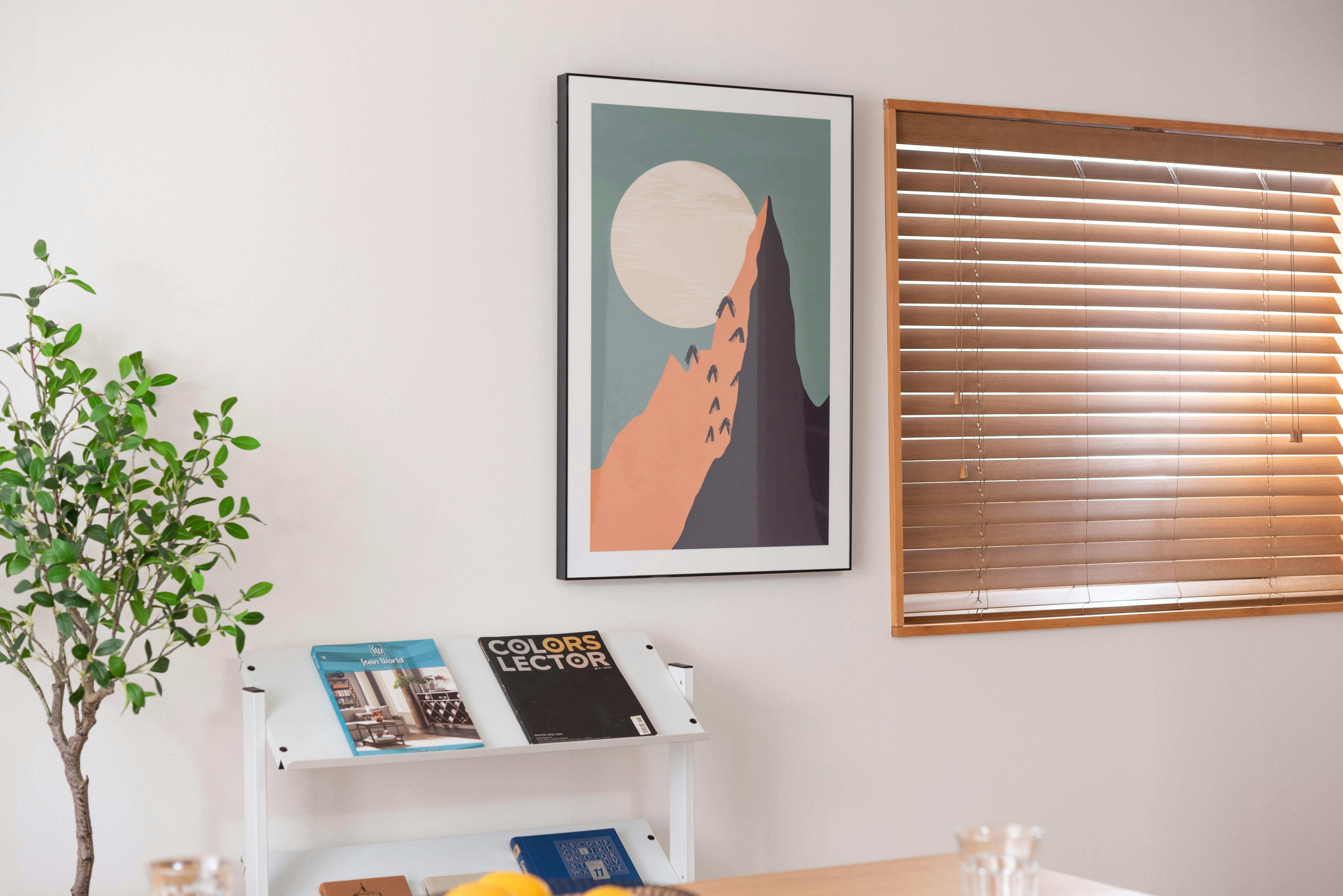 プッシュピンやフックに金具を引っ掛けるだけで簡単に設置することができます。