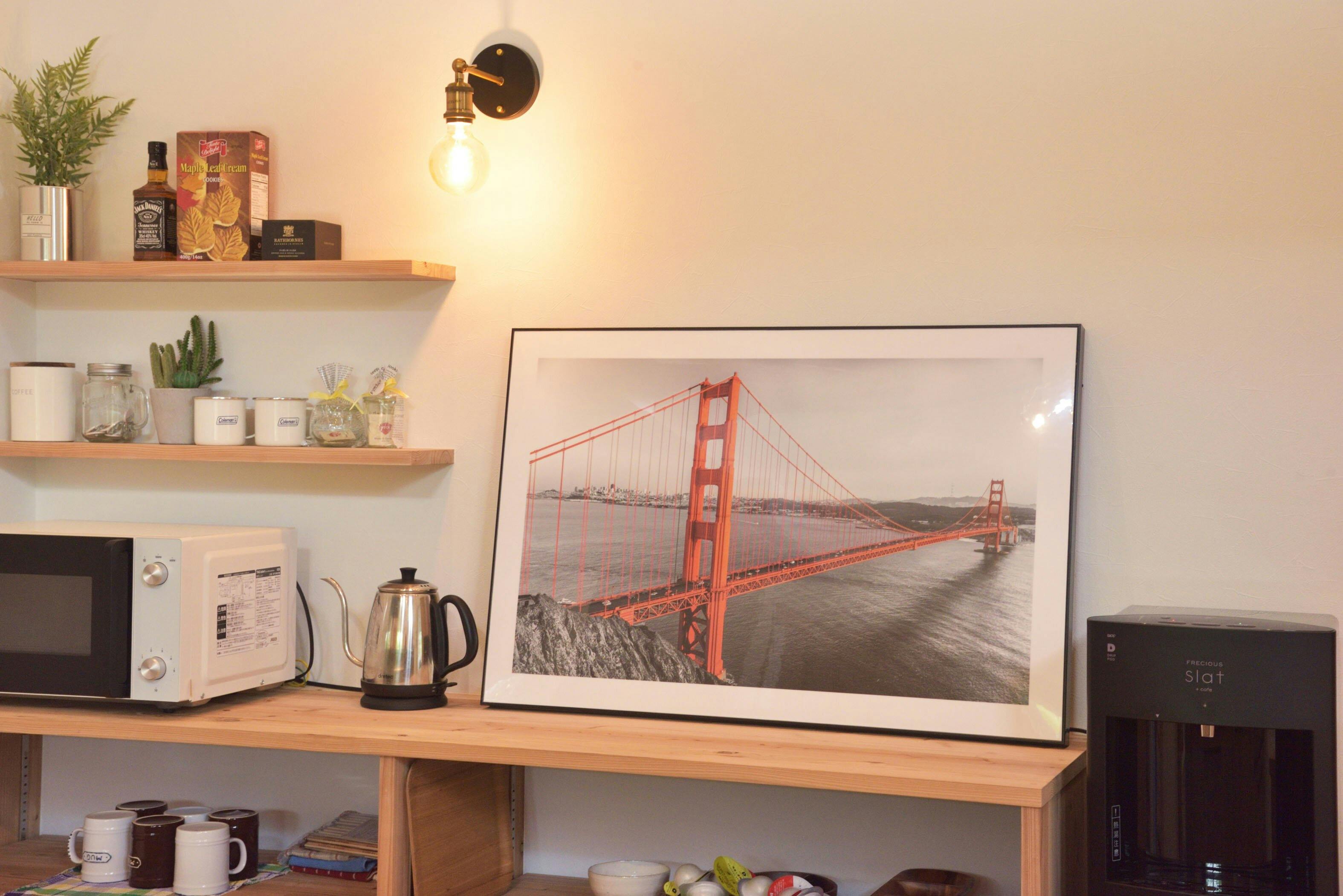プッシュピンやフックに金具を引っ掛けるだけで簡単に設置することができます。