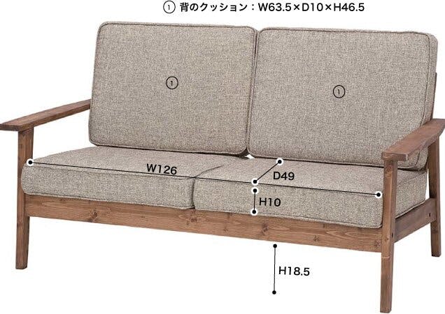 素朴な質感の木フレームとナチュラルカラーの生地を組み合わせた、お部屋に馴染む2人掛けソファー