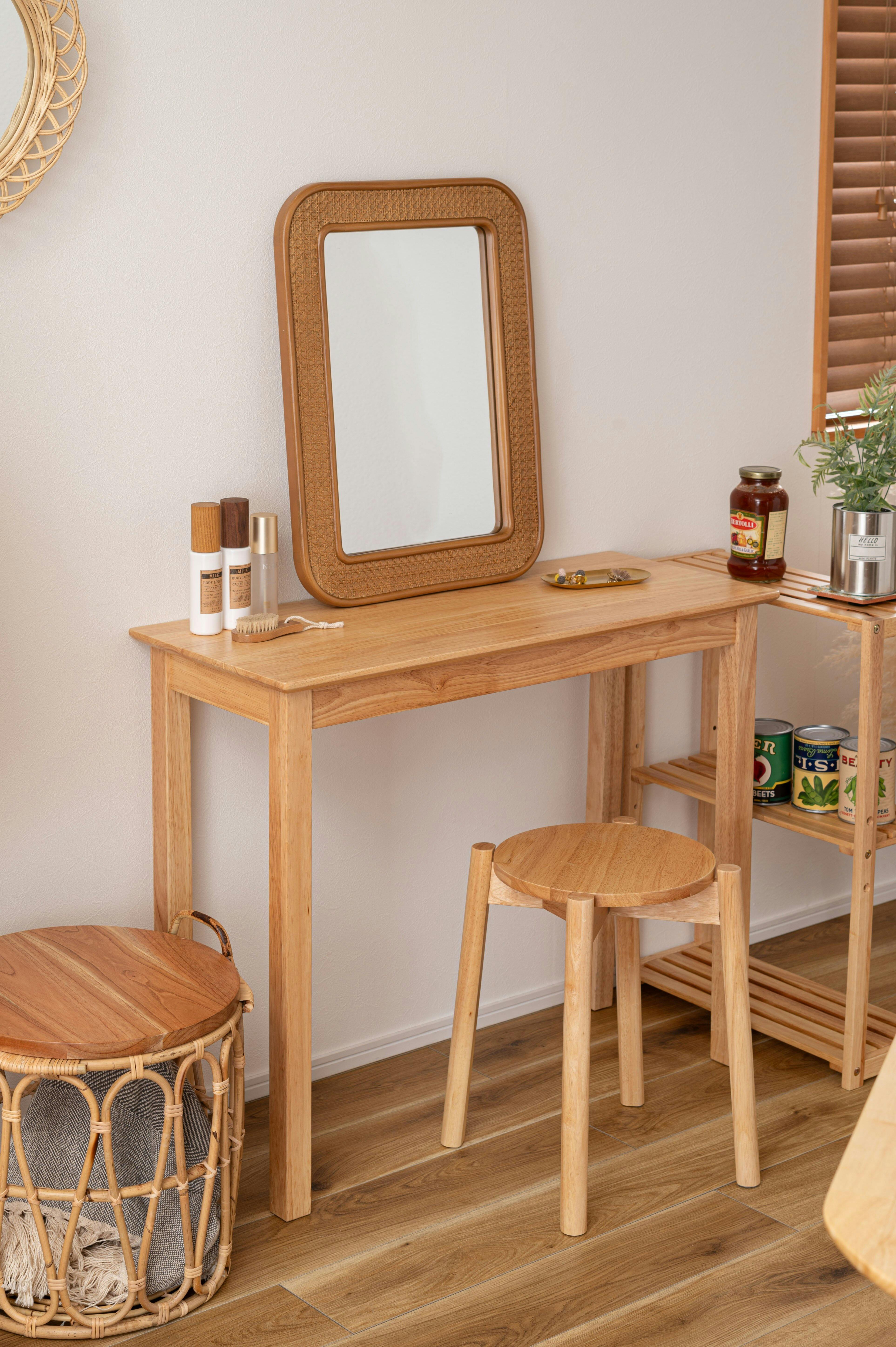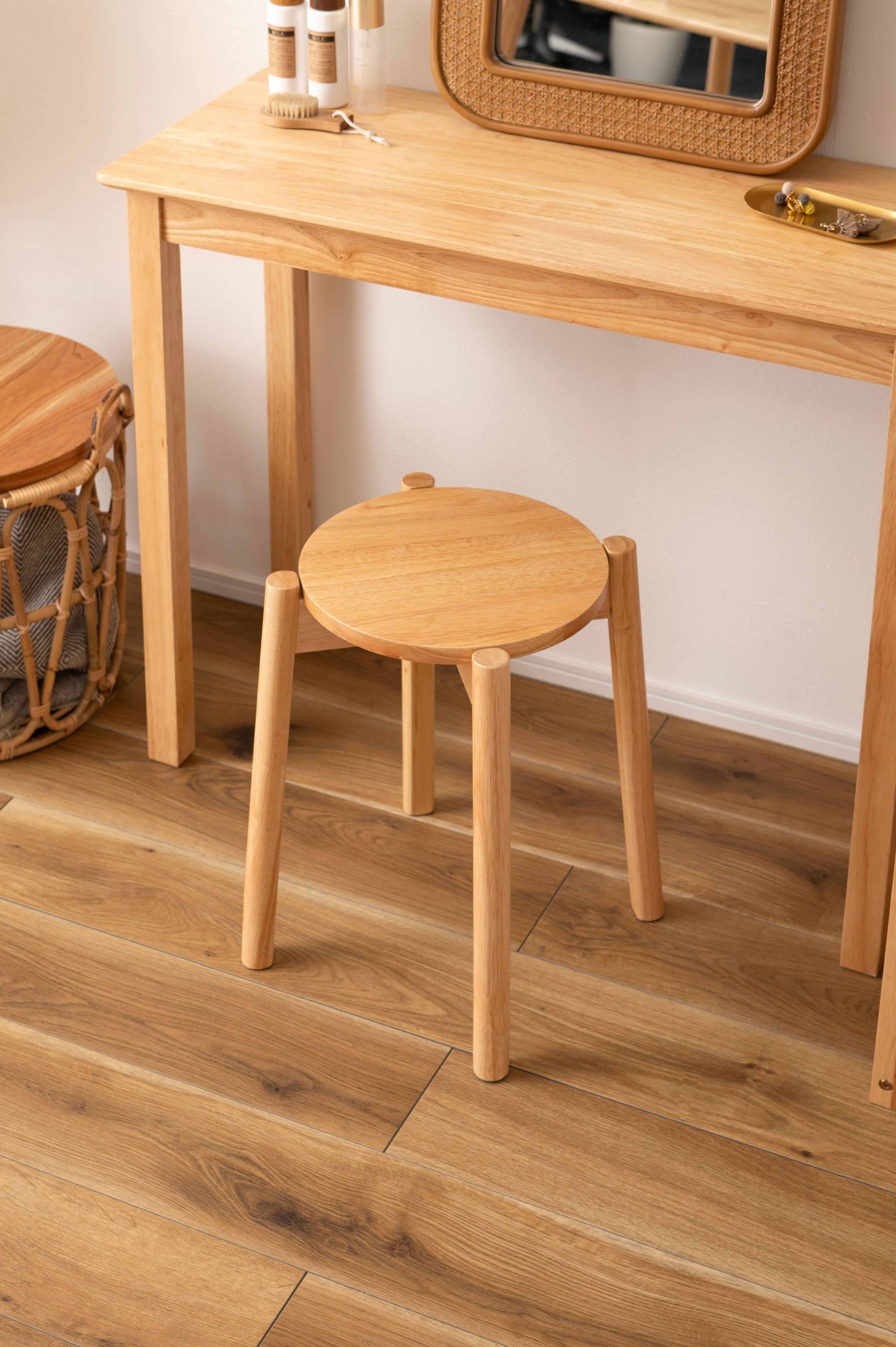 高さは約44.5cmと、テーブルやデスクに合わせやすい設計です。背もたれが無いので、使わないときはテーブルの下にスッキリ収納しておけます。