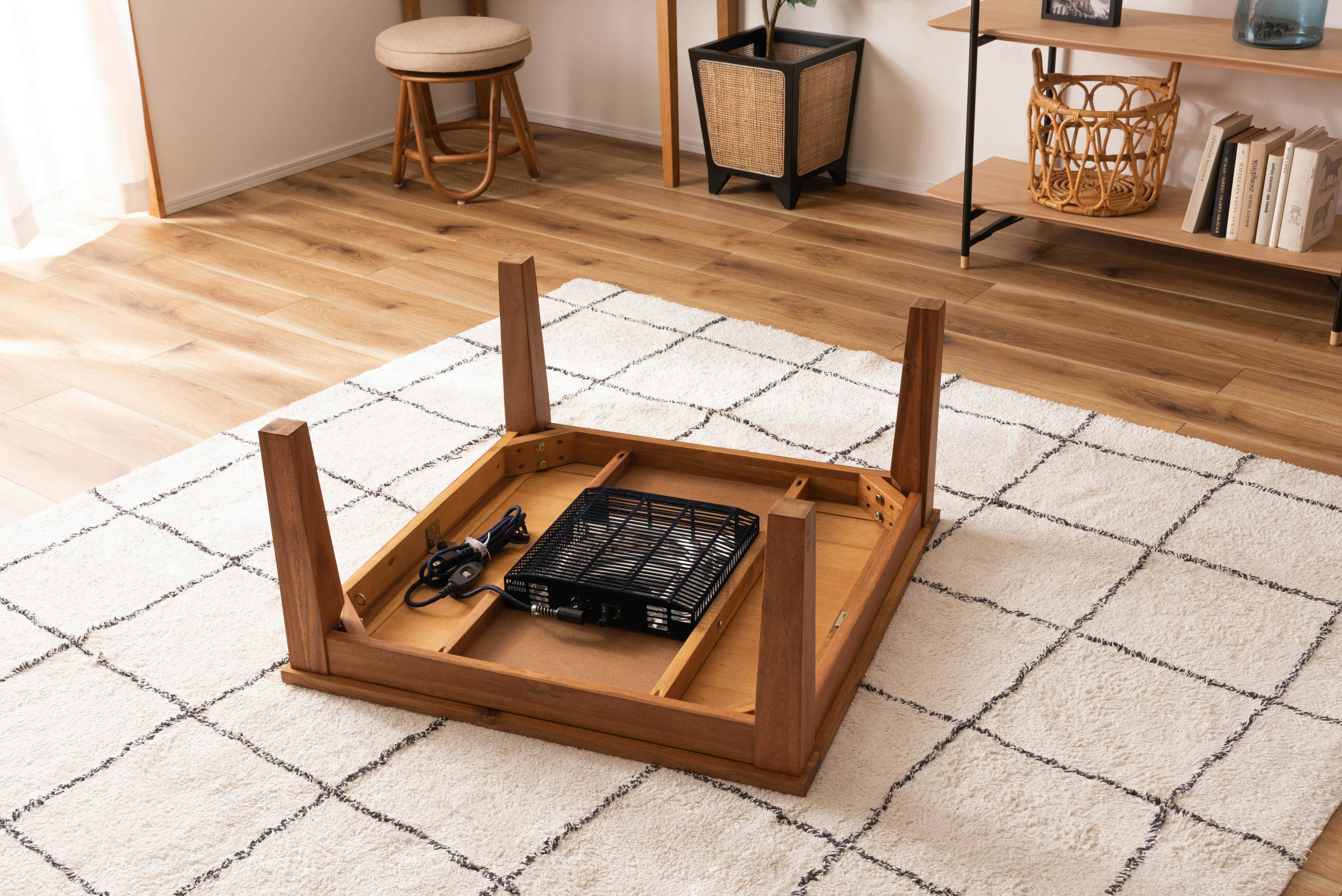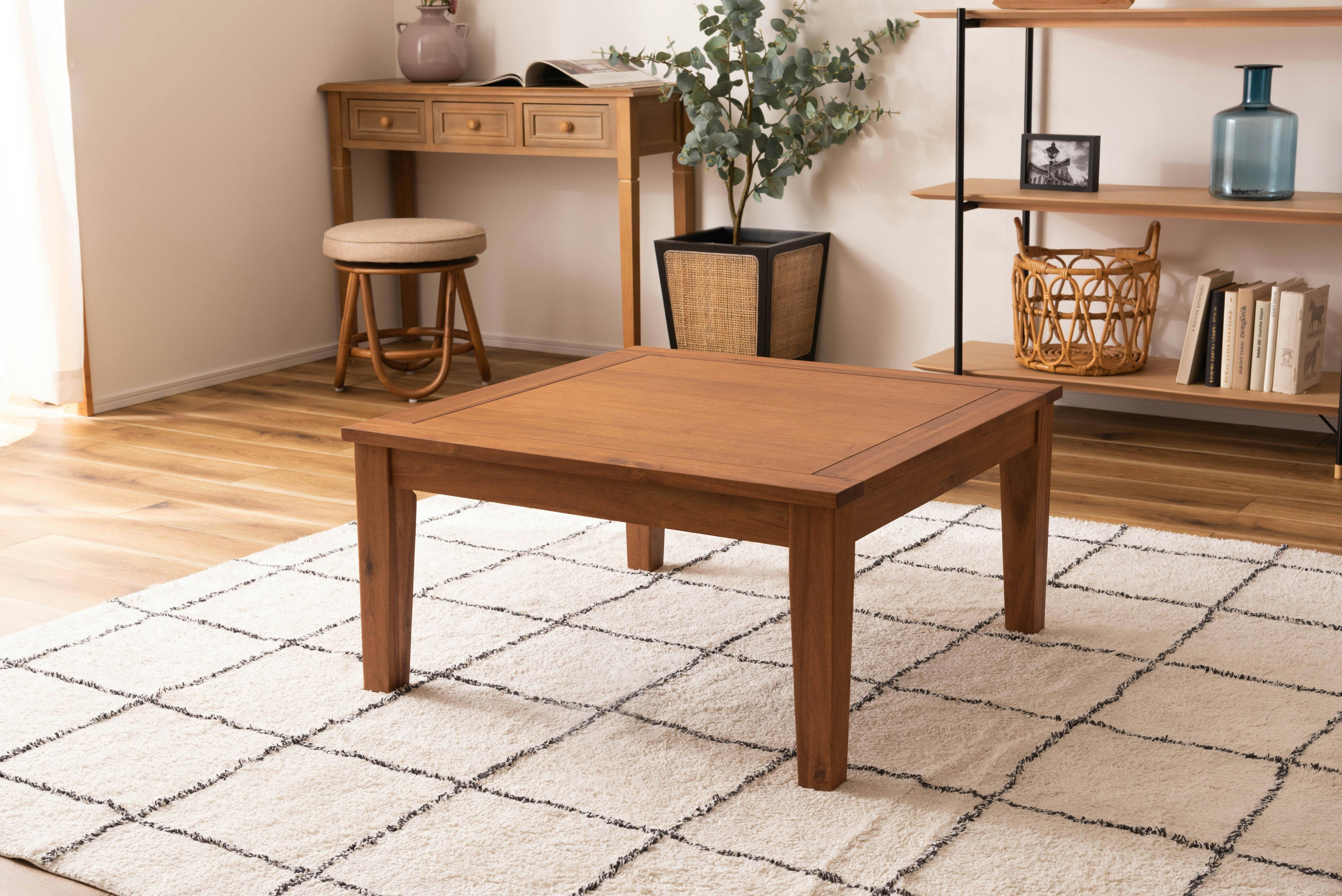 ●正方形は75×75cmの4面使えるちょうど良いサイズ。コンパクトでも対面使用が出来る正方形の定番サイズ。●夏はテーブルとして、冬はコタツとして。直線を活かしたシンプルなラインが天然木の優しい風合いでやわらかな印象にデザインされています。コンパクトな設計はテーブルとしても使いやすいサイズ感でシーズンを選ばず楽しめます。