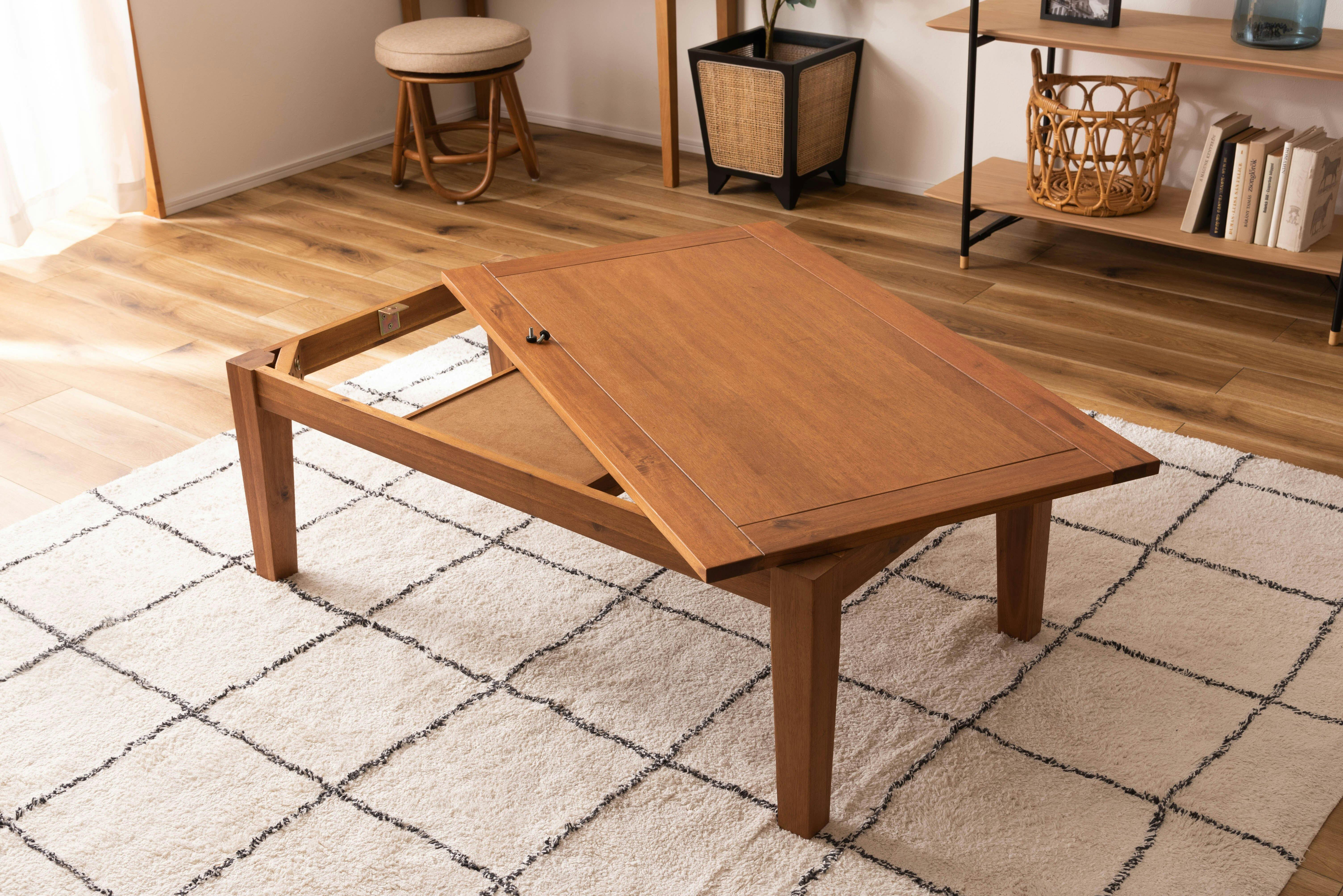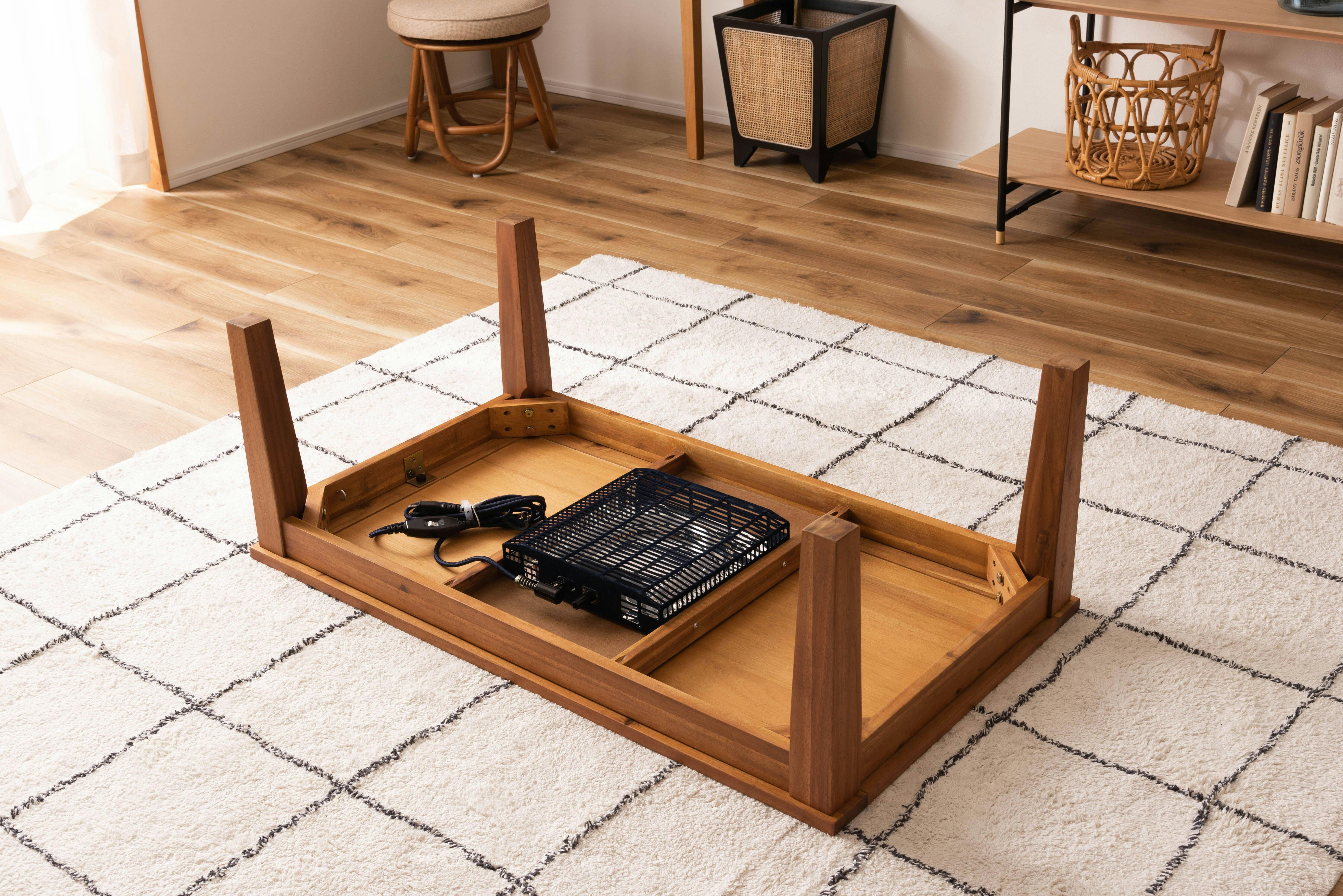 ●長方形は105×60cmの奥行がコンパクトなサイズ。オフシーズンでも使えるようリビングテーブルに近いサイズに仕上げました。●夏はテーブルとして、冬はコタツとして。直線を活かしたシンプルなラインが天然木の優しい風合いでやわらかな印象にデザインされています。コンパクトな設計はテーブルとしても使いやすいサイズ感でシーズンを選ばず楽しめます。