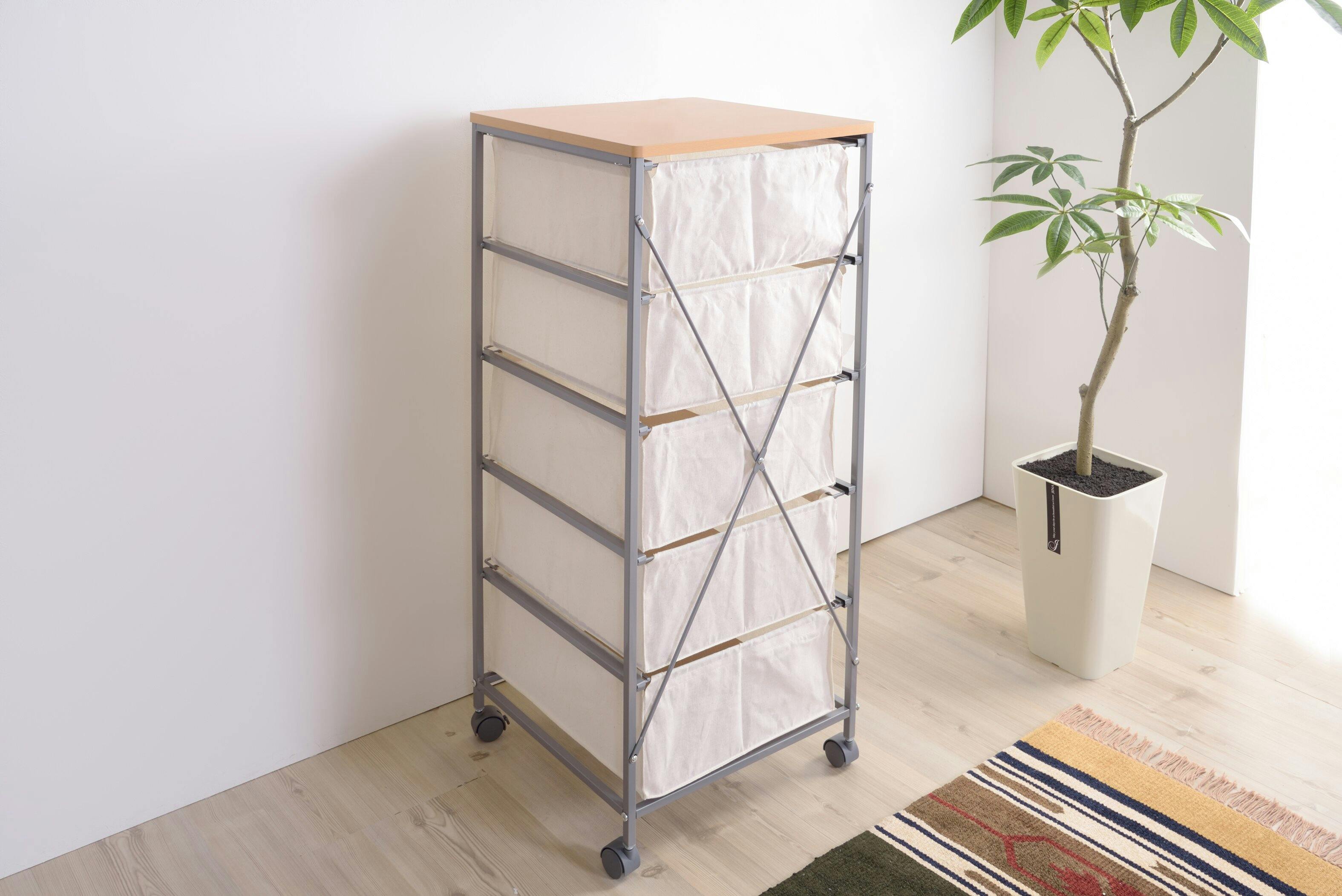 東谷 Room Essence キャンバスチェスト5段 ベージュ Size:43×44×101.5 【4985155018215】 MIP-279【別送品】
