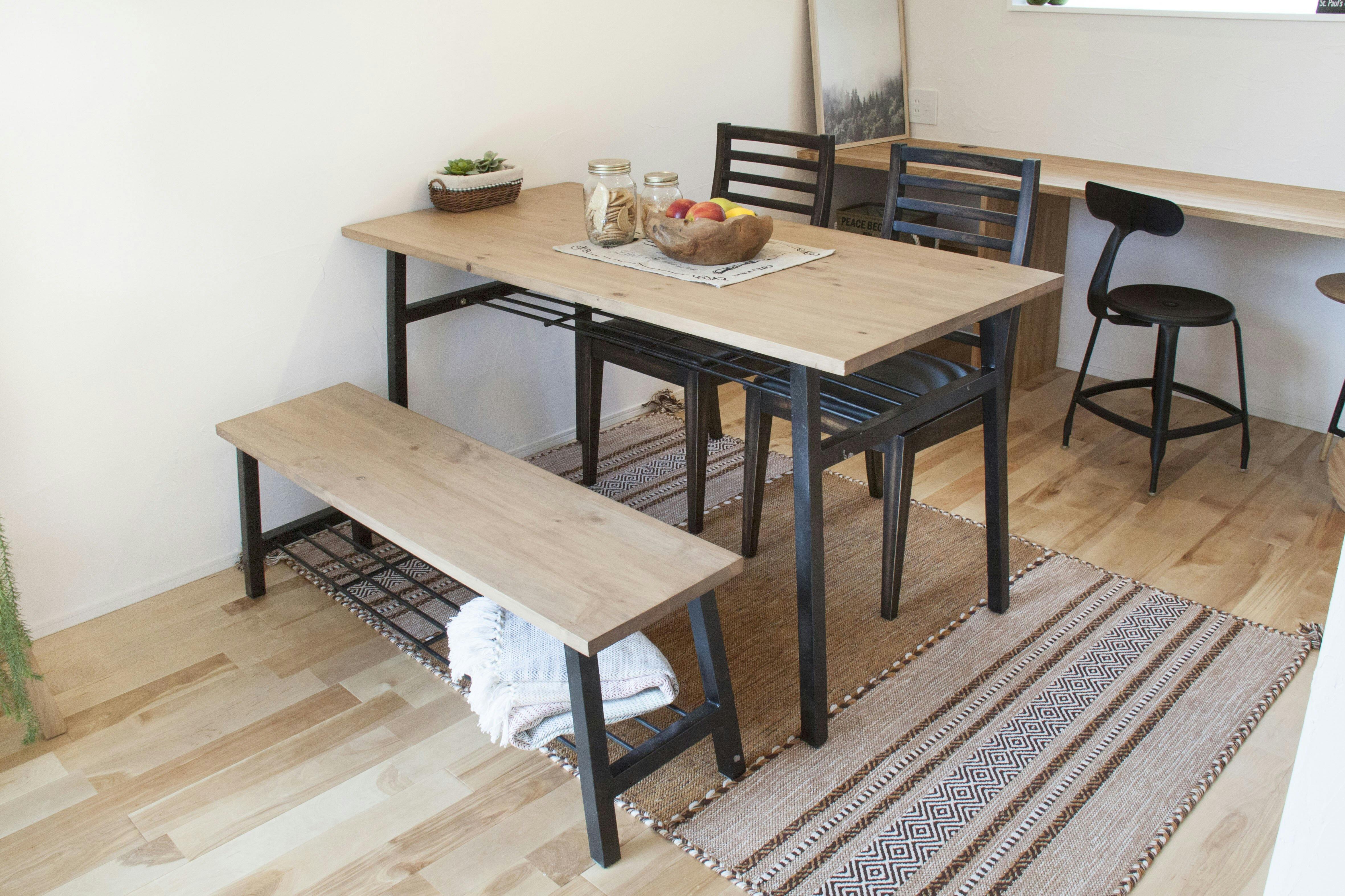 アイアン×木材でヴィンテージテイストに仕上げたダイニングベンチ