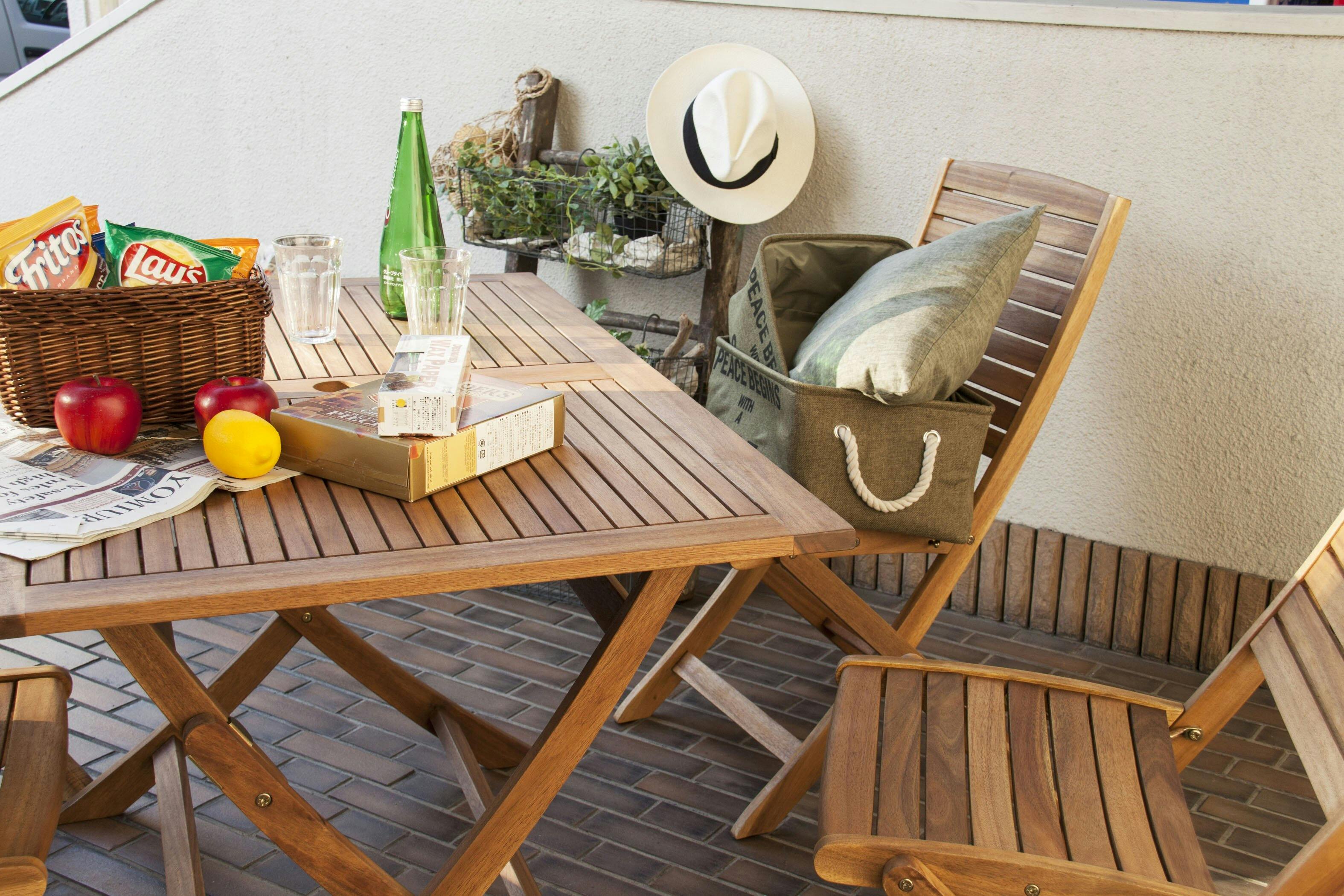 木の温もりを感じられる、折りたたみ可能な木製のガーデンテーブル