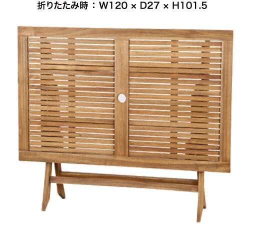 ※常時外置きは出来ません。直射日光・雨ざらしの環境下では劣化が早まりますので、屋根付きのテラス等でご使用ください。◆組立式 付属工具:六角レンチ 組立人数:2人 組立時間:15分 静的耐荷重:20kg◆個口数:1個口 梱包サイズ:幅122×32奥行97×高さ13重量15kg