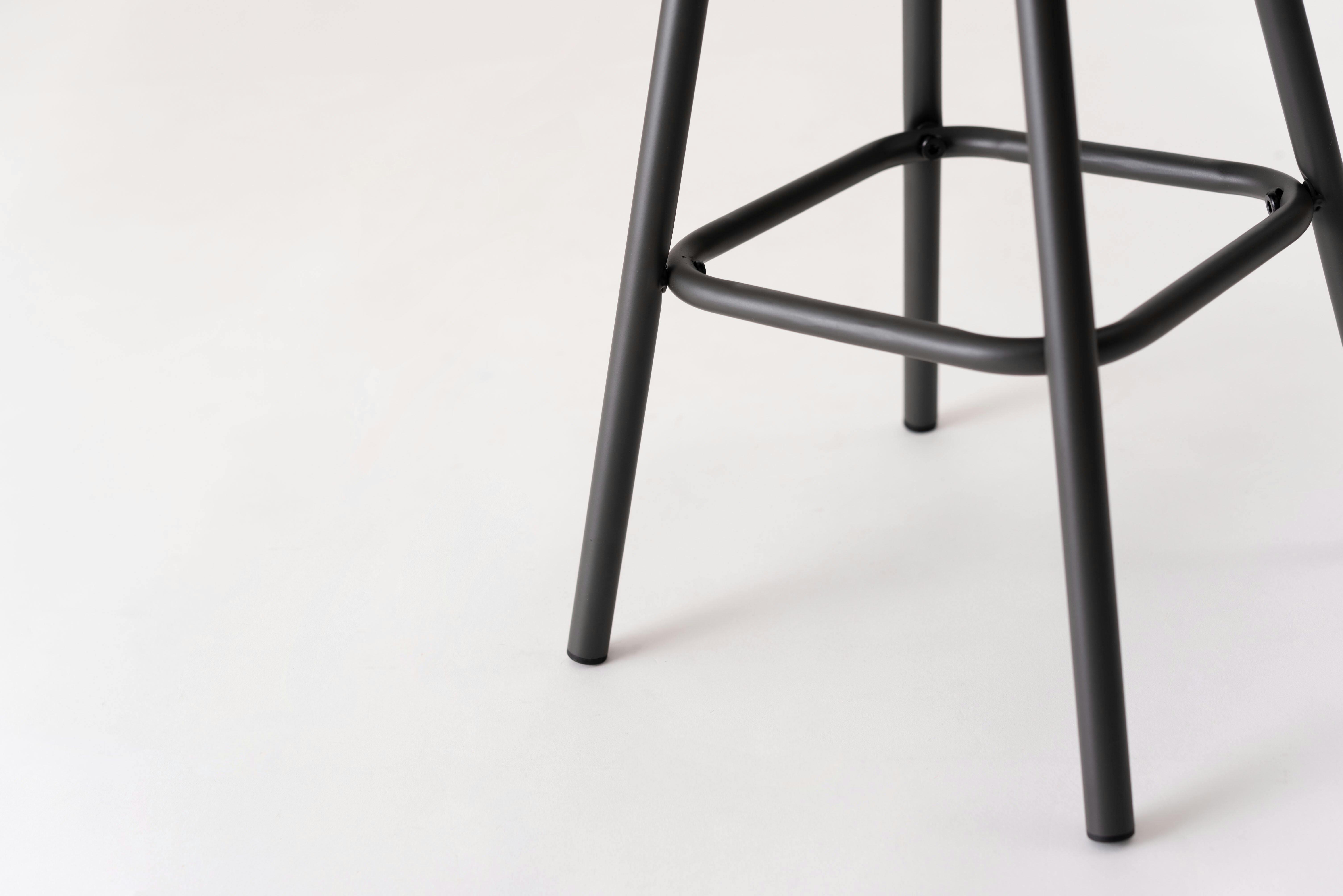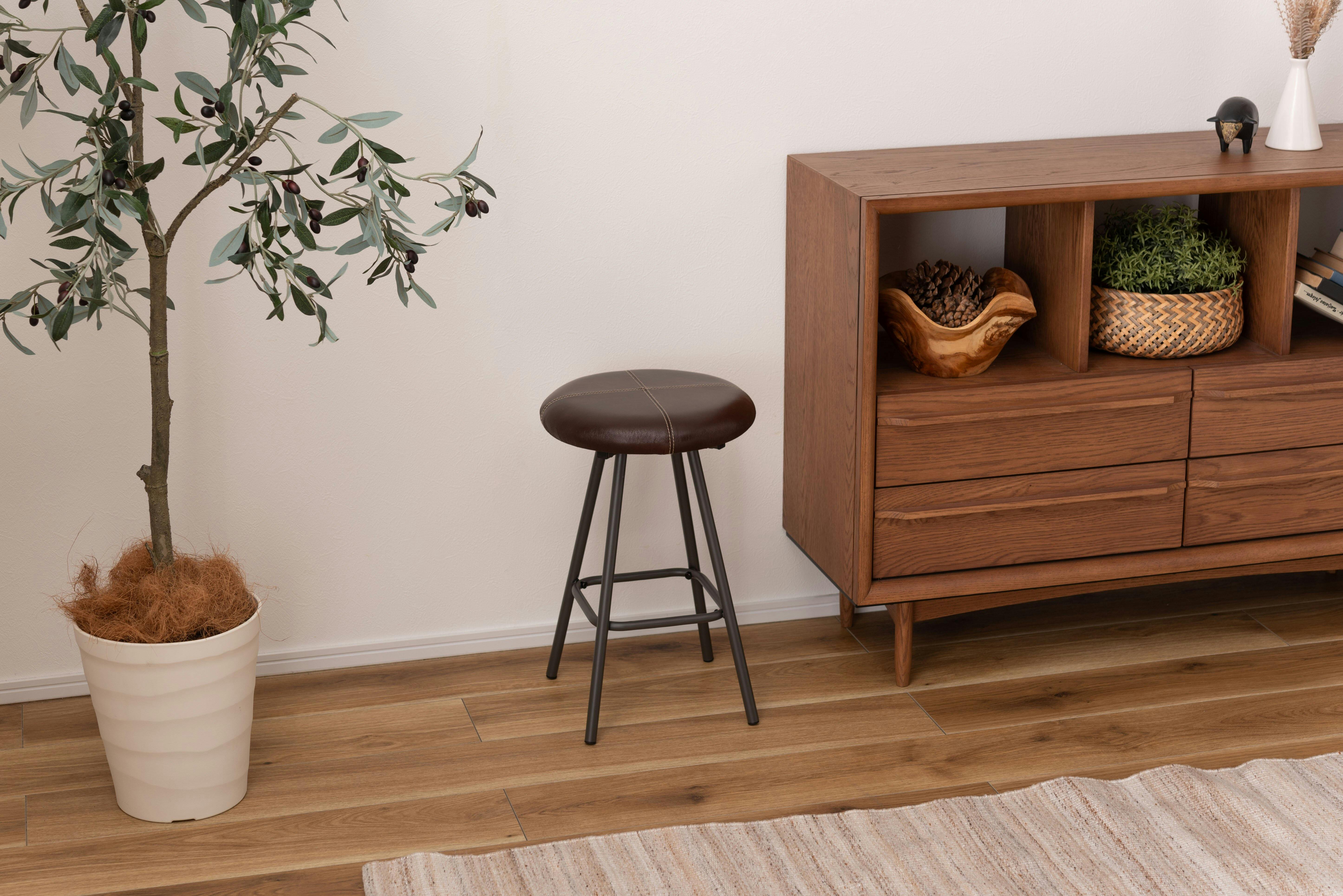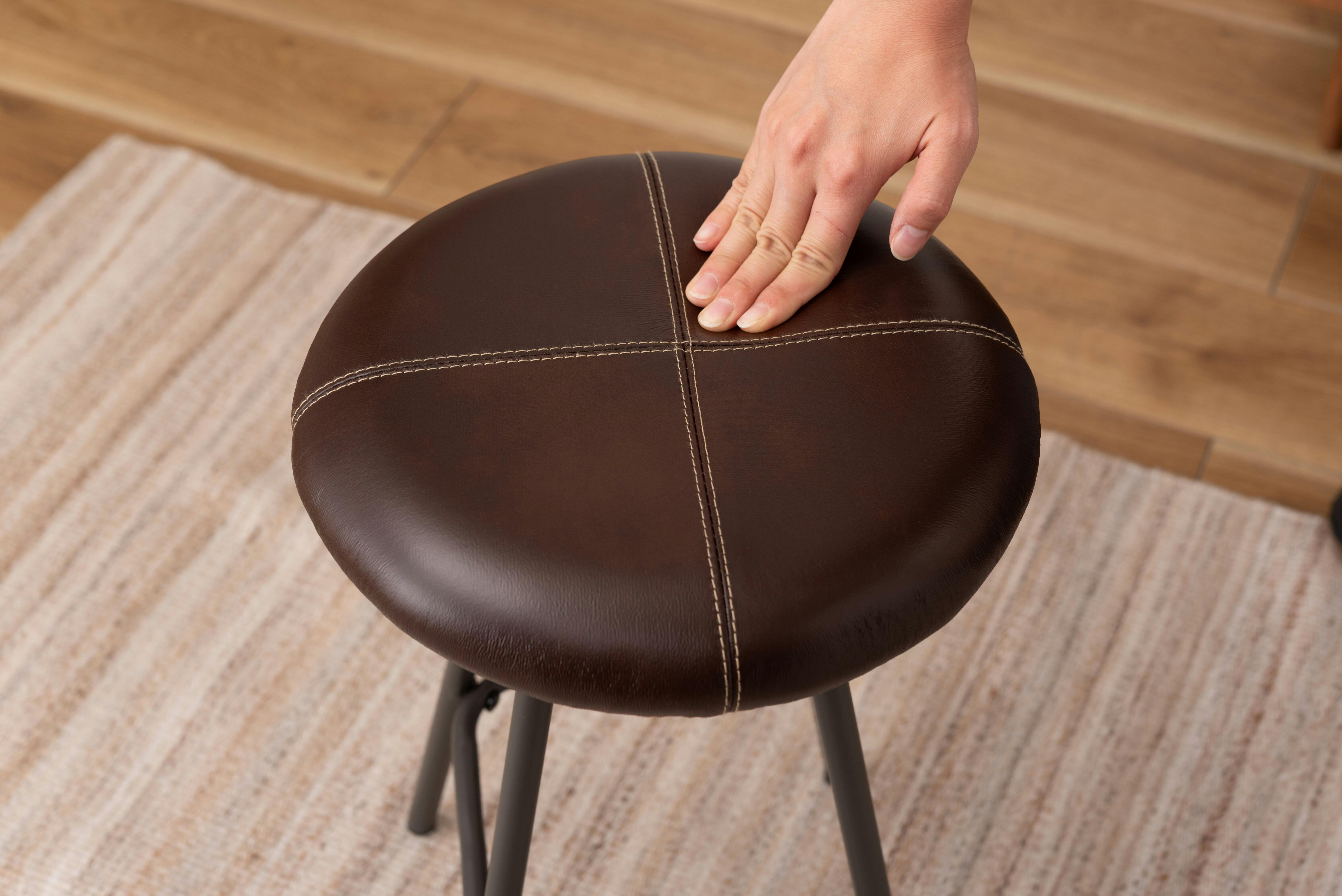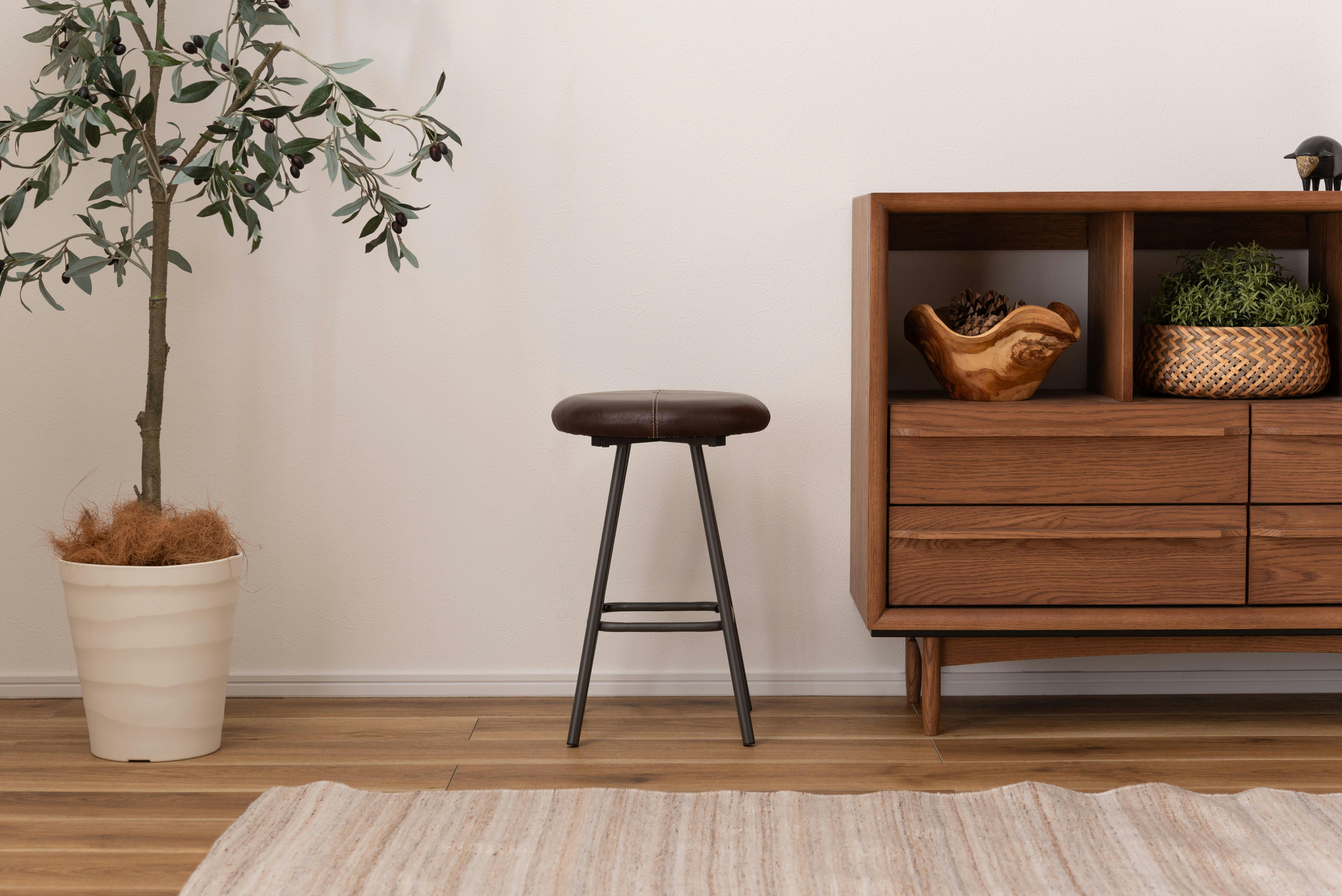 こちらのスツールの座面には、環境にやさしい素材「ボンデッドレザー」を使用しております。リアルレザーに近い風合いを持つため、本革のような質感とラグジュアリーな座り心地を体感できます。