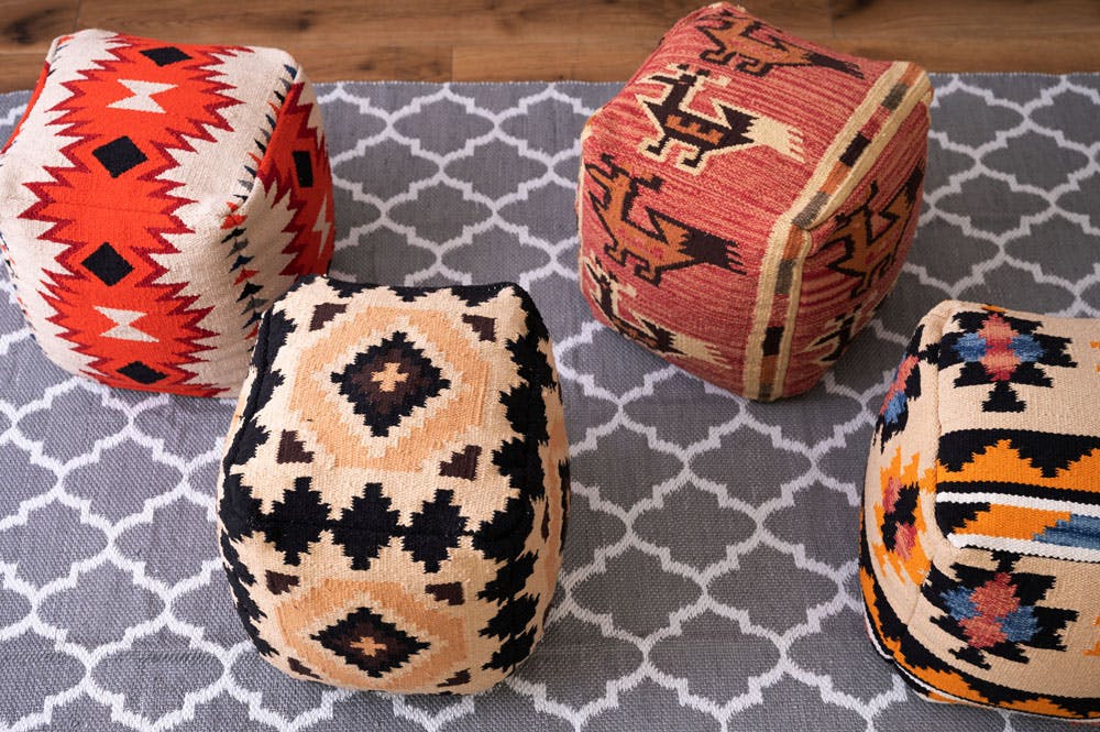 東谷 Room Essence キリムスツール Size:30×30×30 ファブリック 机 オットマン 肘置き 【4985155222773】 FAB-002A【別送品】