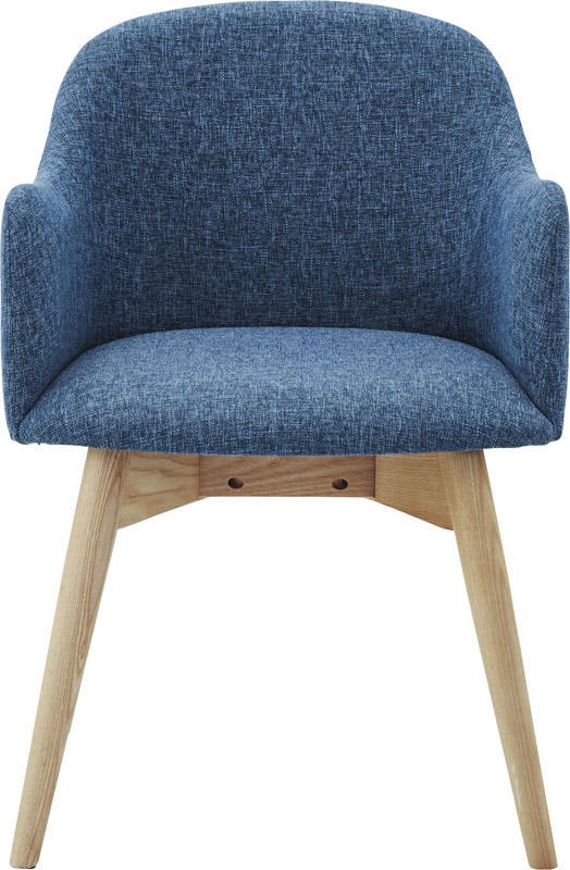 脚部は角を落とし、ハの字に設計することで、優しい印象に。背もたれとアームが一体になったチェアは、曲線を意識したデザインでかわいらしく優しく仕上げています。背もたれとアームが一体になった身体をしっかり支えるダイニングチェア。長時間座っていても疲れにくく、ダイニングでゆったりとした時間を過ごすことができます。