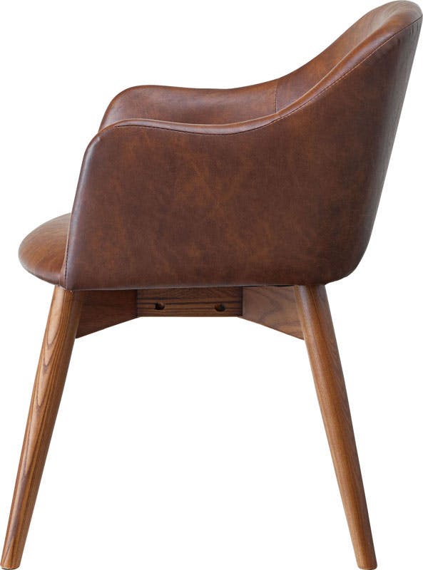 脚部は角を落とし、ハの字に設計することで、優しい印象に。背もたれとアームが一体になったチェアは、曲線を意識したデザインでかわいらしく優しく仕上げています。背もたれとアームが一体になった身体をしっかり支えるダイニングチェア。長時間座っていても疲れにくく、ダイニングでゆったりとした時間を過ごすことができます。