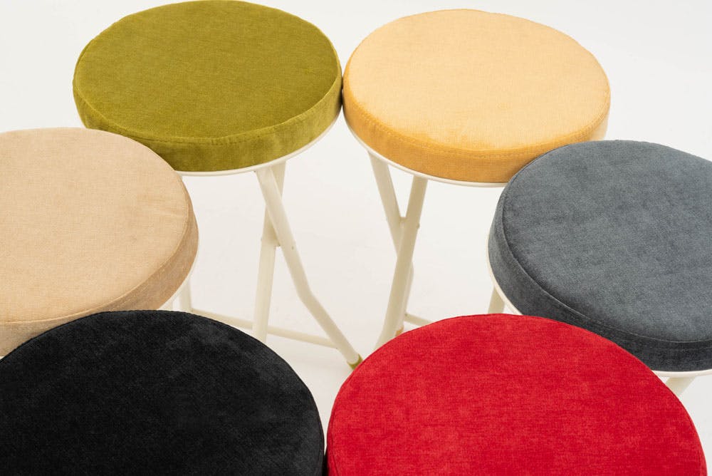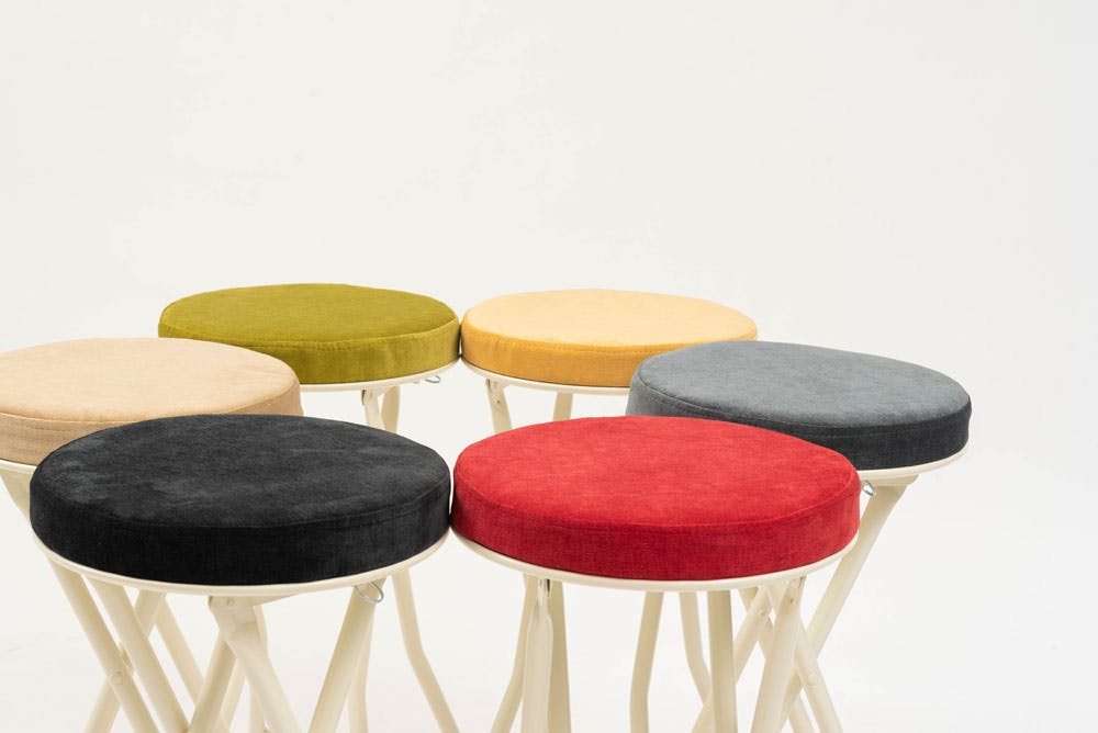 ●軽量なので持ち運びもラクラク。●折りたたみ式(フォールディング式)なので、隙間収納に最適。●ベロア生地のように細かく起毛した手触りの良い生地。●脚先キャップは座面の色と同色に揃えたデザイン。床への傷防止にもなり安心です。