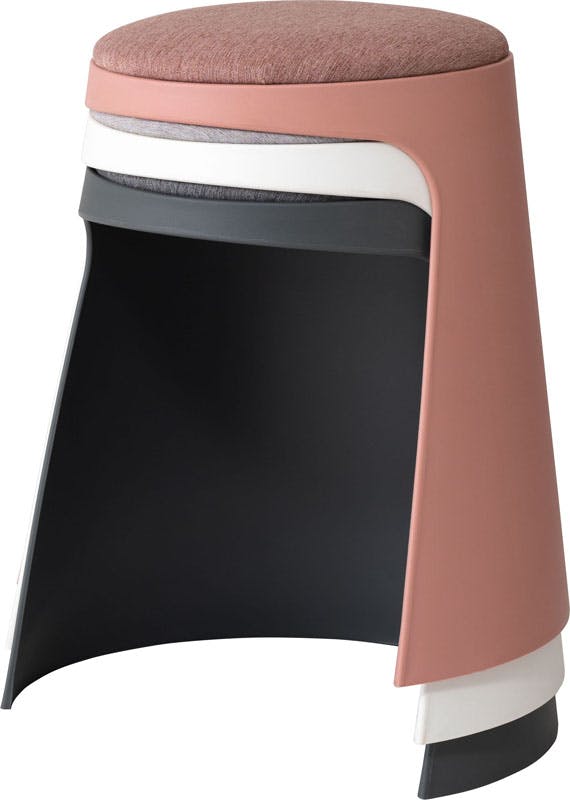 座面下に大きく空いた空間は、個性的なフォルムのデザイン性を高めるだけでなく、足を入れられる事で座りやすくなる機能性も兼ね備えています。座面にはファブリックを使用し、その座りやすさをより追求しました。