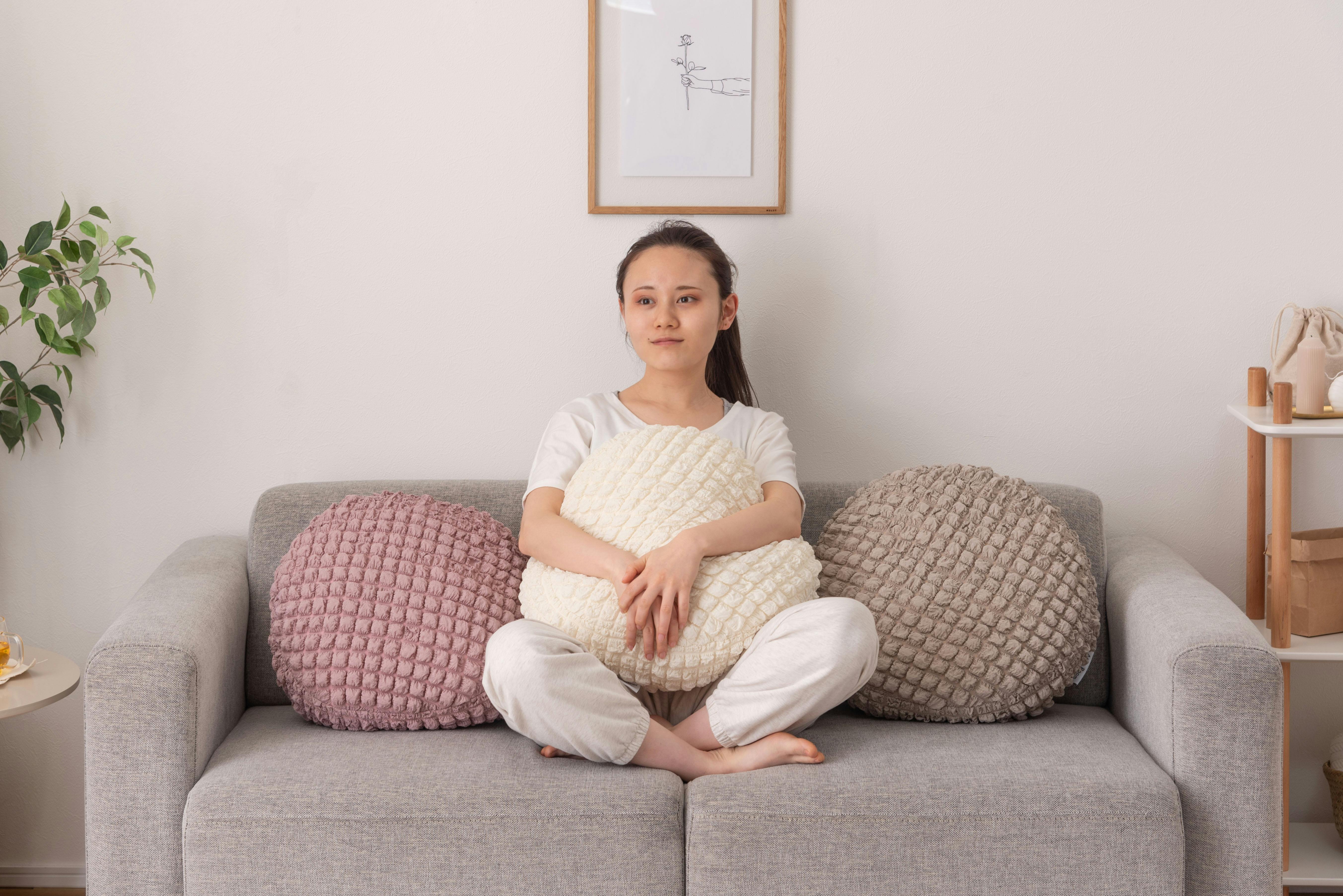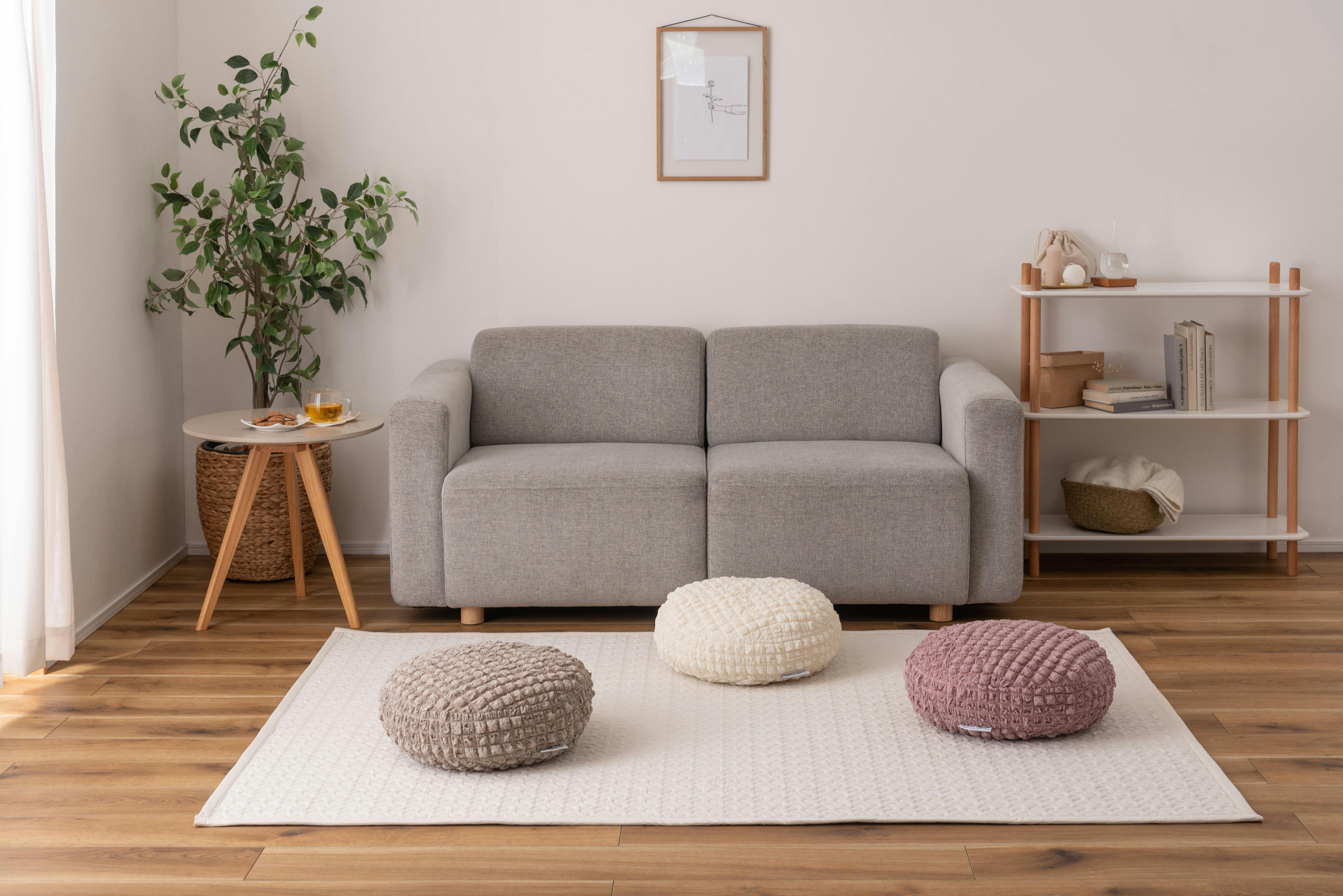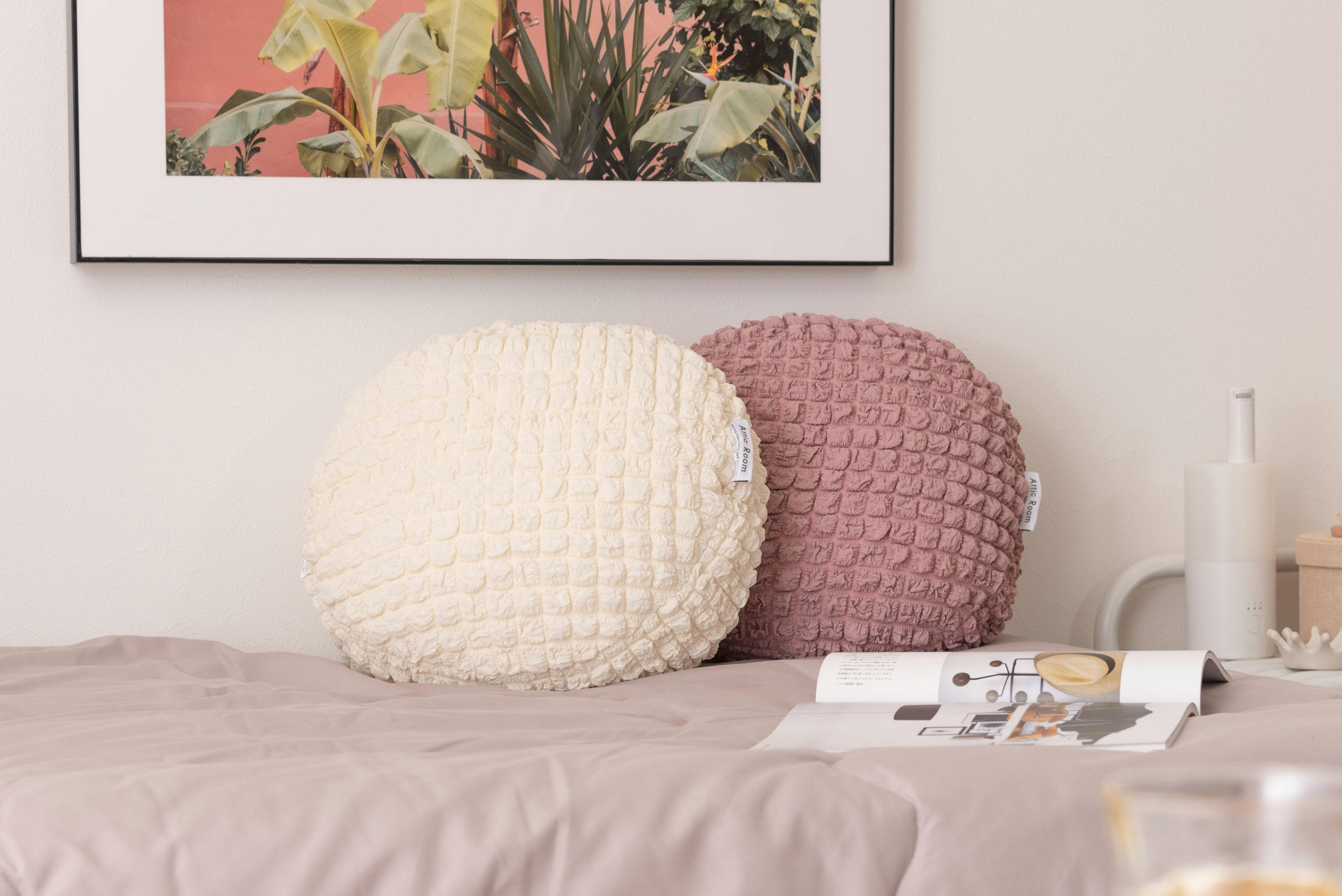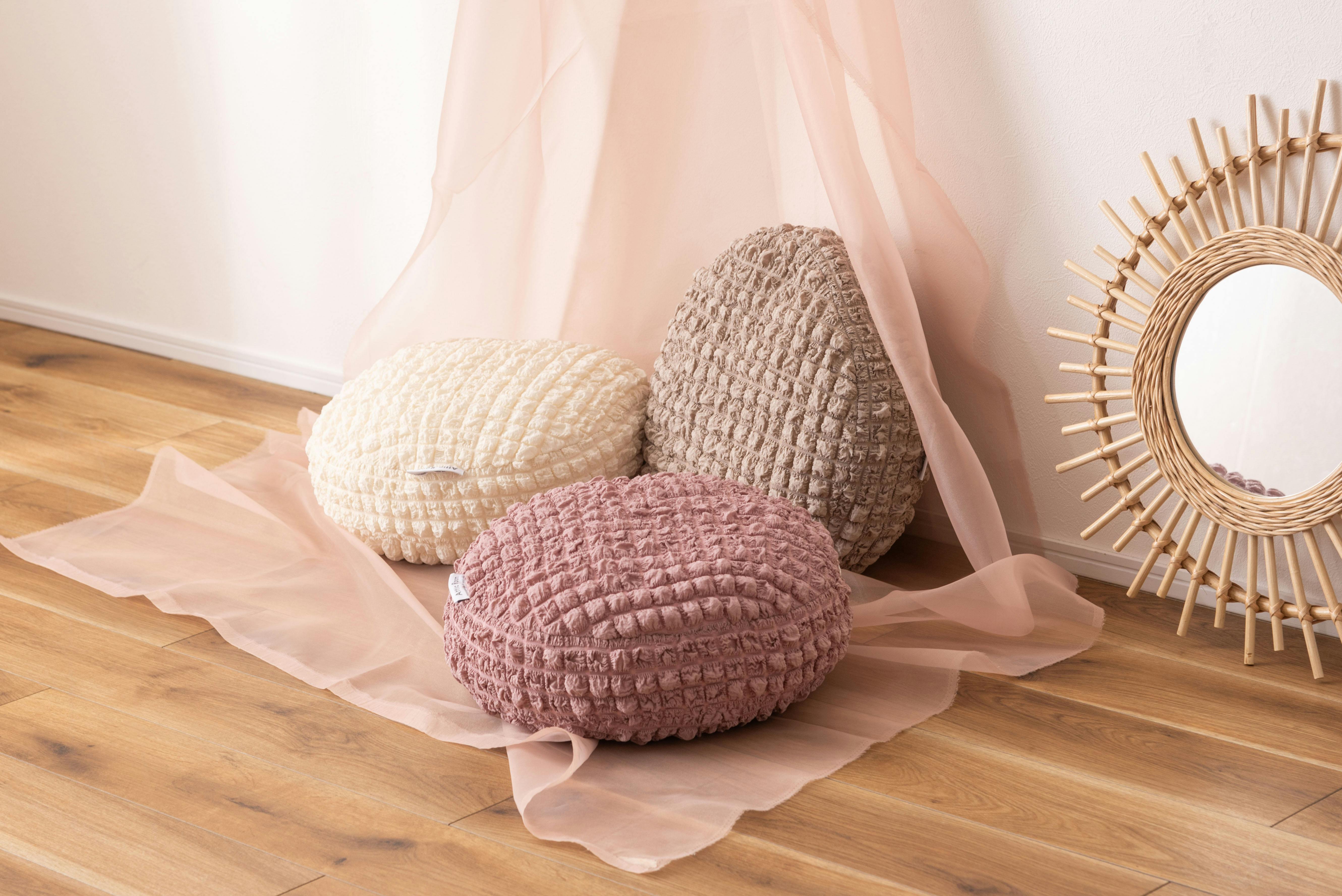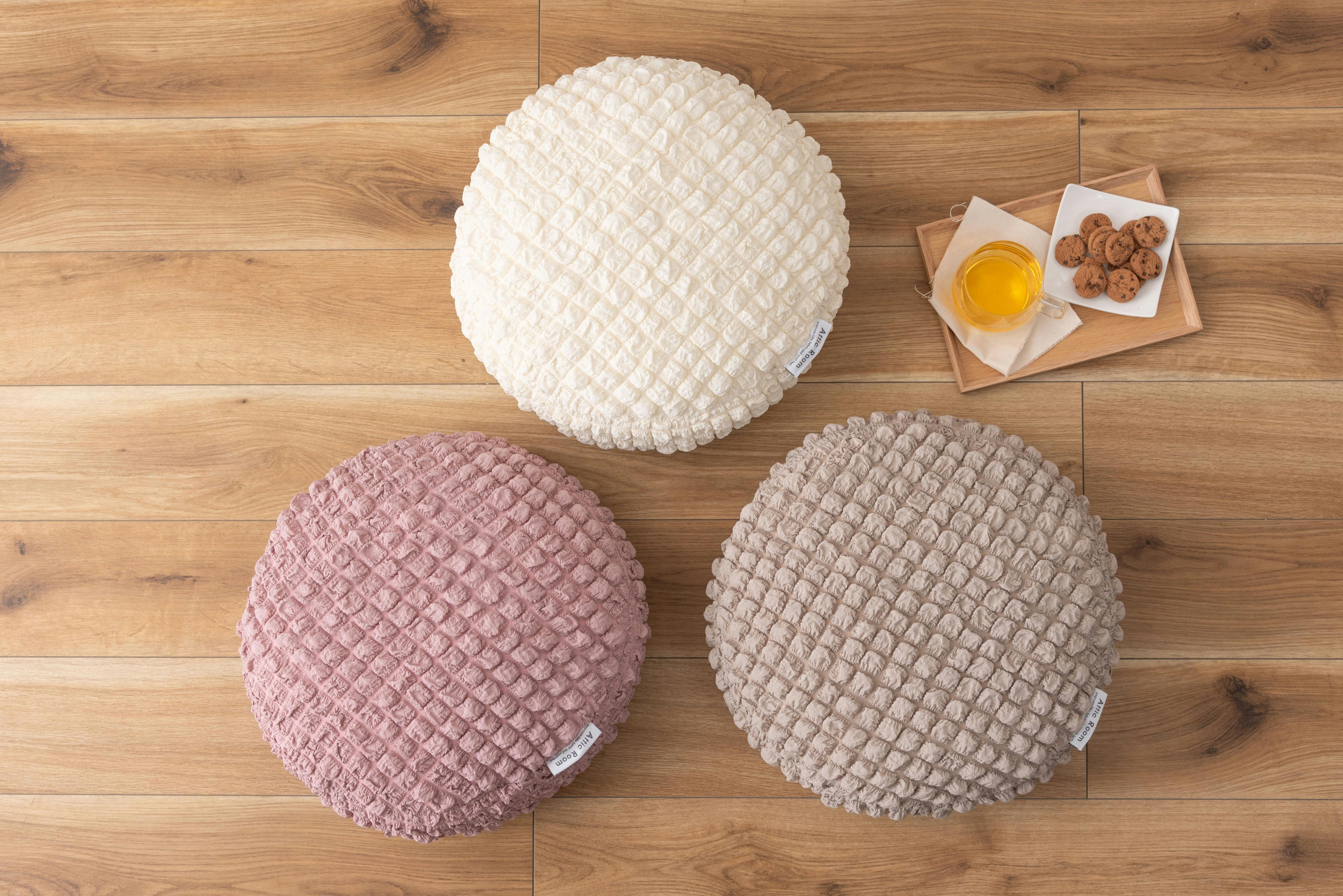接触冷感 ポップコーン生地 かわいい 韓国インテリア 北欧 もちもち 夏 ひんやり ニュアンスカラー くすみカラー ラウンド 丸型 丸 円形 ポコポコワッフル生地
