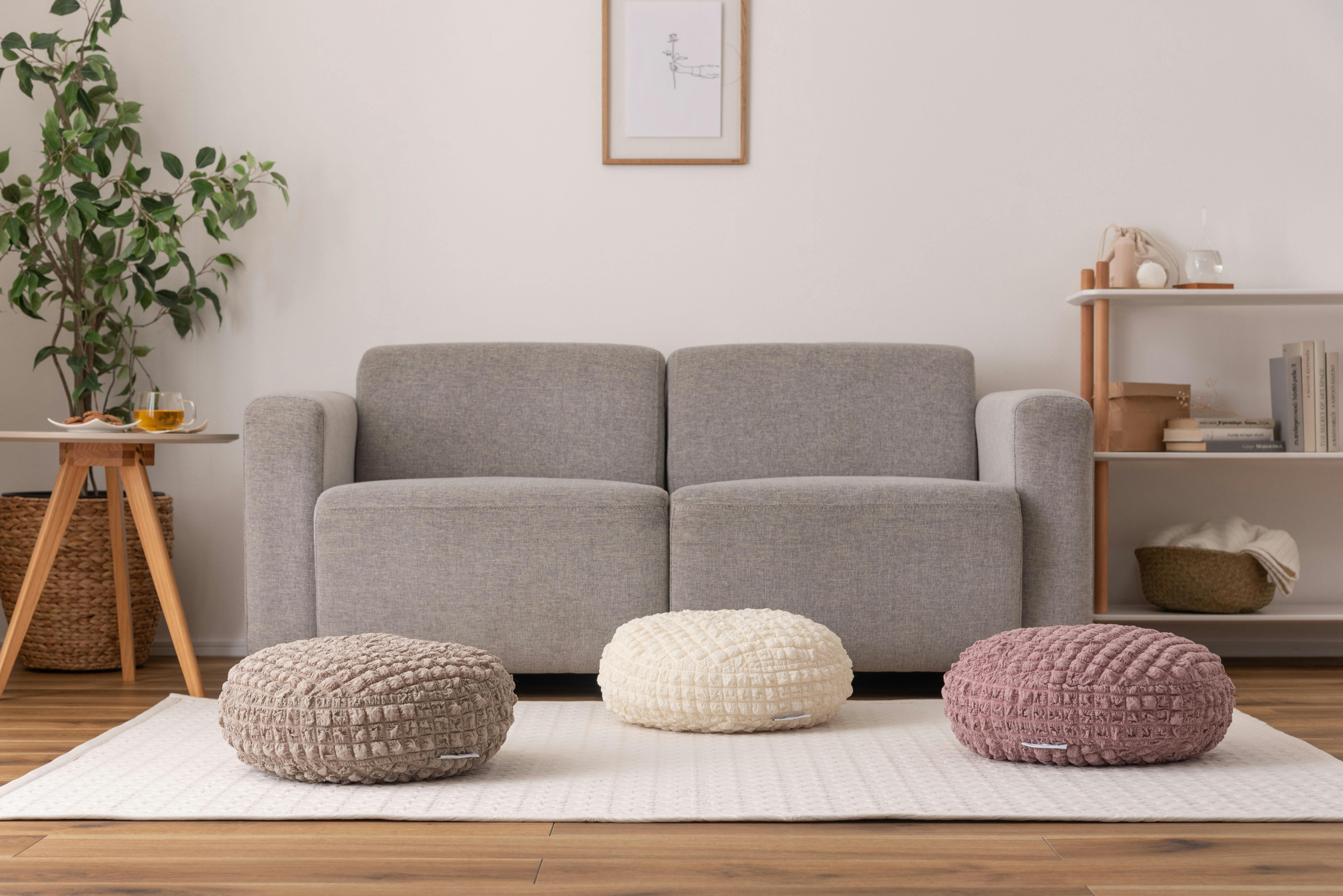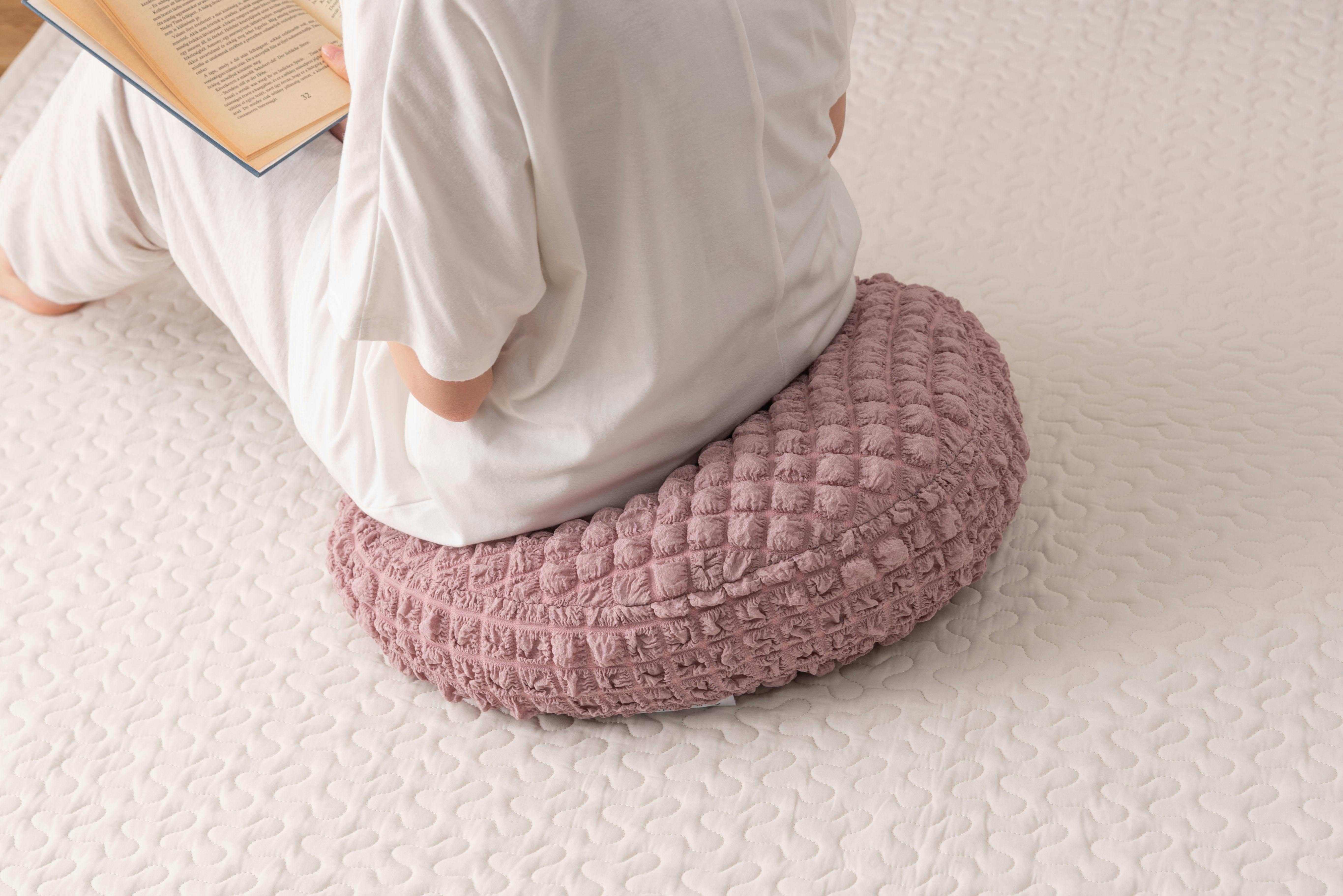 Room Essence 冷感ラウンドクッション 約W38×D38×H7 ピンク 完成品 接触冷感 ポップコーン生地 かわいい 韓国インテリア 北欧 もちもち 夏 ひんやり ニュアンスカラー くすみカラー ラウンド 丸型 丸 円形 ポコポコワッフル生地 GLK-202PK【別送品】