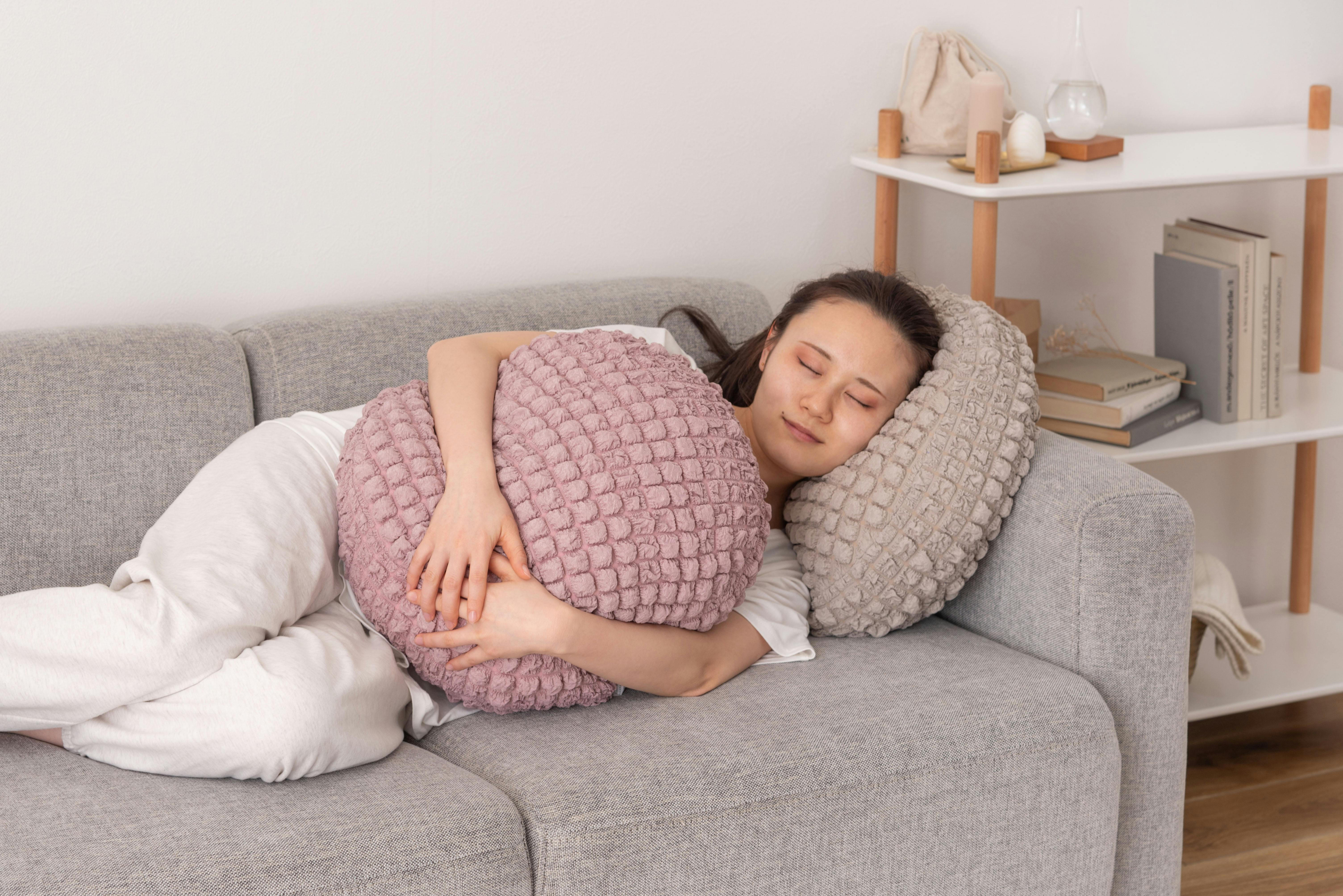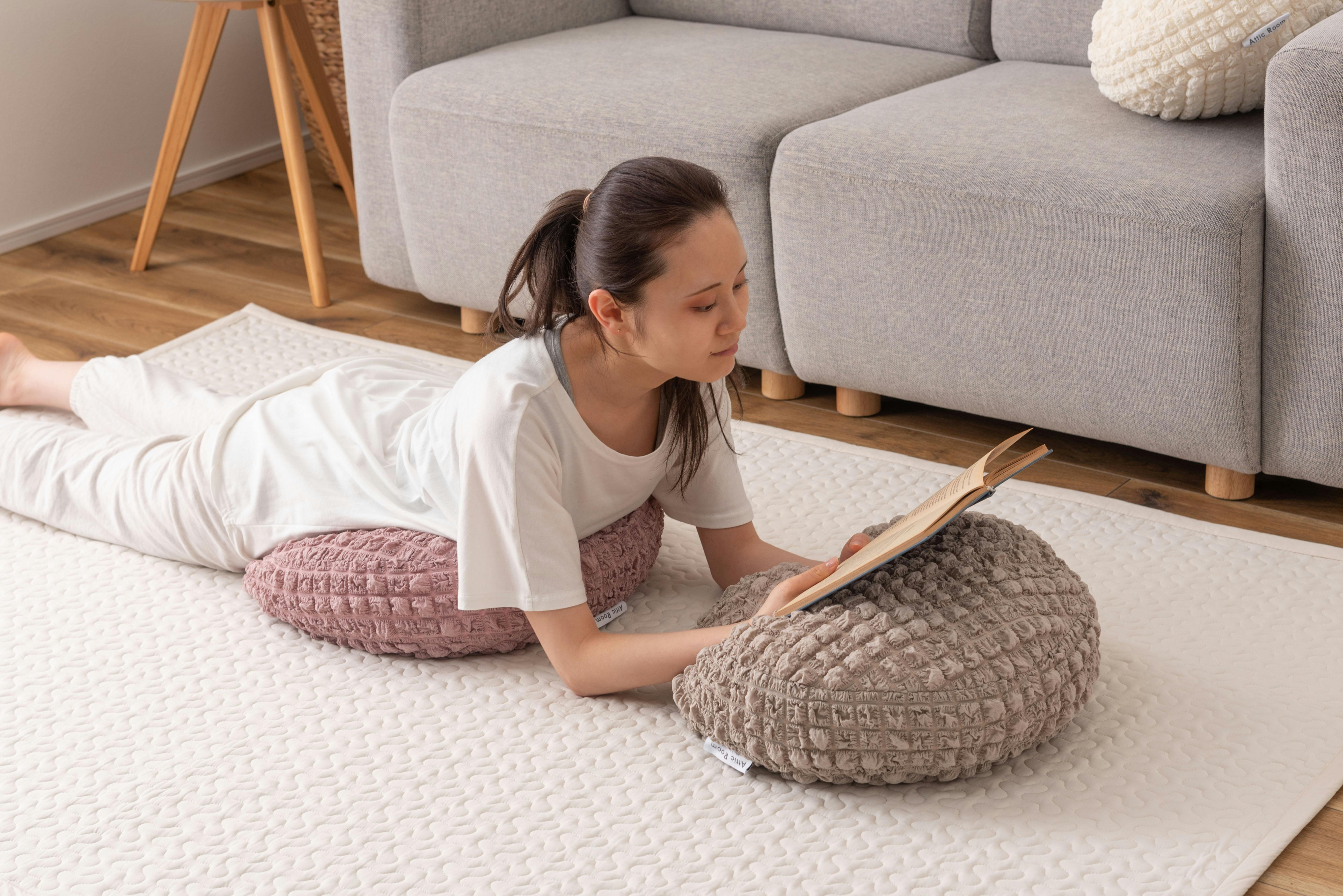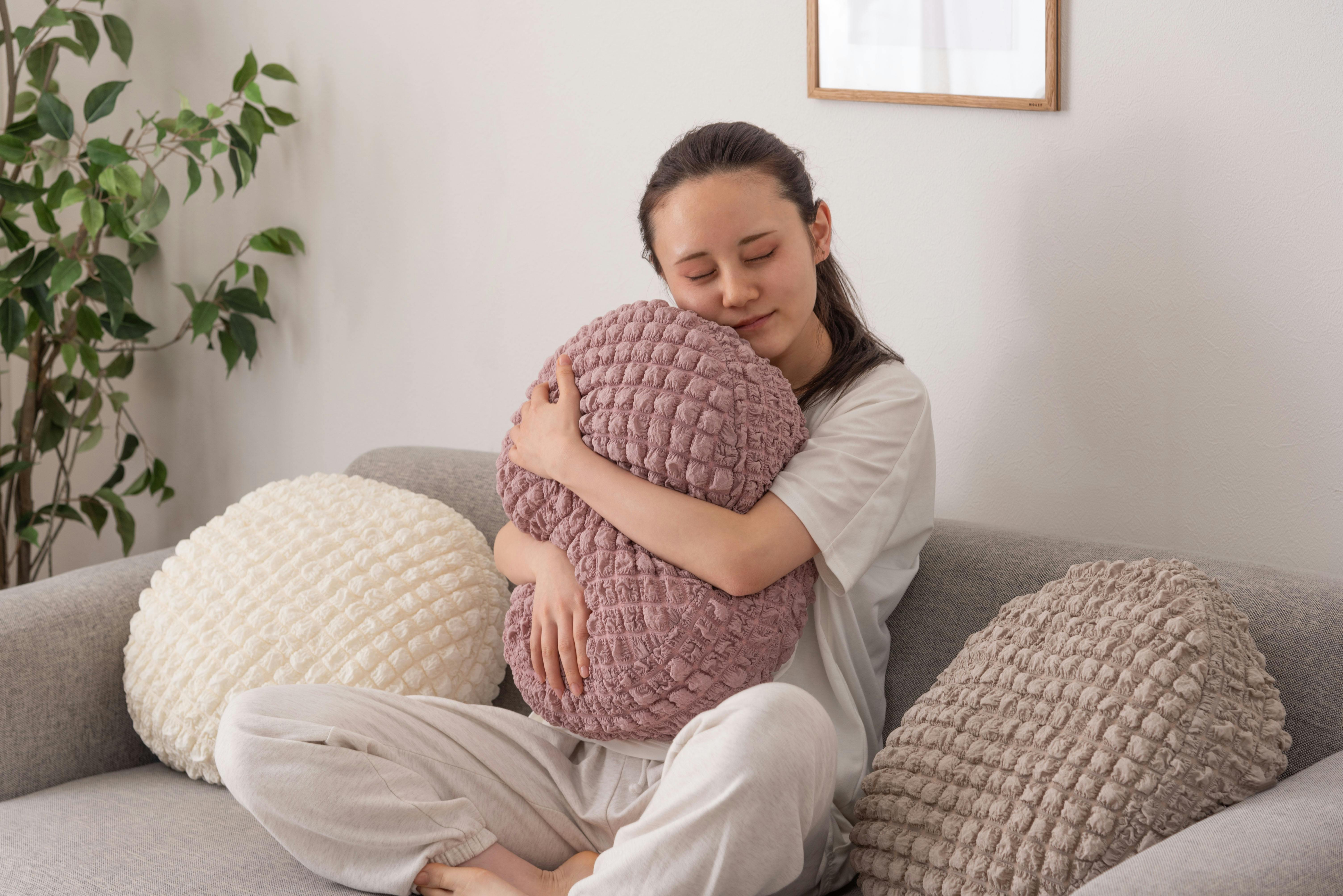 ●接触冷感の生地なので、触れるとひんやり気持ちいい夏の可愛くて心強い相棒●クッションはもちもちの弾力ある触感クセになる触り心地●弾力のあるクッションなので、枕として使うにも最適●背あてにしたり、膝の上に置いてサポートクッションとしても活躍●人気のくすみカラーを採用し、インテリアの中で浮いてしまわないデザインに