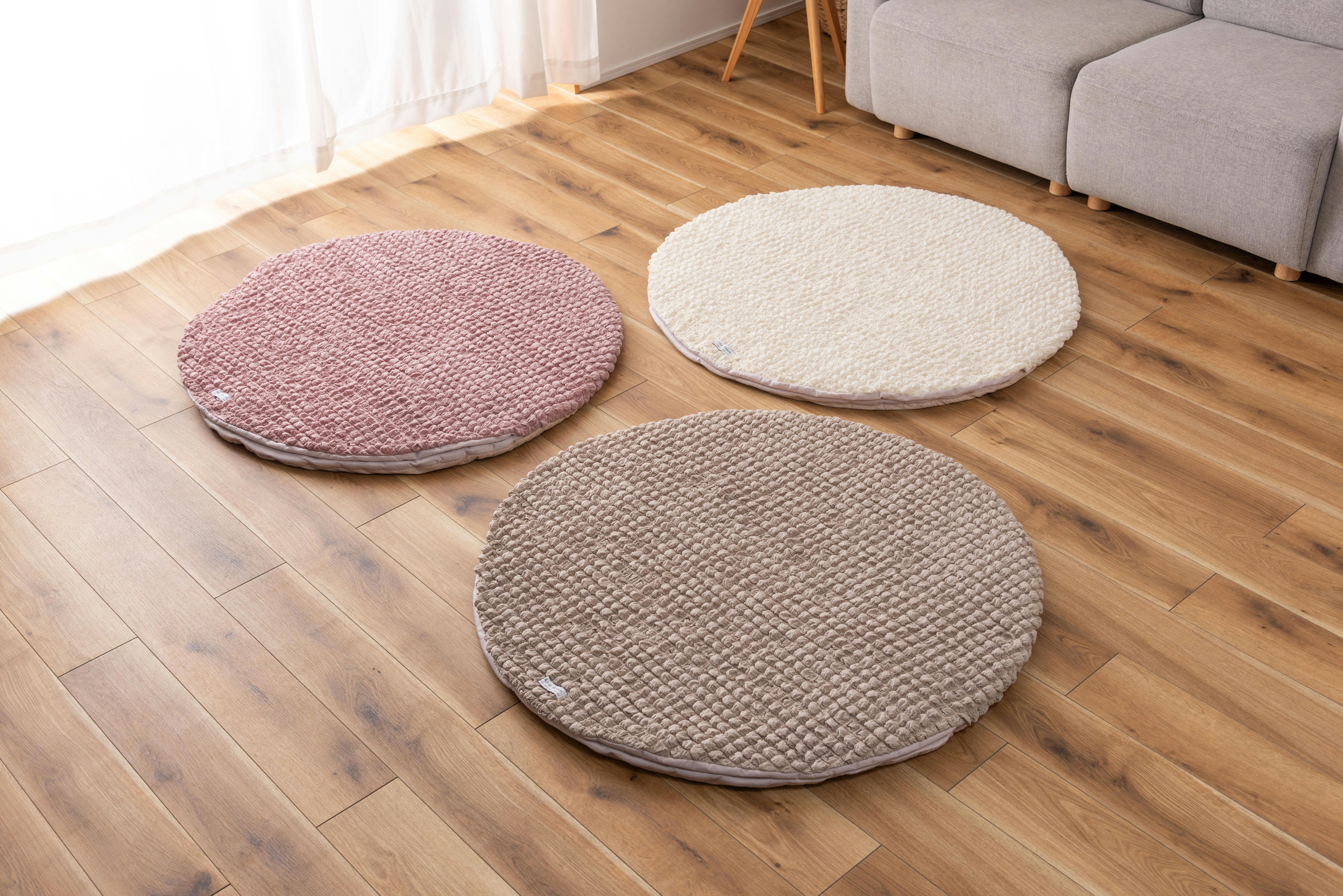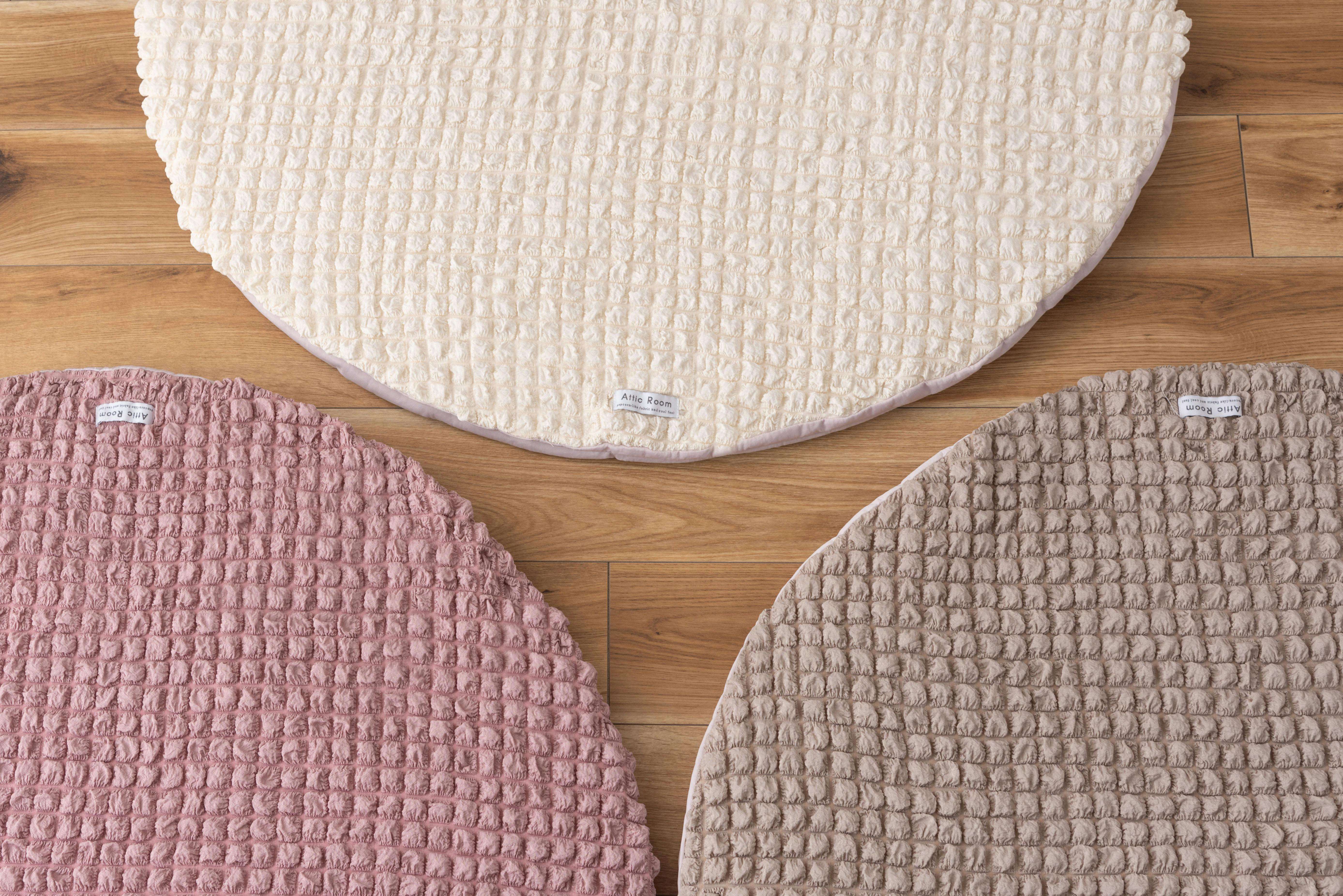 接触冷感 ポップコーン生地 かわいい 韓国インテリア 北欧 もちもち 夏 ひんやり ニュアンスカラー くすみカラー ラウンド 丸型 丸 円形 ポコポコワッフル生地