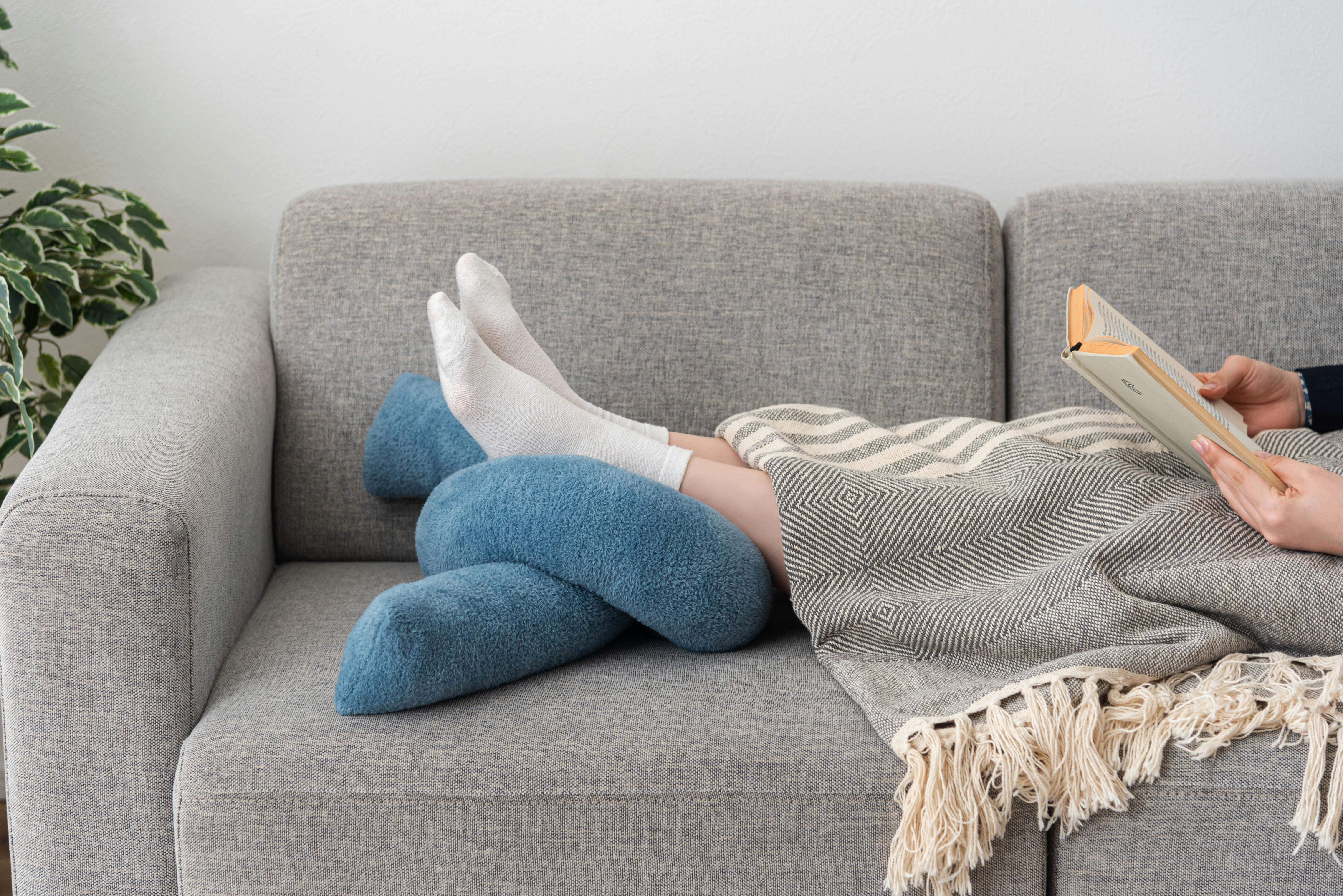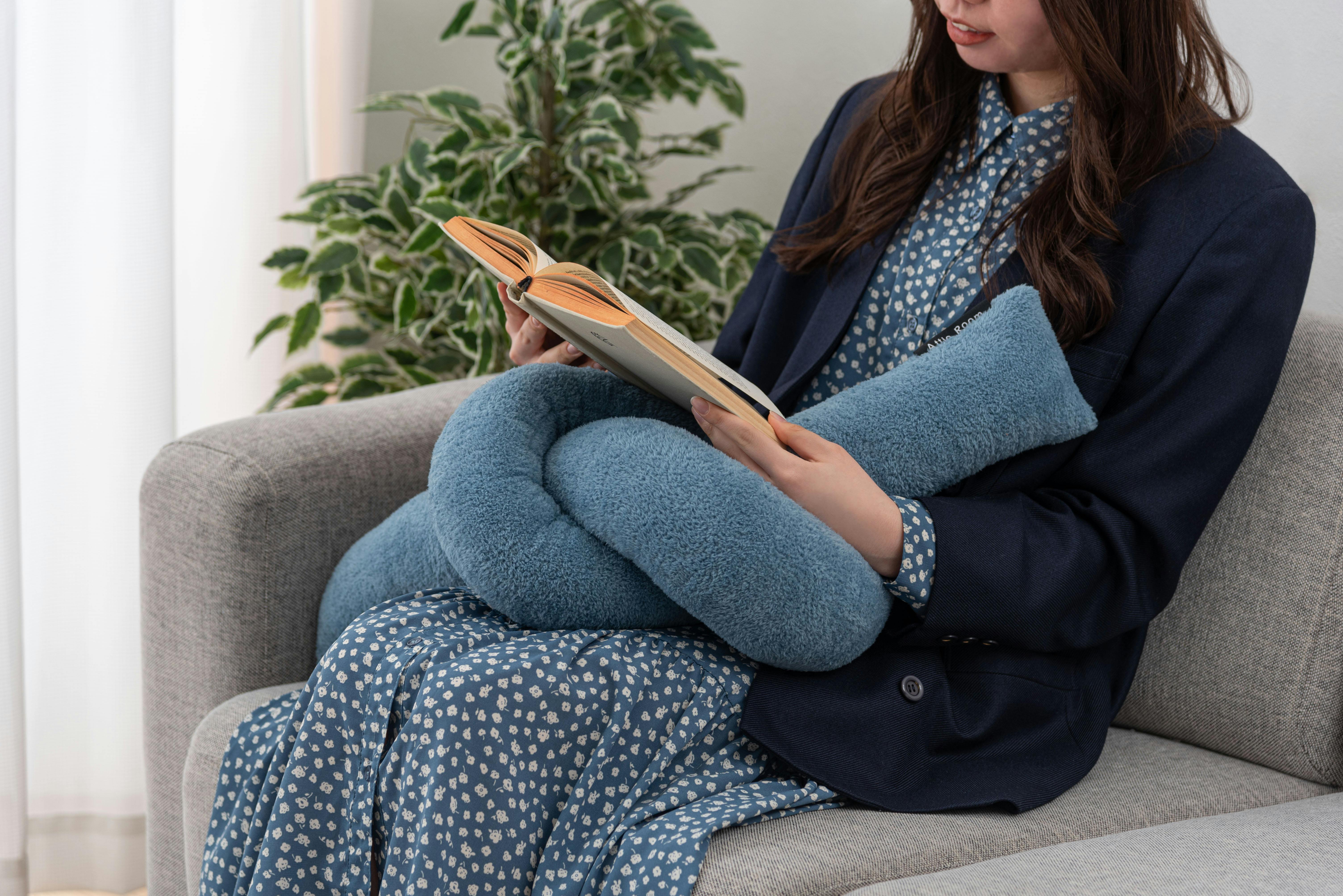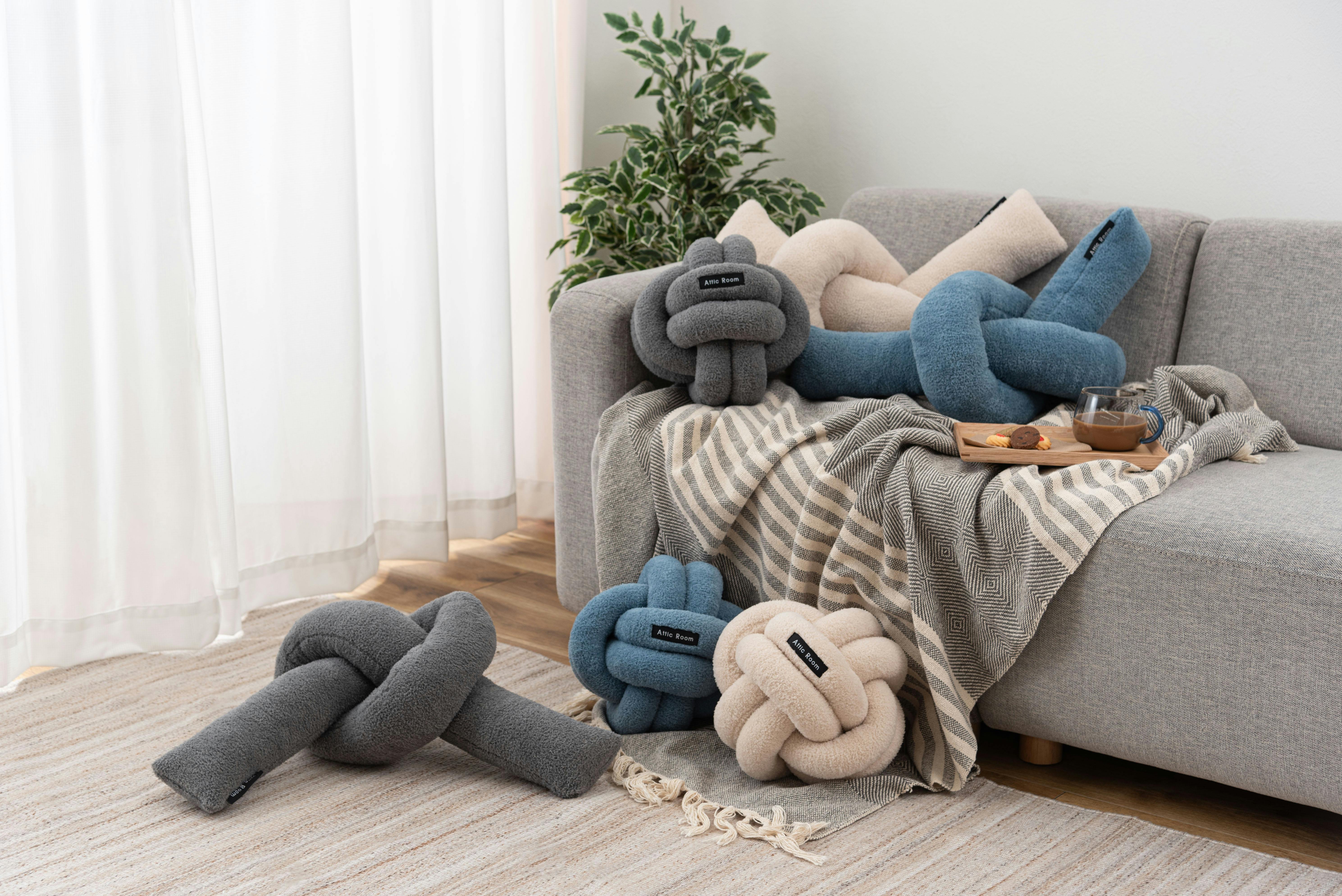 Room Essence もちもちロープクッション 約W60×D29.5×H21 ブルー 完成品 韓国 おしゃれ かわいい フロアクッション 結び目 ロープ インテリア 雑貨 北欧 柔らかい ベージュ GLK-211BL【別送品】