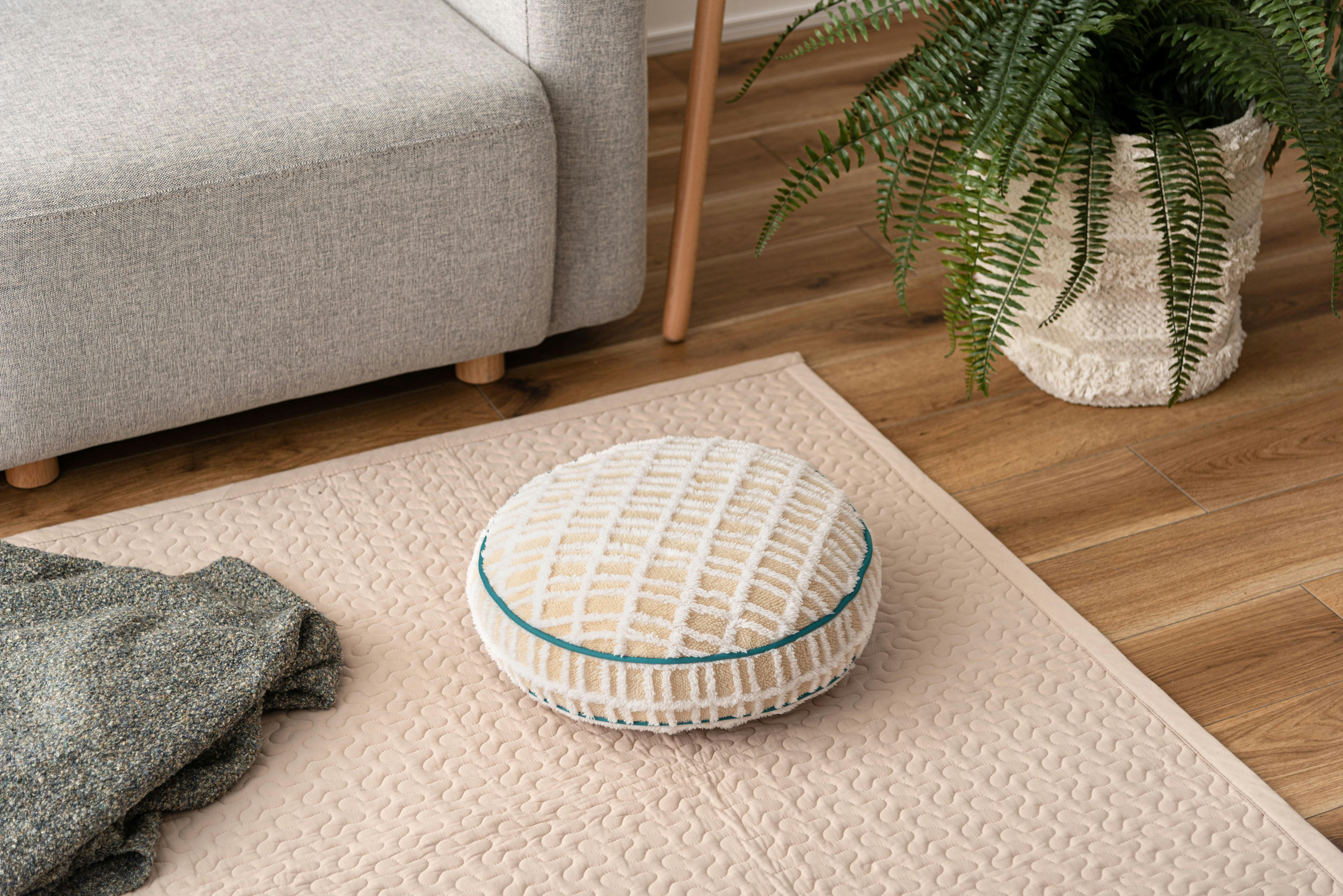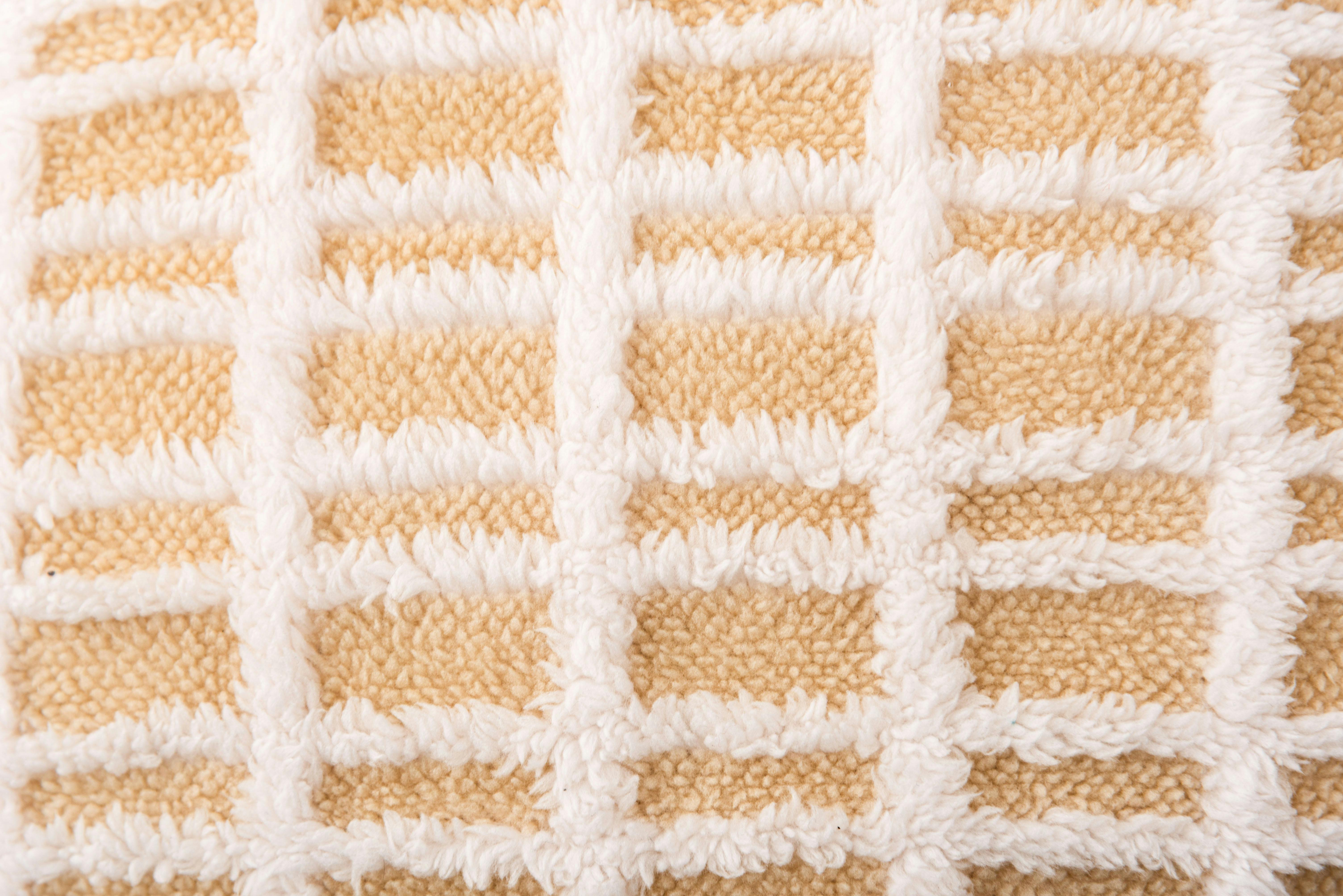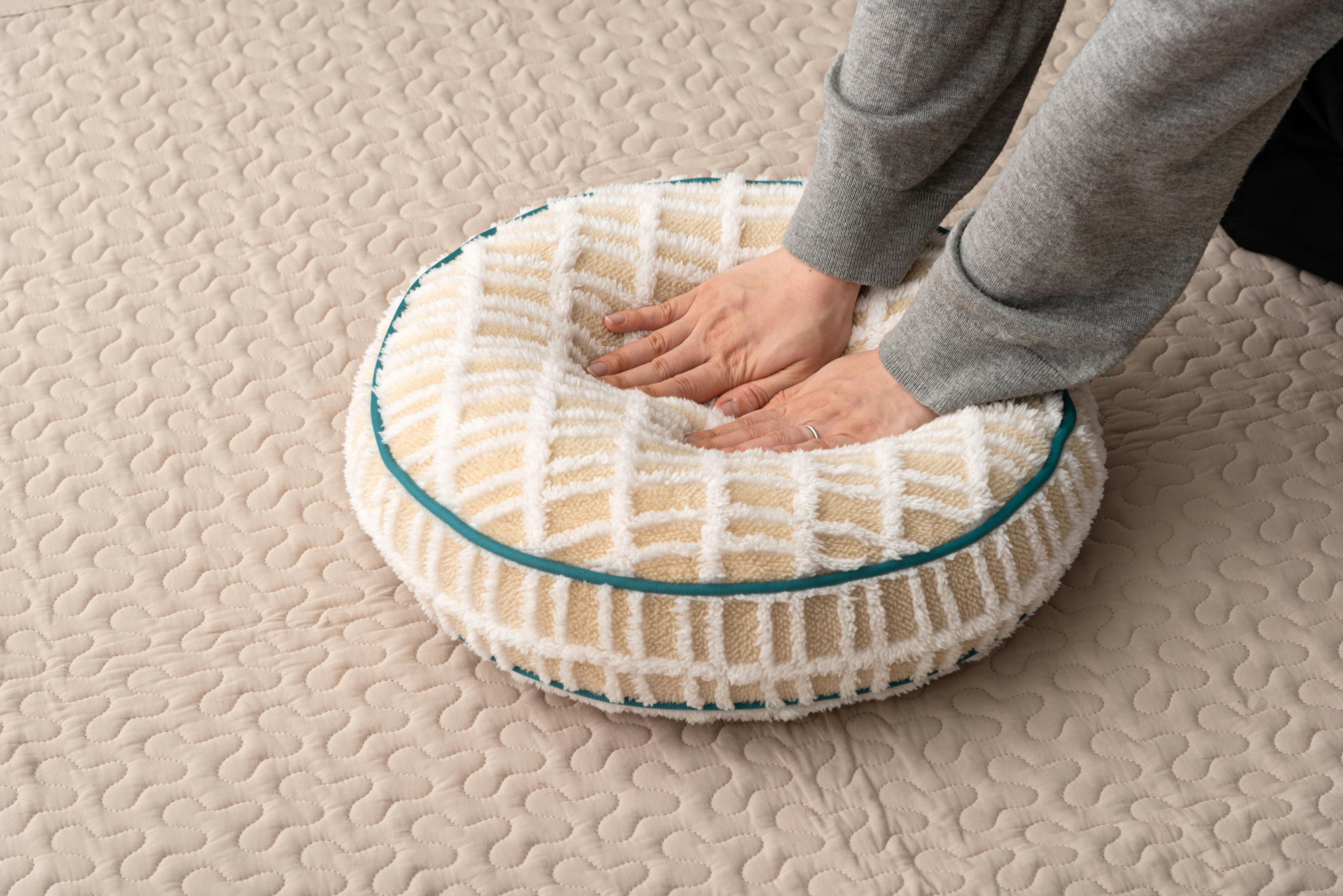 Room Essence ラウンドボアチェックークッション 約W34×D34×H16 アイボリー 完成品 クッション チェック柄 もこもこ ふんわり 可愛い 北欧風 くすみカラー シンプル ナチュラル もちもち ボア GLK-214IV【別送品】