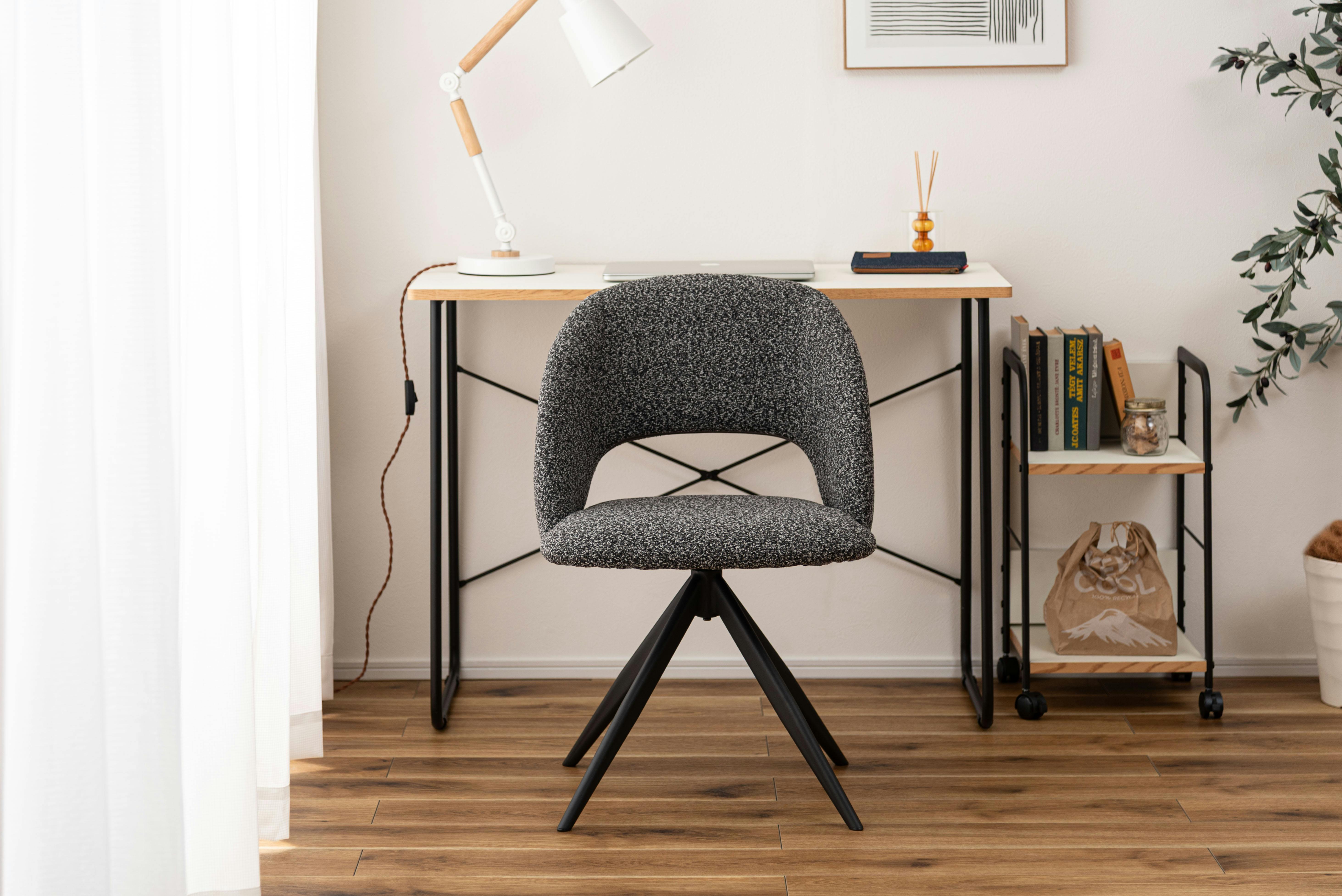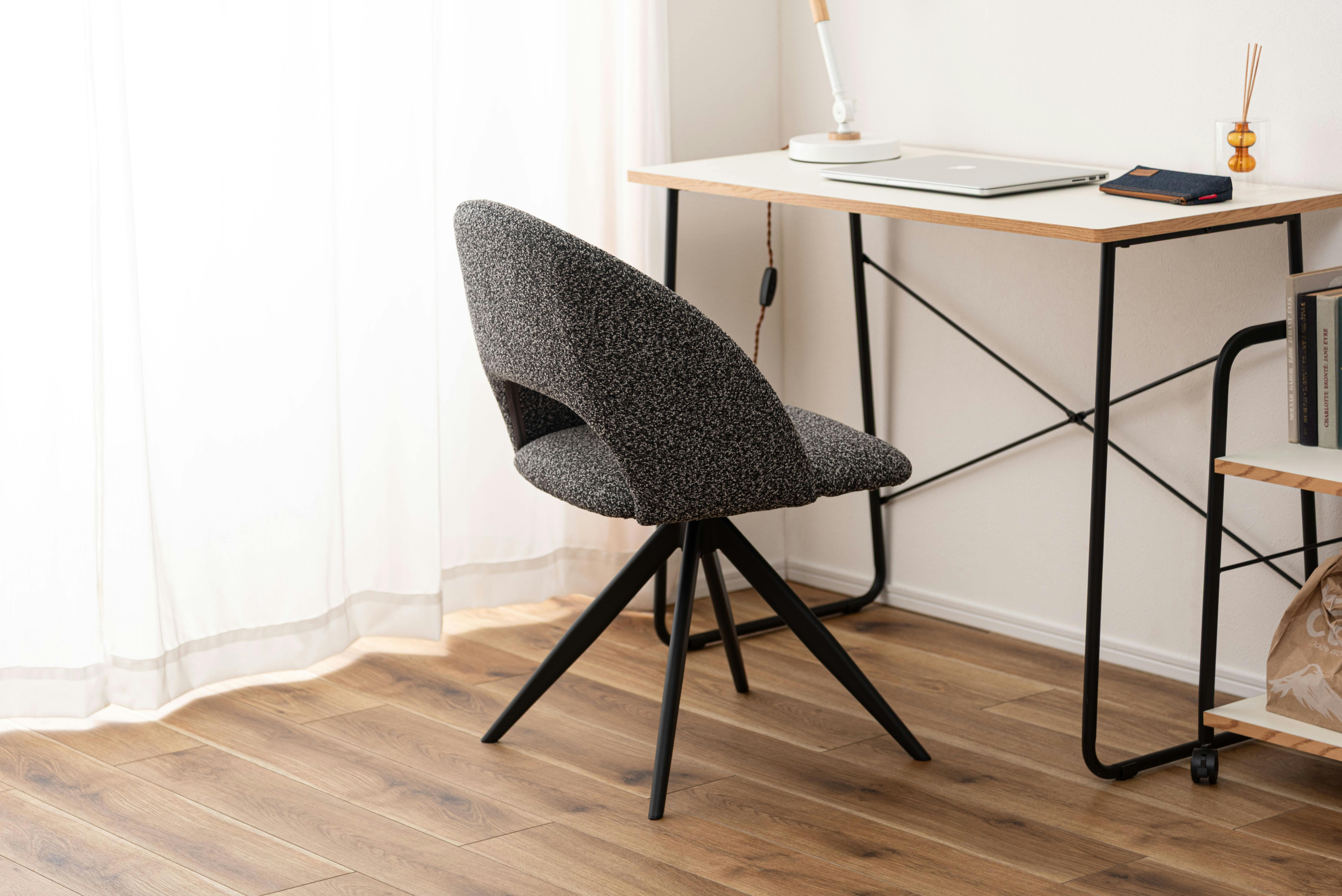 チェア 椅子 回転椅子 ブラックスチール 回転 パーソナルチェア 回転式 混色生地 クッション性 シンプル モダン ワークチェア 在宅勤務 テレワーク リモートワーク