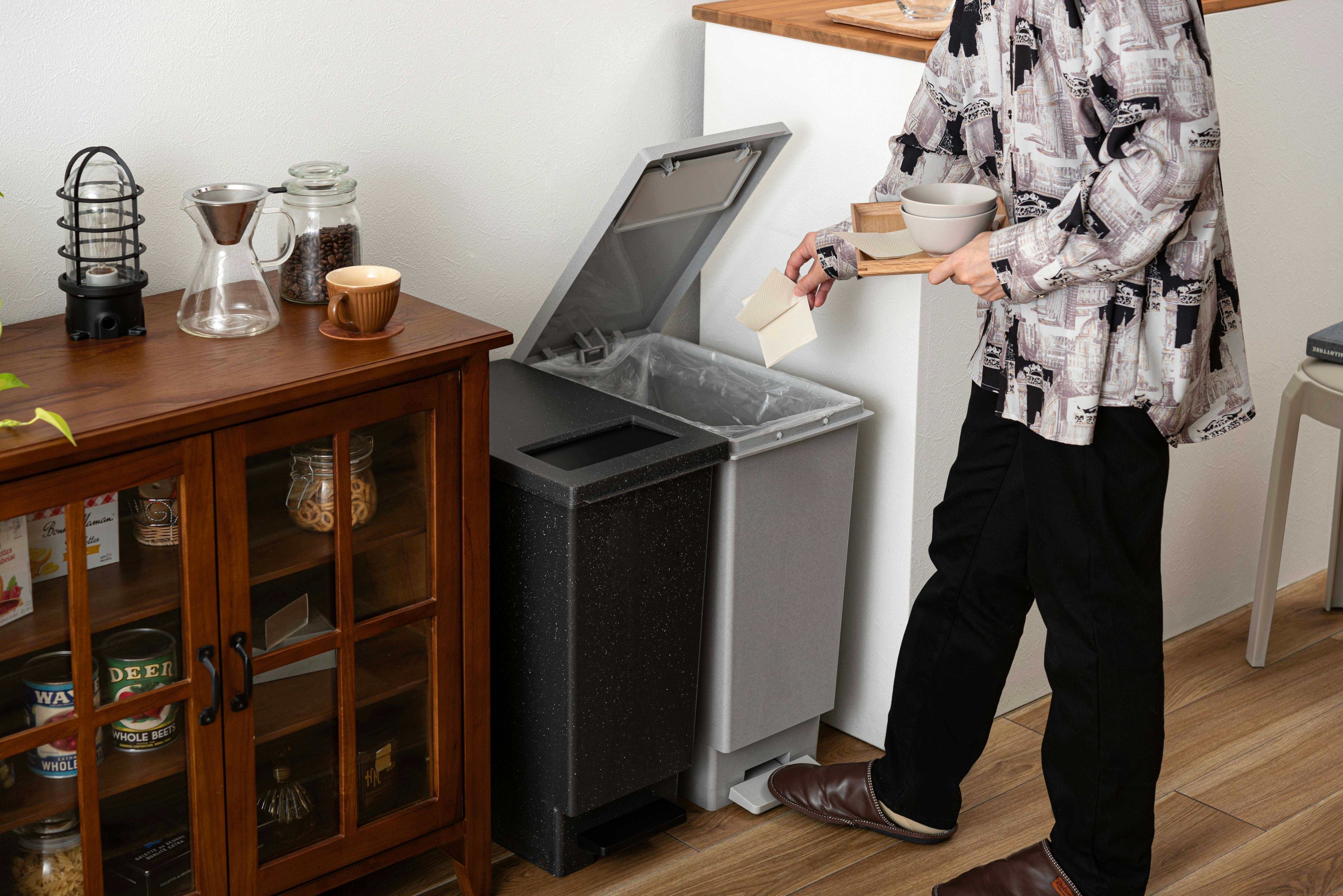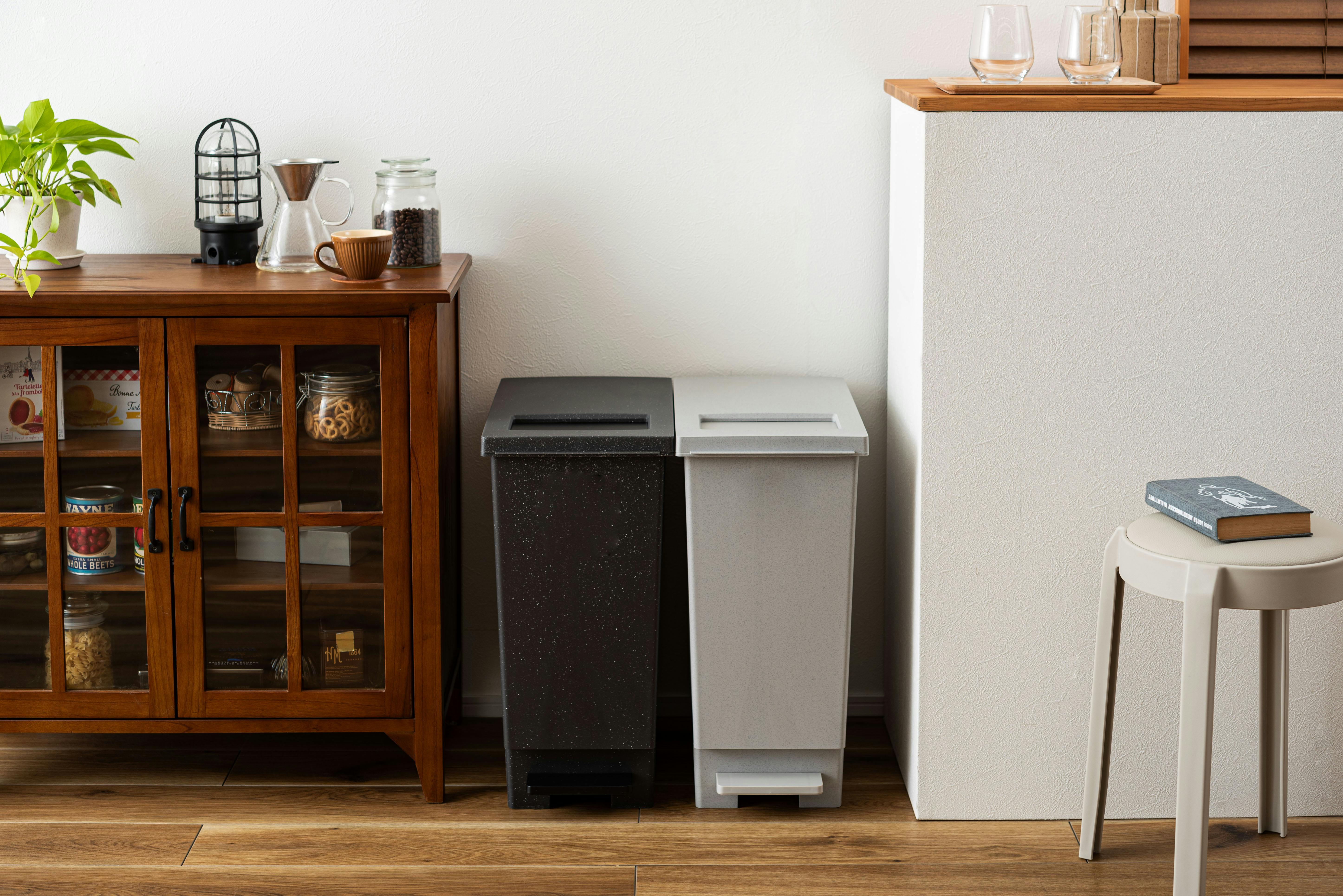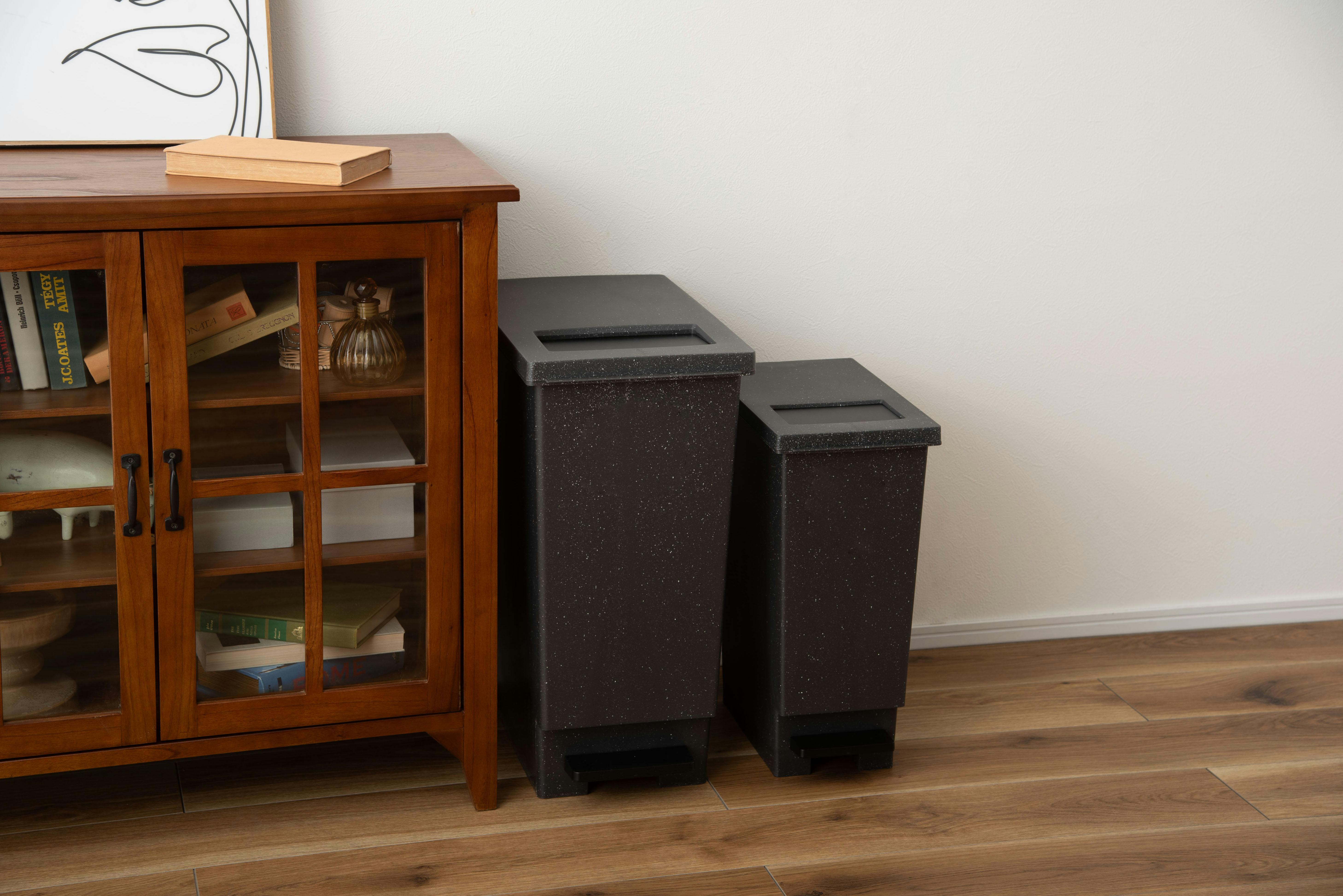• Room Essence トラッシュカン 45L W26.5×D45.5×H55.5 ブラック 完成品 ゴミ箱 45リットル おしゃれ 分別 ごみ箱 プッシュ型 ペダル型 ダストボックス 蓋付き キッチン 45L フタ付き 縦型 シンプル 北欧 韓国 コンパクト LFS-861BK【別送品】