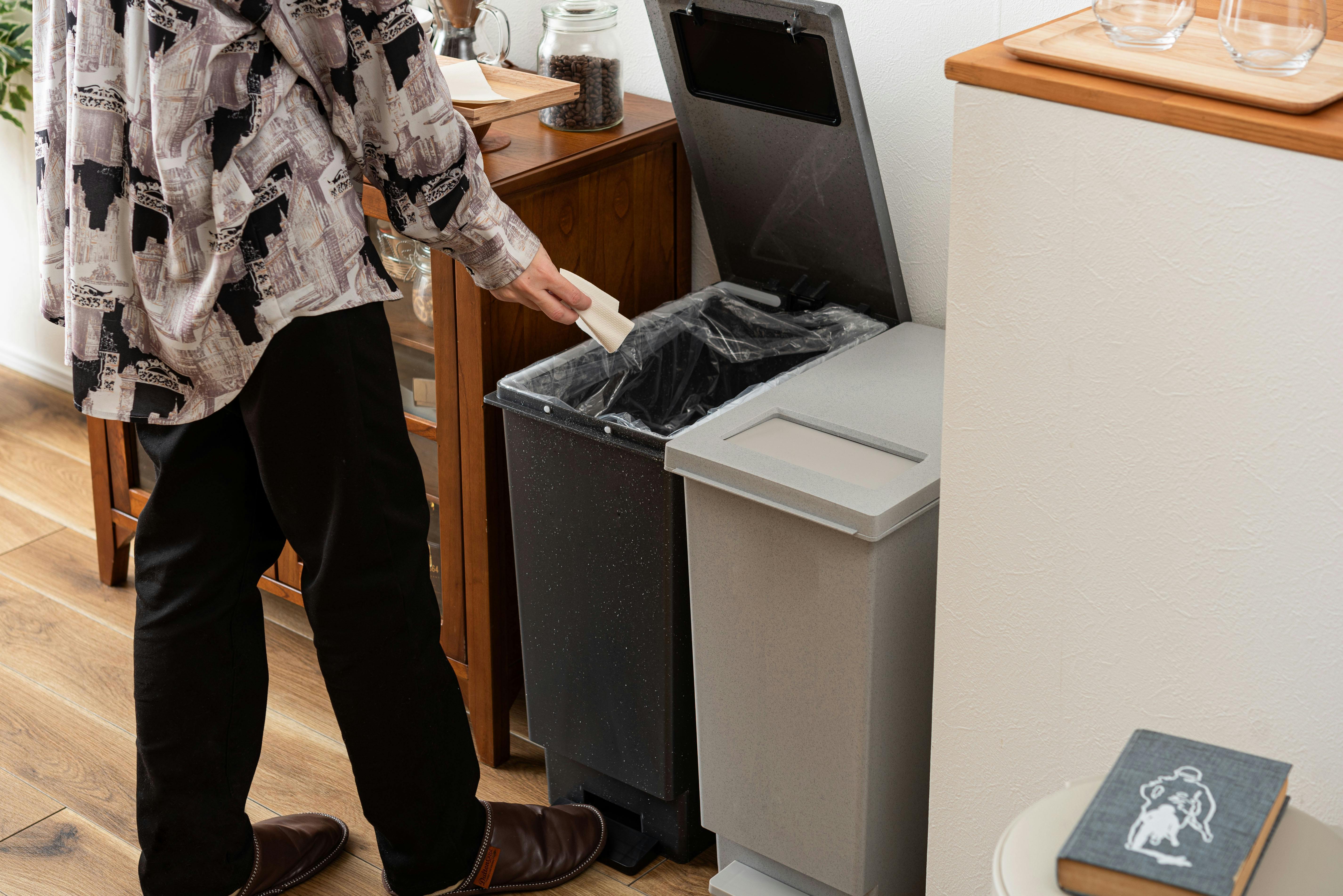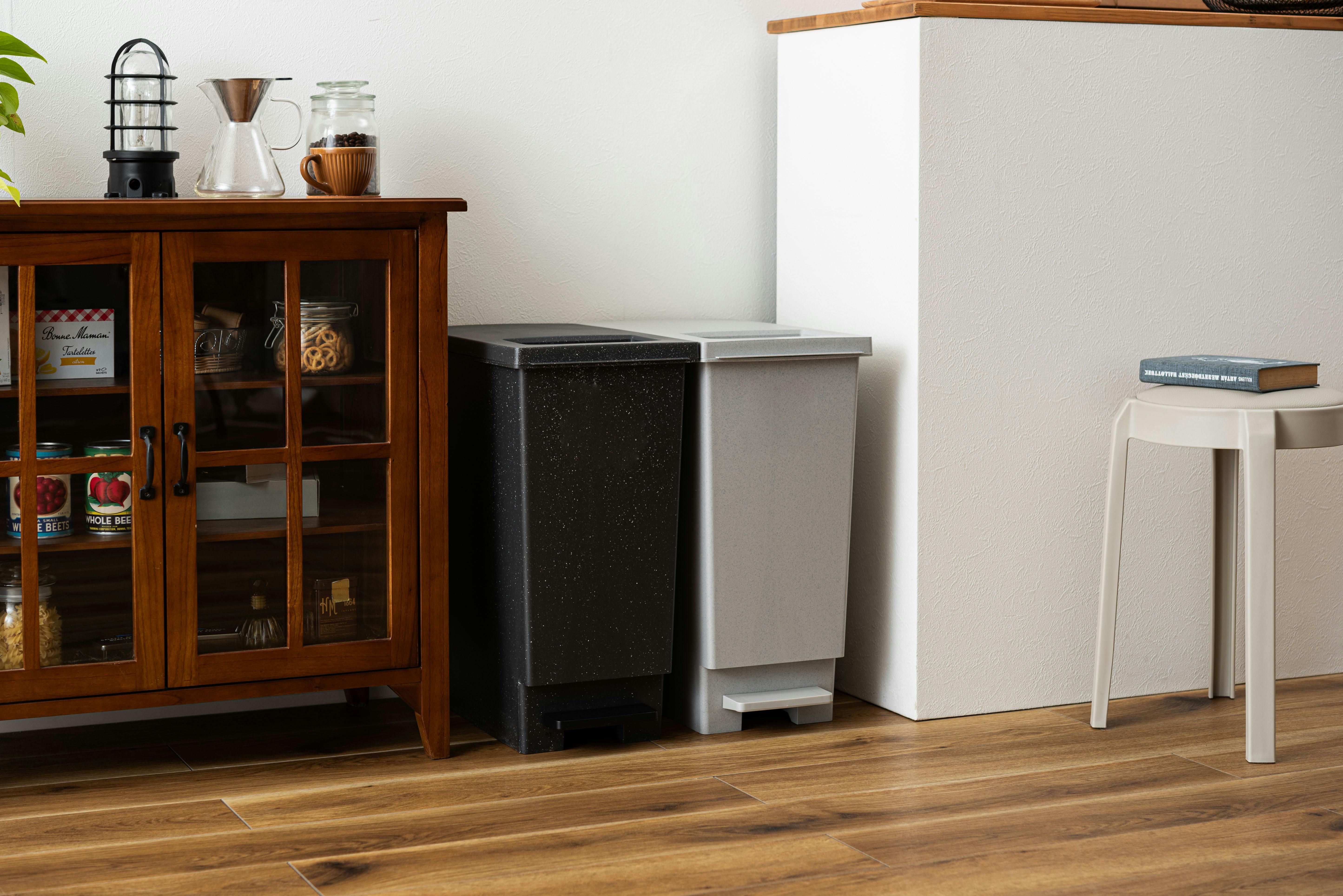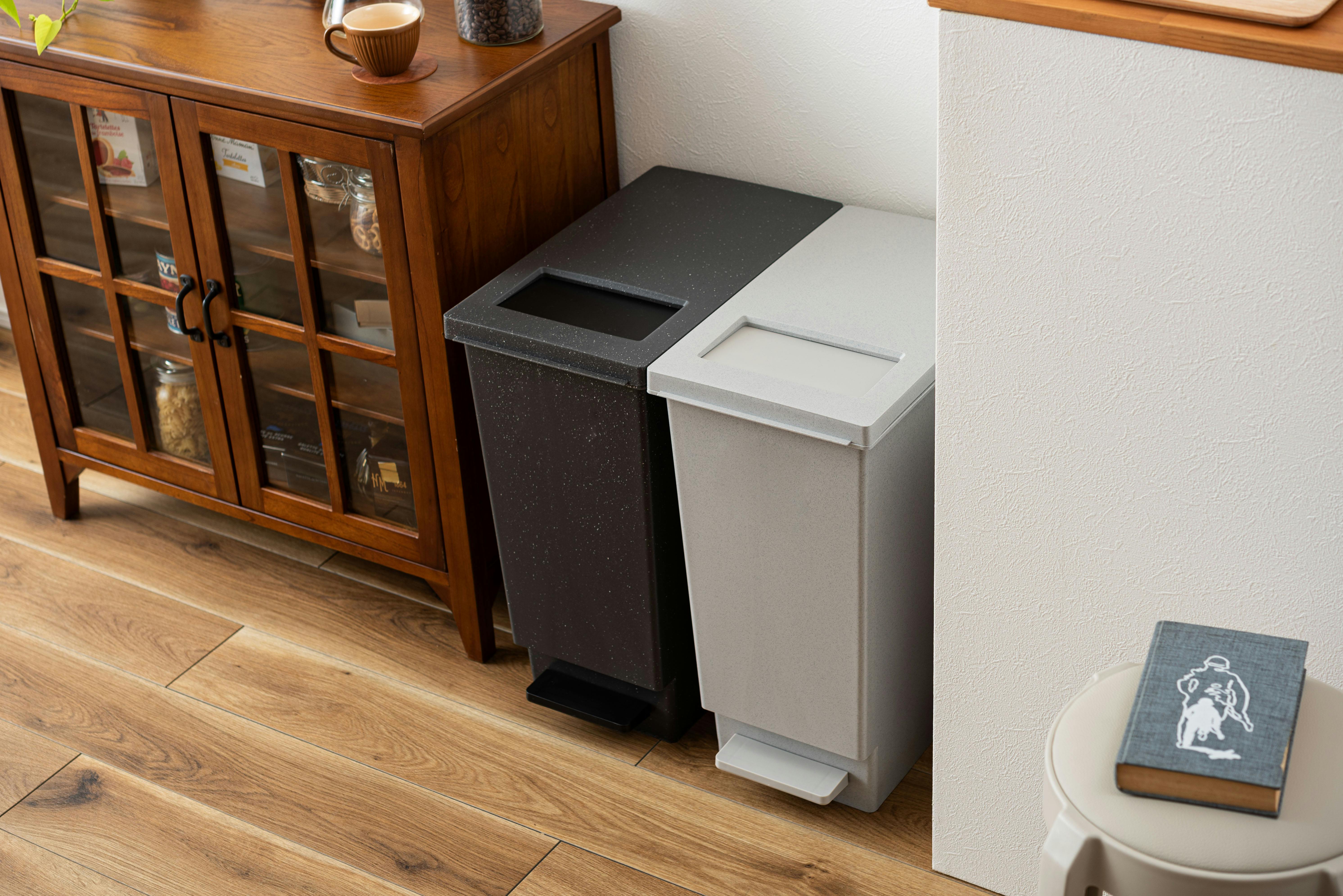 • Room Essence トラッシュカン 45L W26.5×D45.5×H55.5 ブラック 完成品 ゴミ箱 45リットル おしゃれ 分別 ごみ箱 プッシュ型 ペダル型 ダストボックス 蓋付き キッチン 45L フタ付き 縦型 シンプル 北欧 韓国 コンパクト LFS-861BK【別送品】