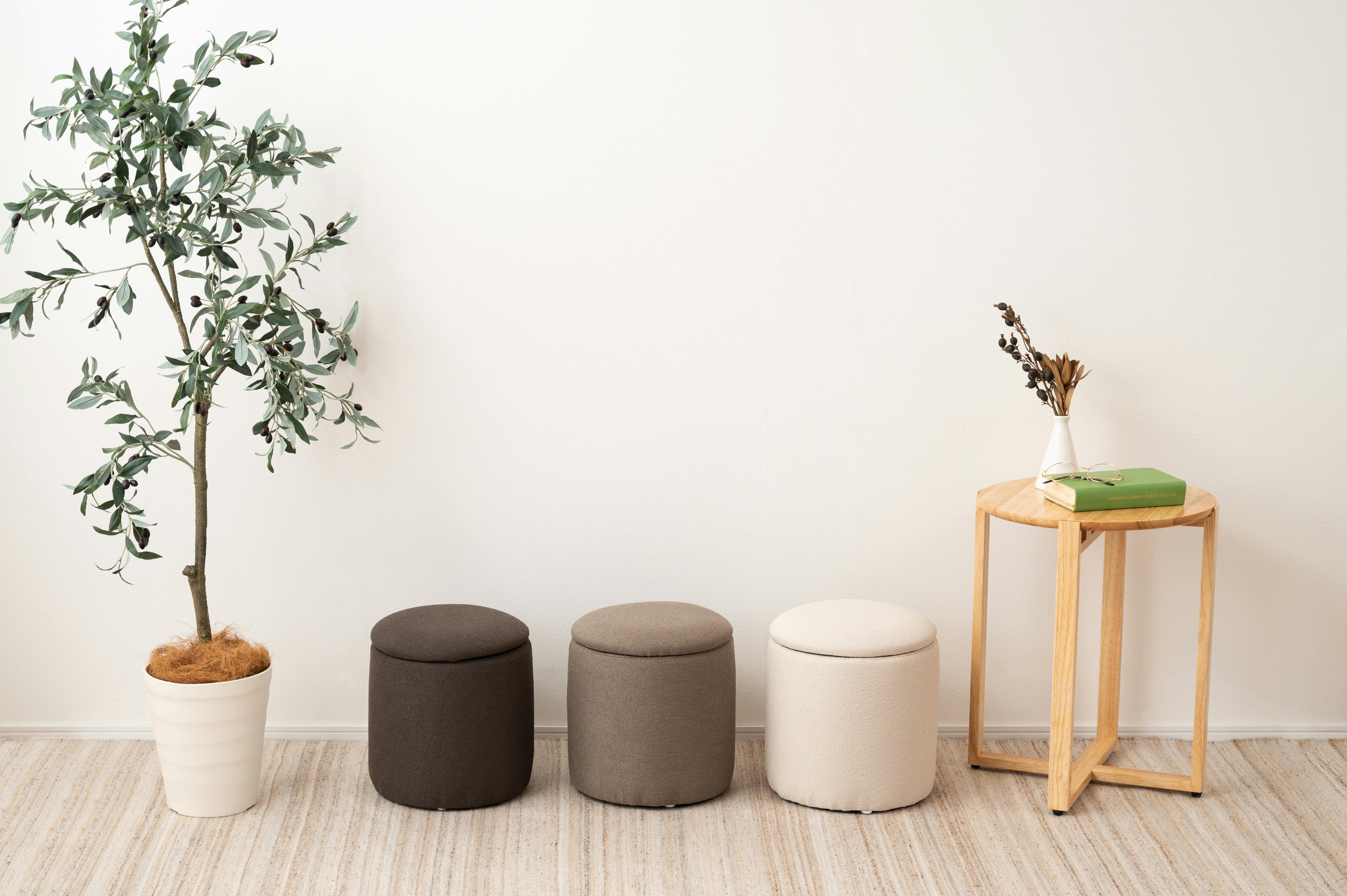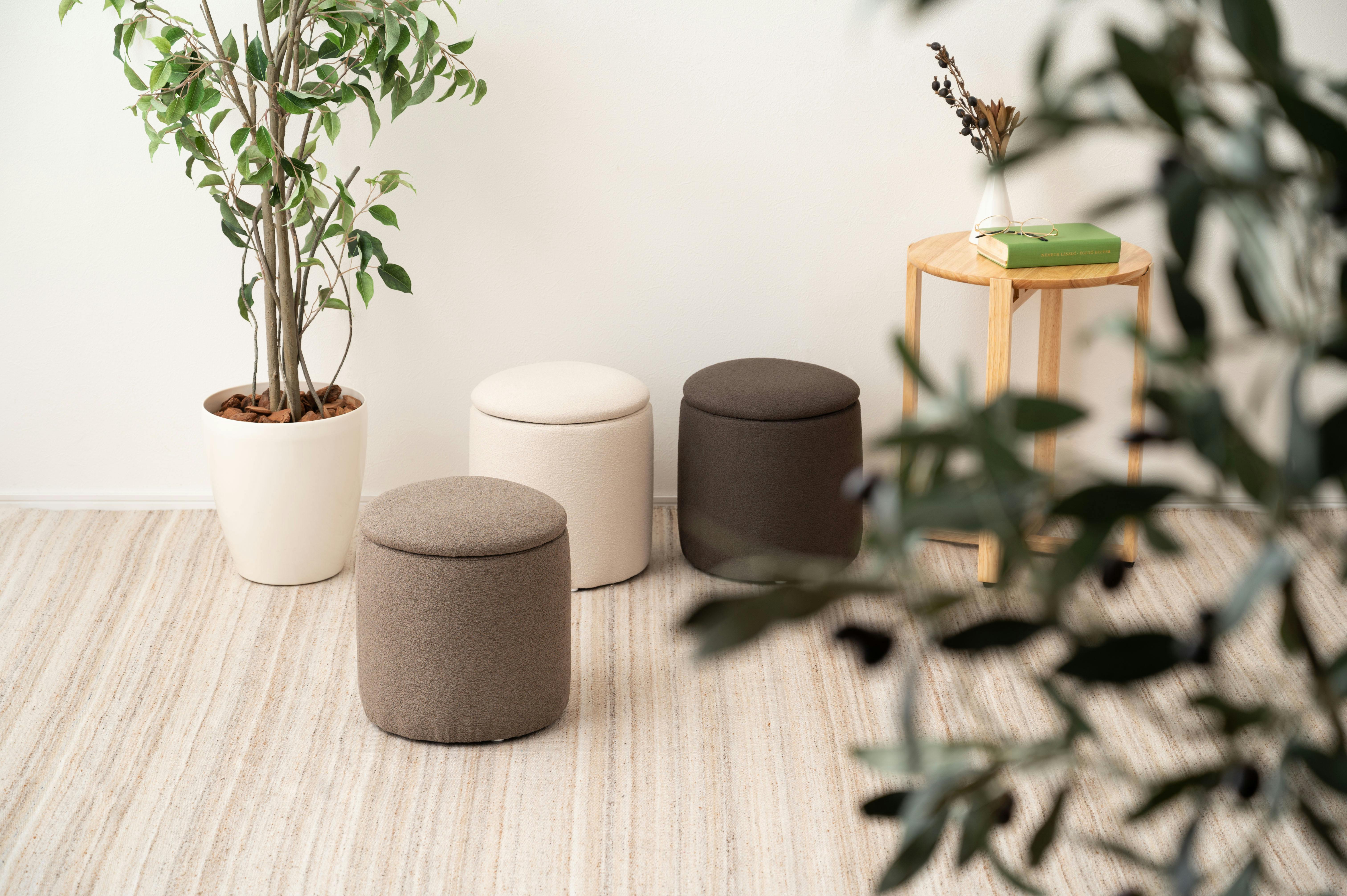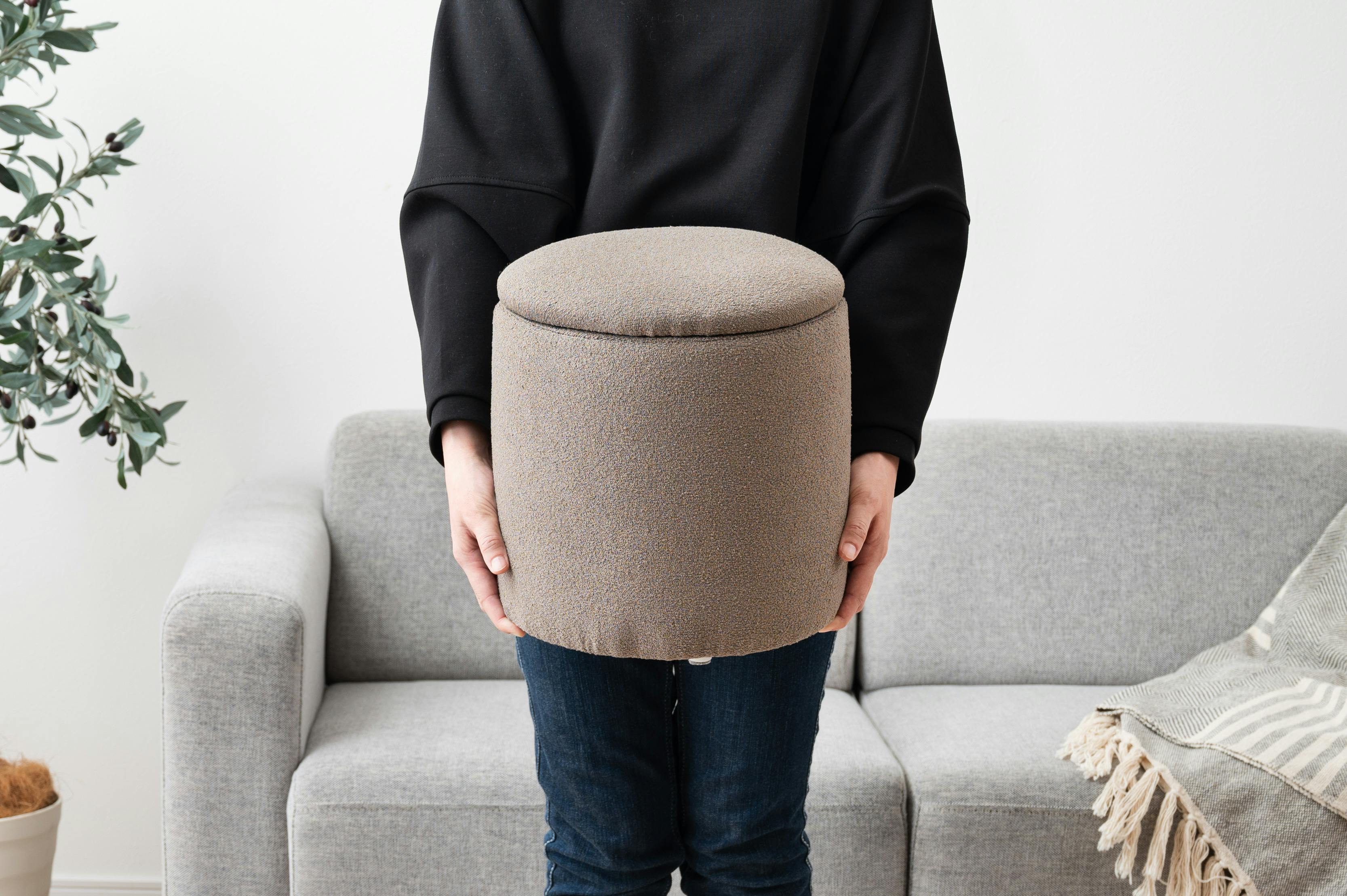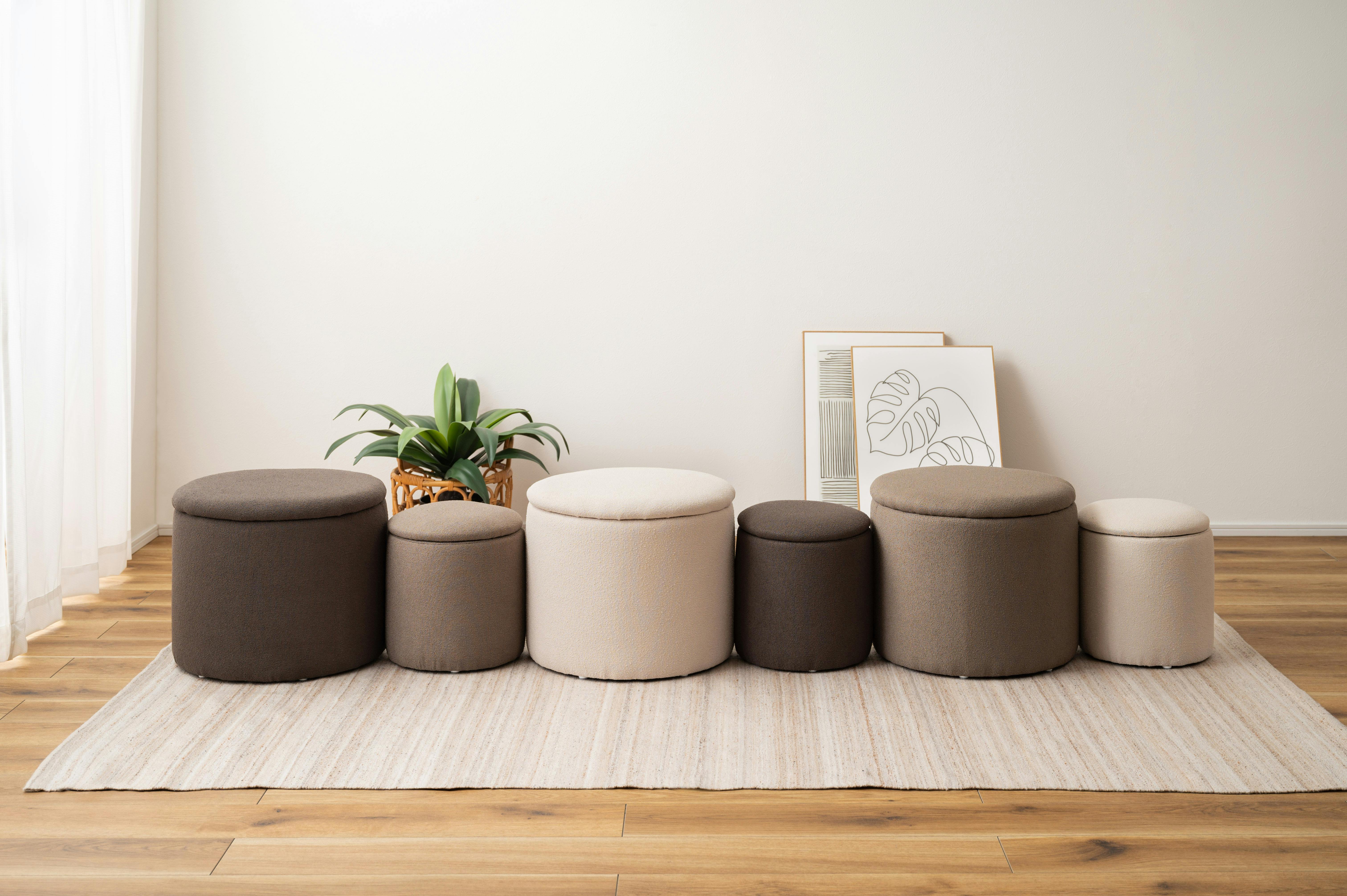 Room Essence ラウンド収納スツール W30×D30×H32 グレージュ 完成品 収納 椅子 ドレッサー 収納スツールボックス 収納スツールオットマン 座れる 収納椅子 低い椅子 おしゃれ モダン ロースツール 低い 丸い 丸 MYS-604GYB【別送品】