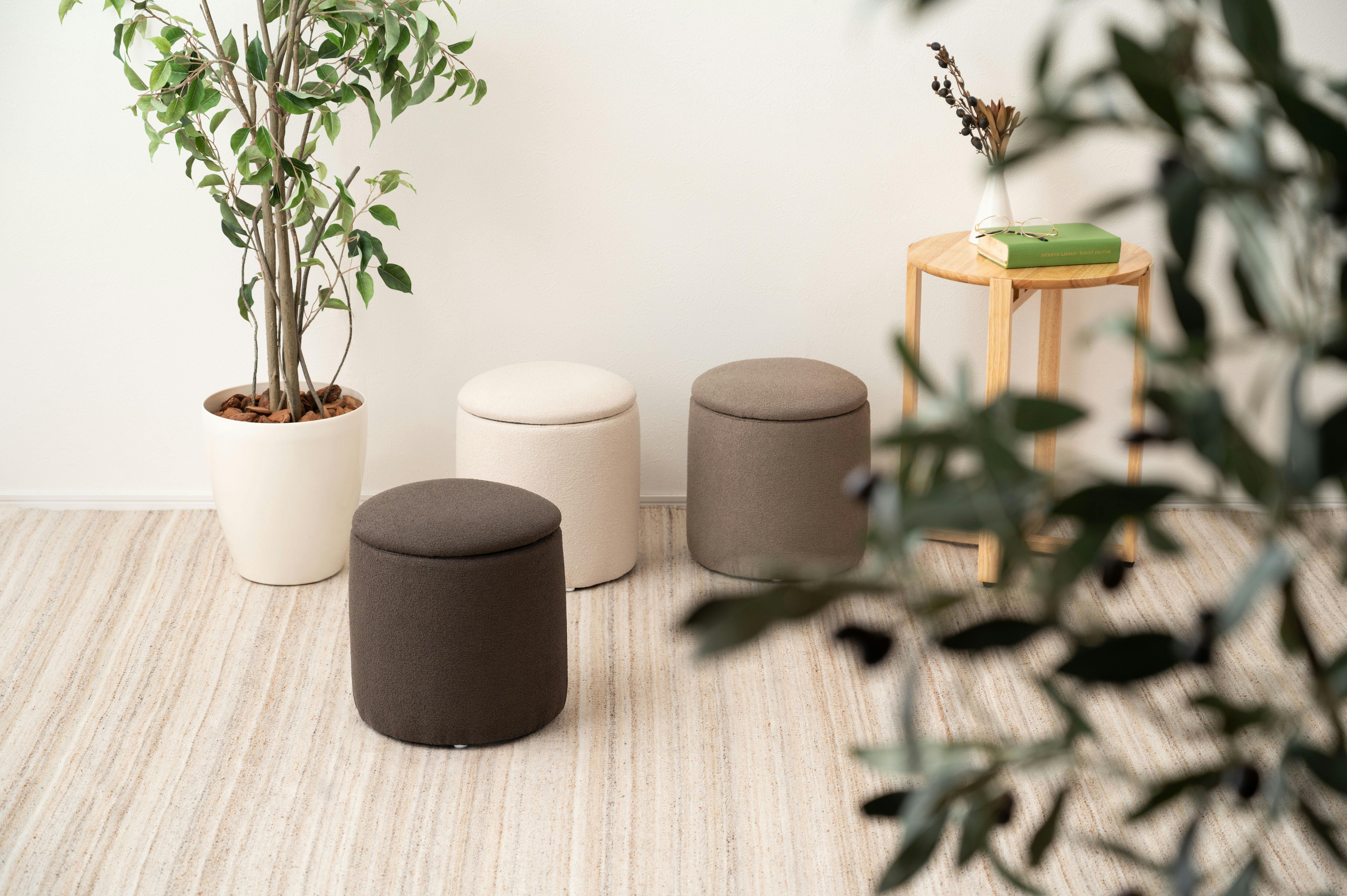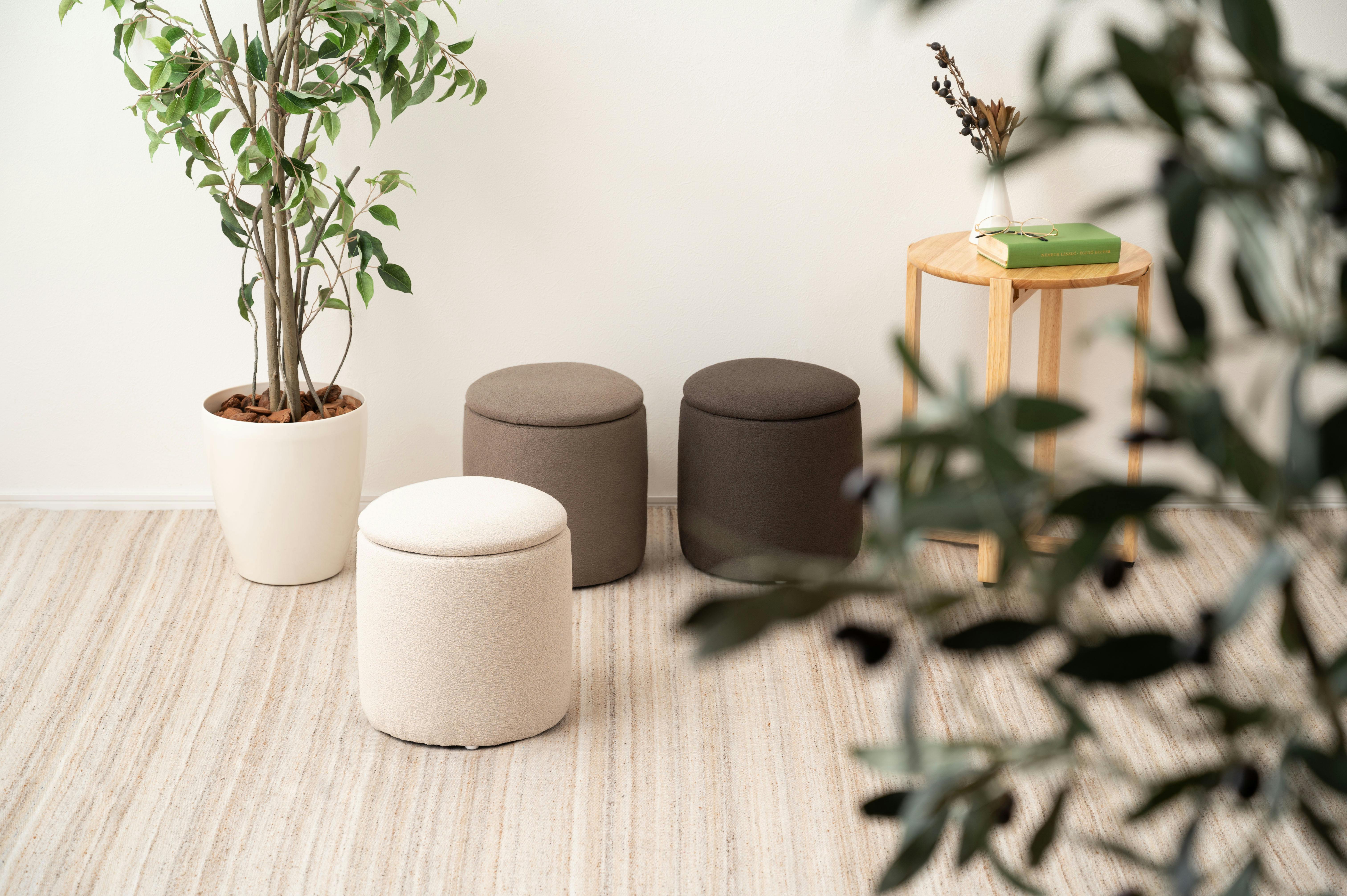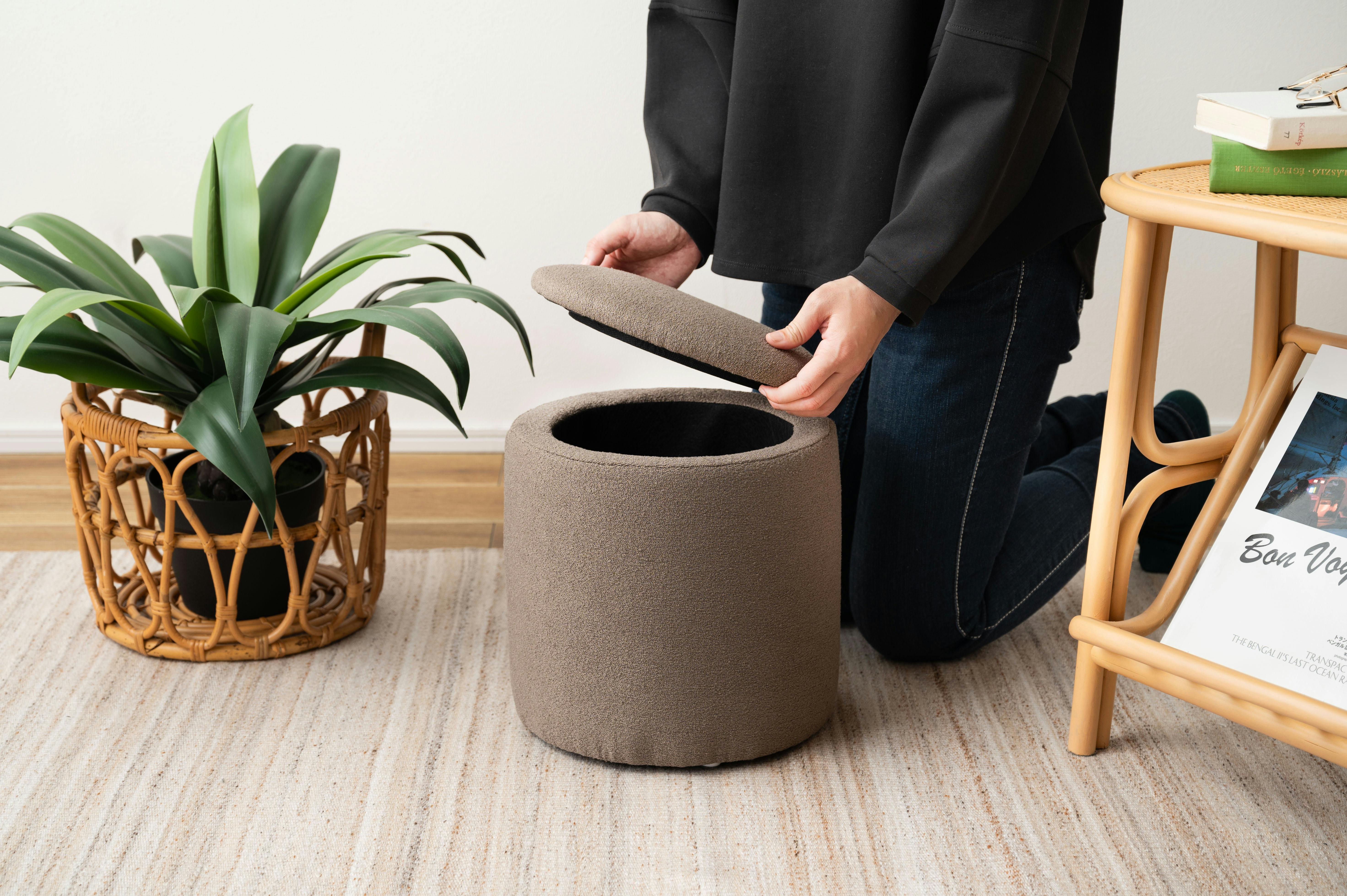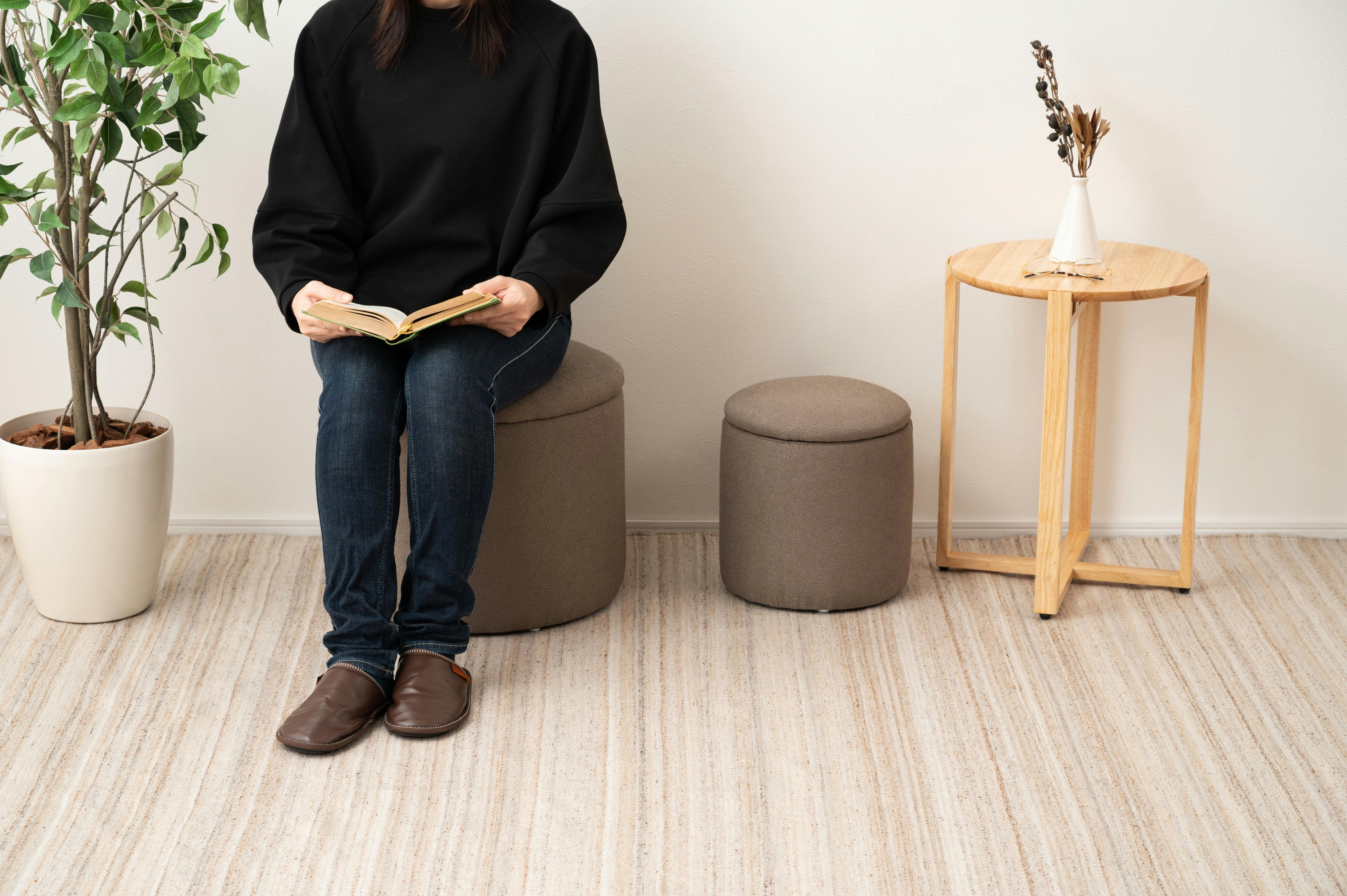 Room Essence ラウンド収納スツール W30×D30×H32 グレージュ 完成品 収納 椅子 ドレッサー 収納スツールボックス 収納スツールオットマン 座れる 収納椅子 低い椅子 おしゃれ モダン ロースツール 低い 丸い 丸 MYS-604GYB【別送品】