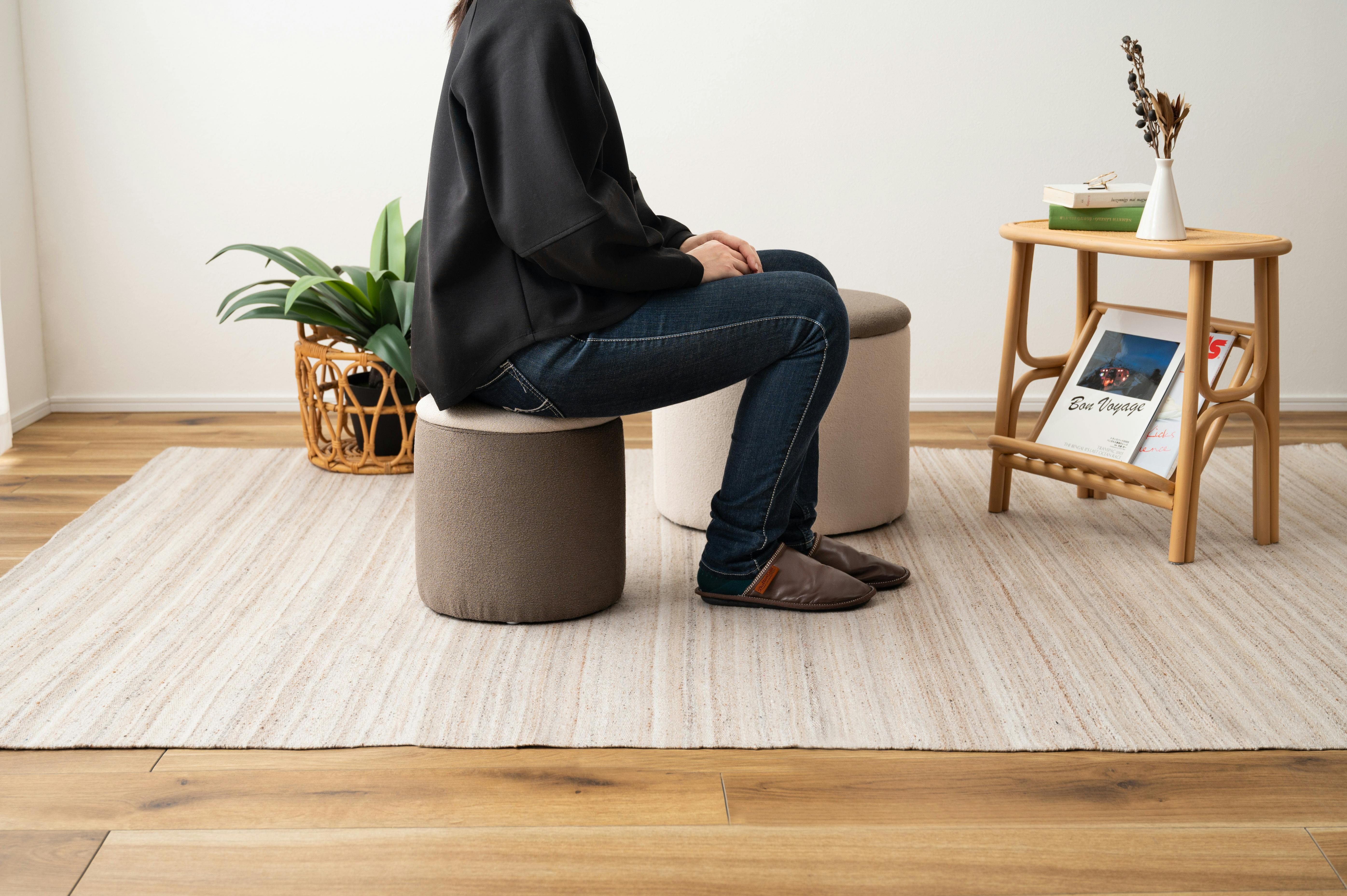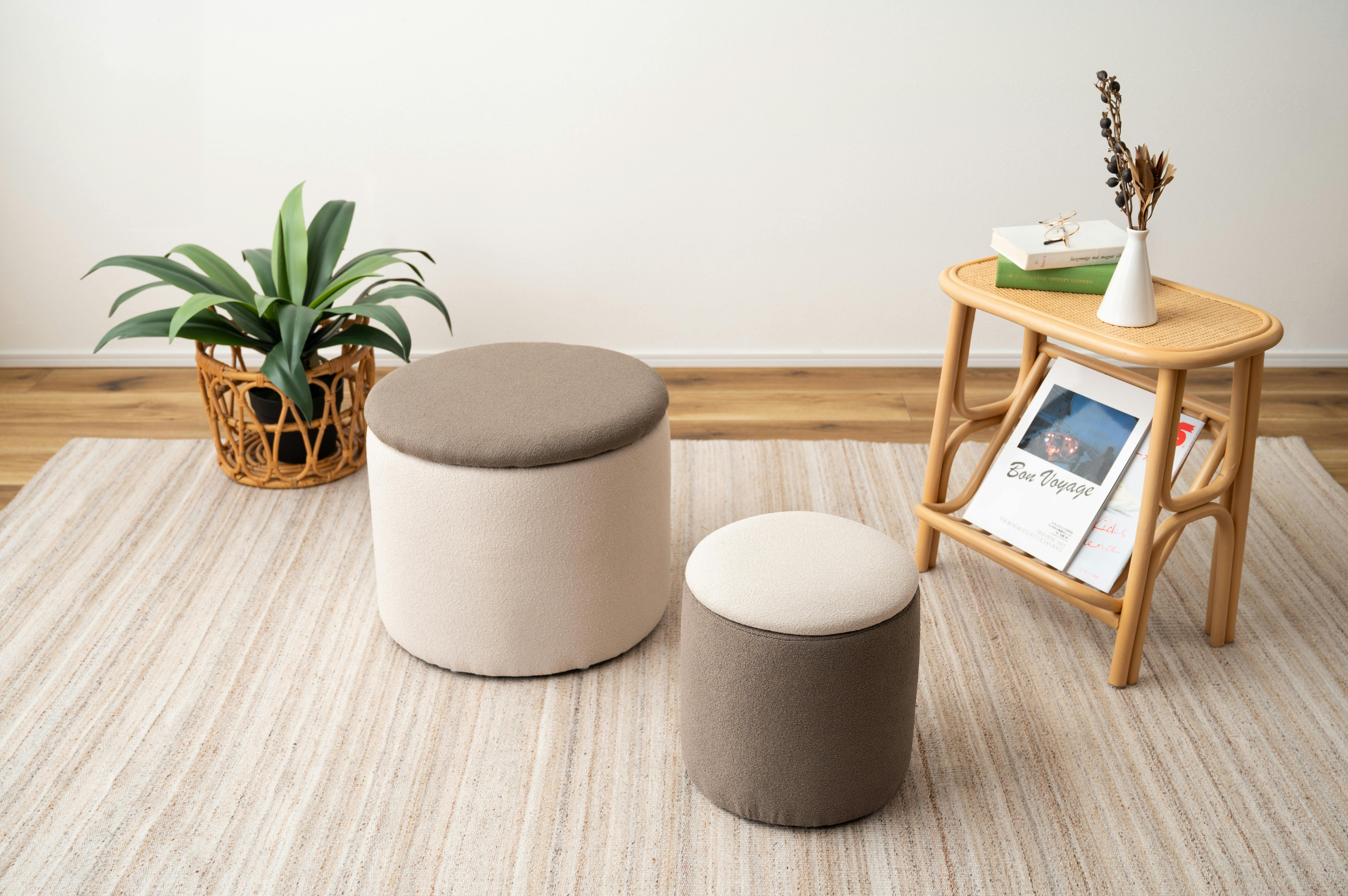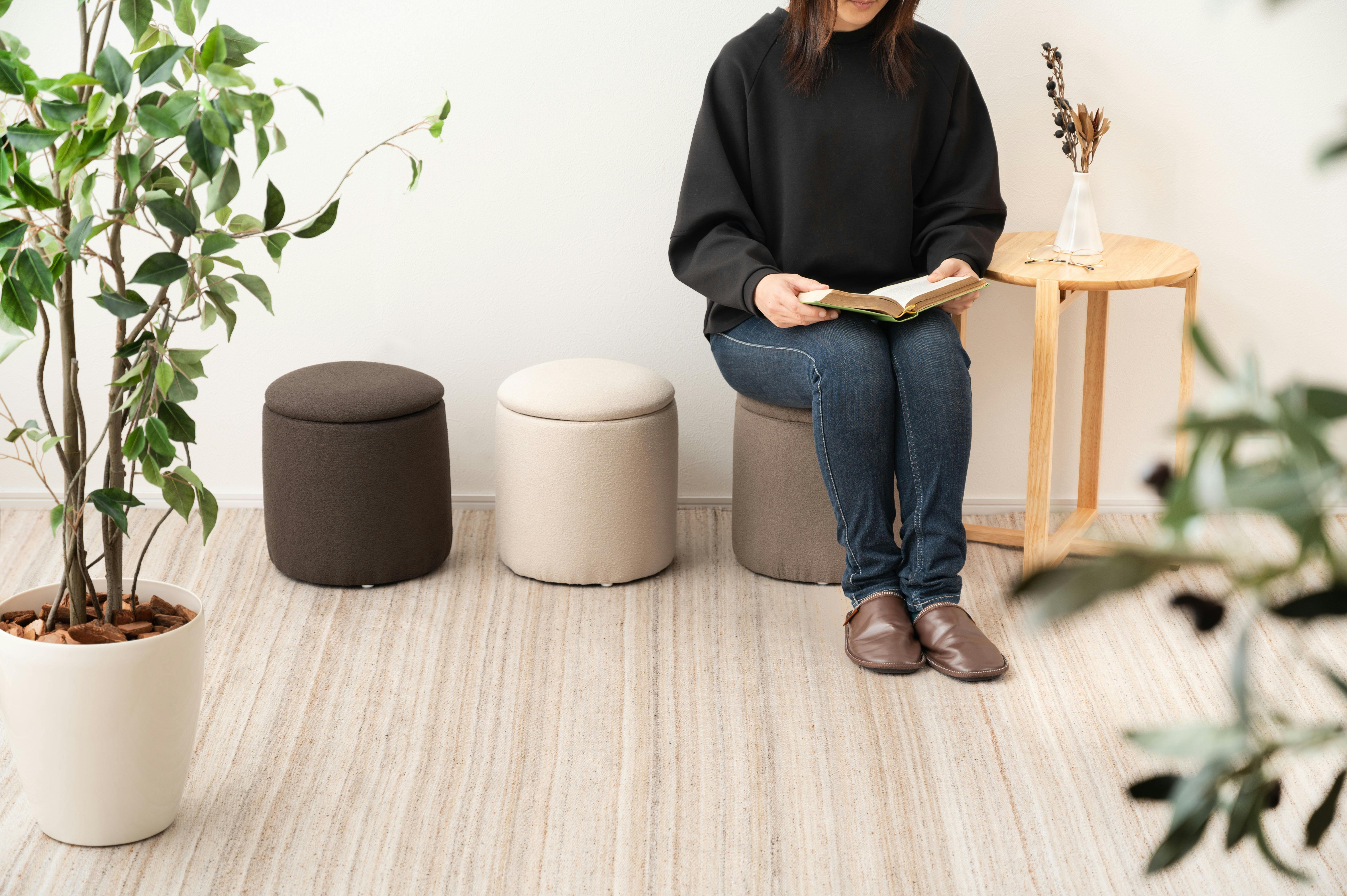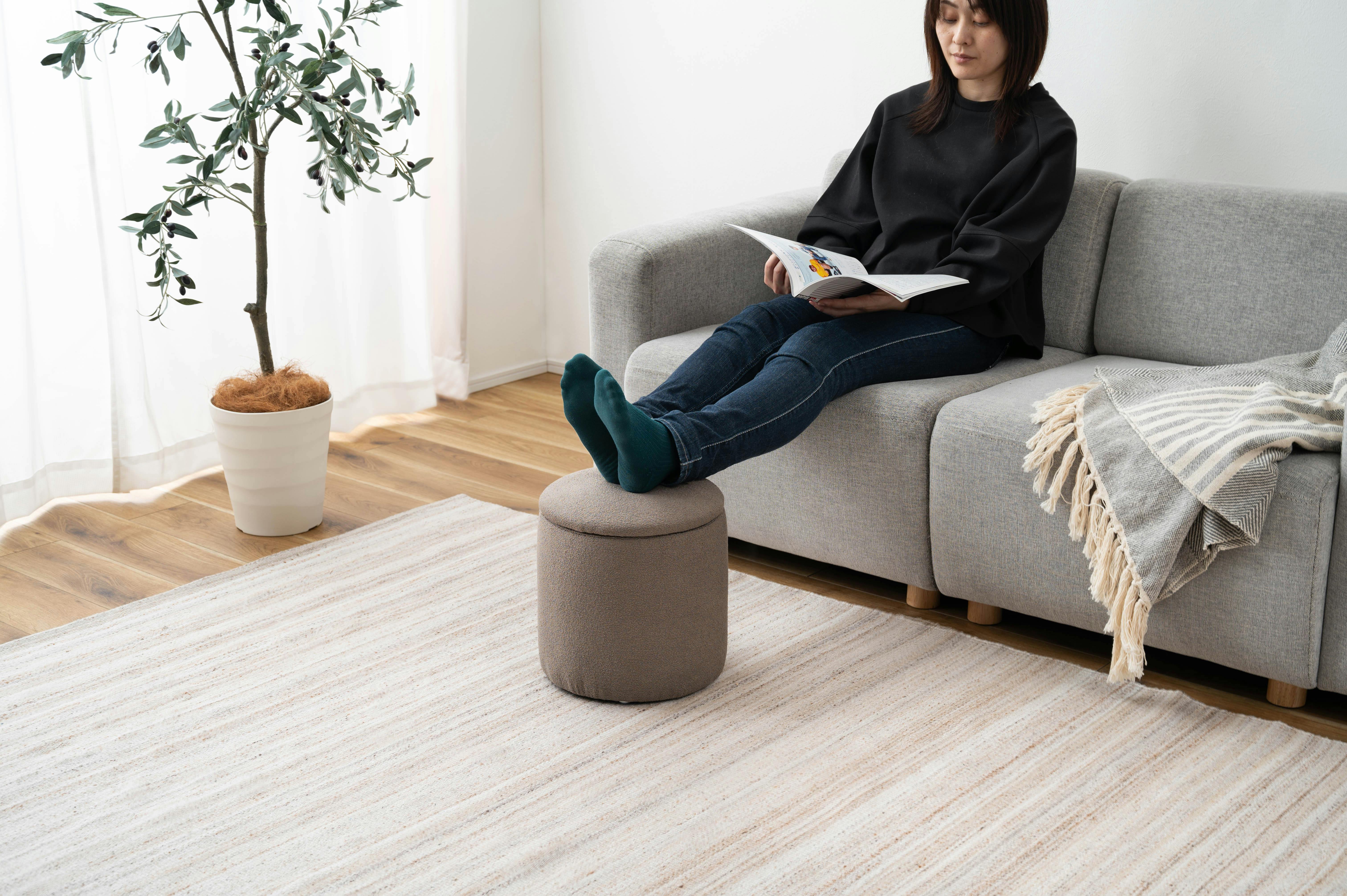 Room Essence ラウンド収納スツール W30×D30×H32 グレージュ 完成品 収納 椅子 ドレッサー 収納スツールボックス 収納スツールオットマン 座れる 収納椅子 低い椅子 おしゃれ モダン ロースツール 低い 丸い 丸 MYS-604GYB【別送品】