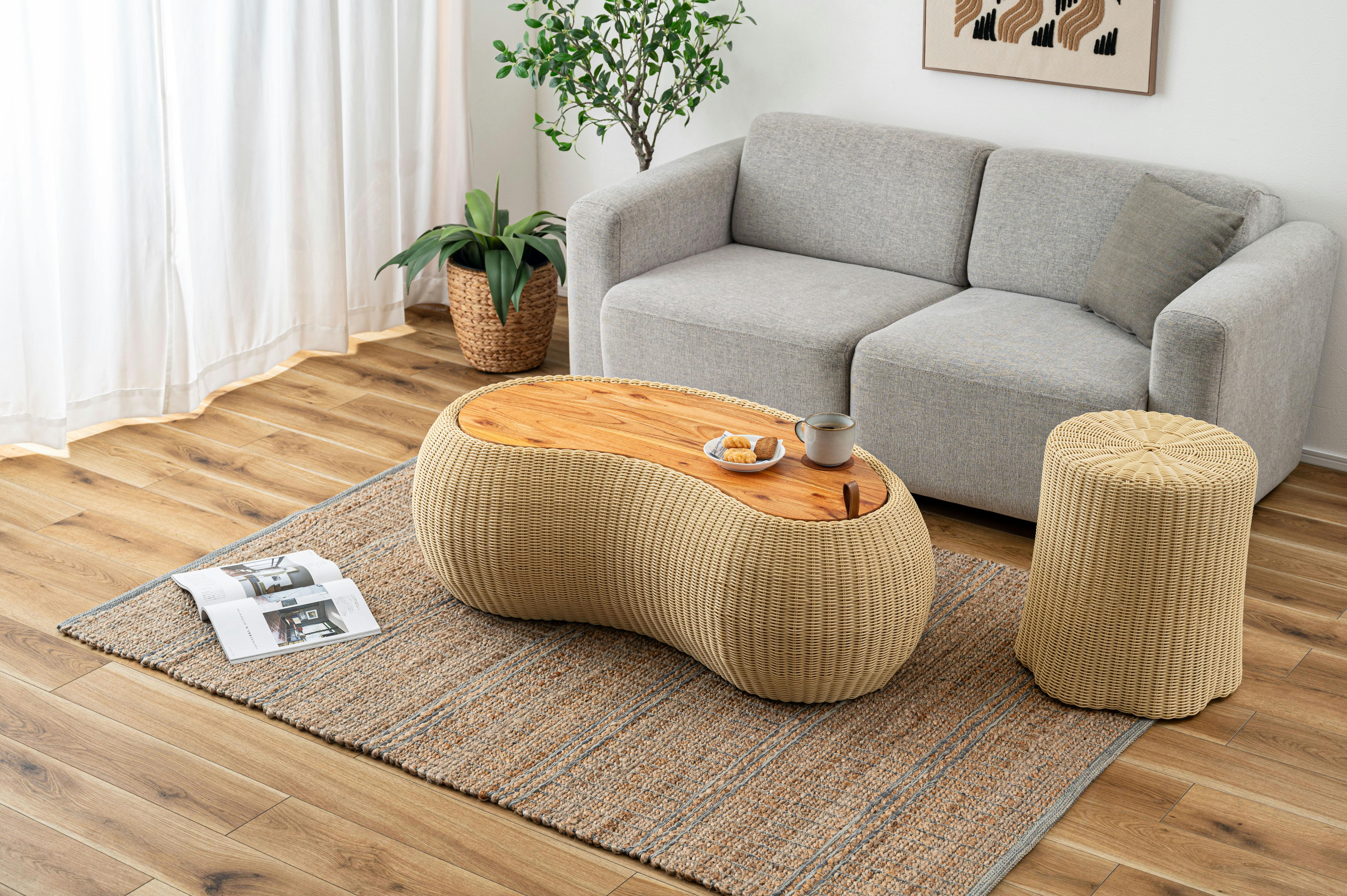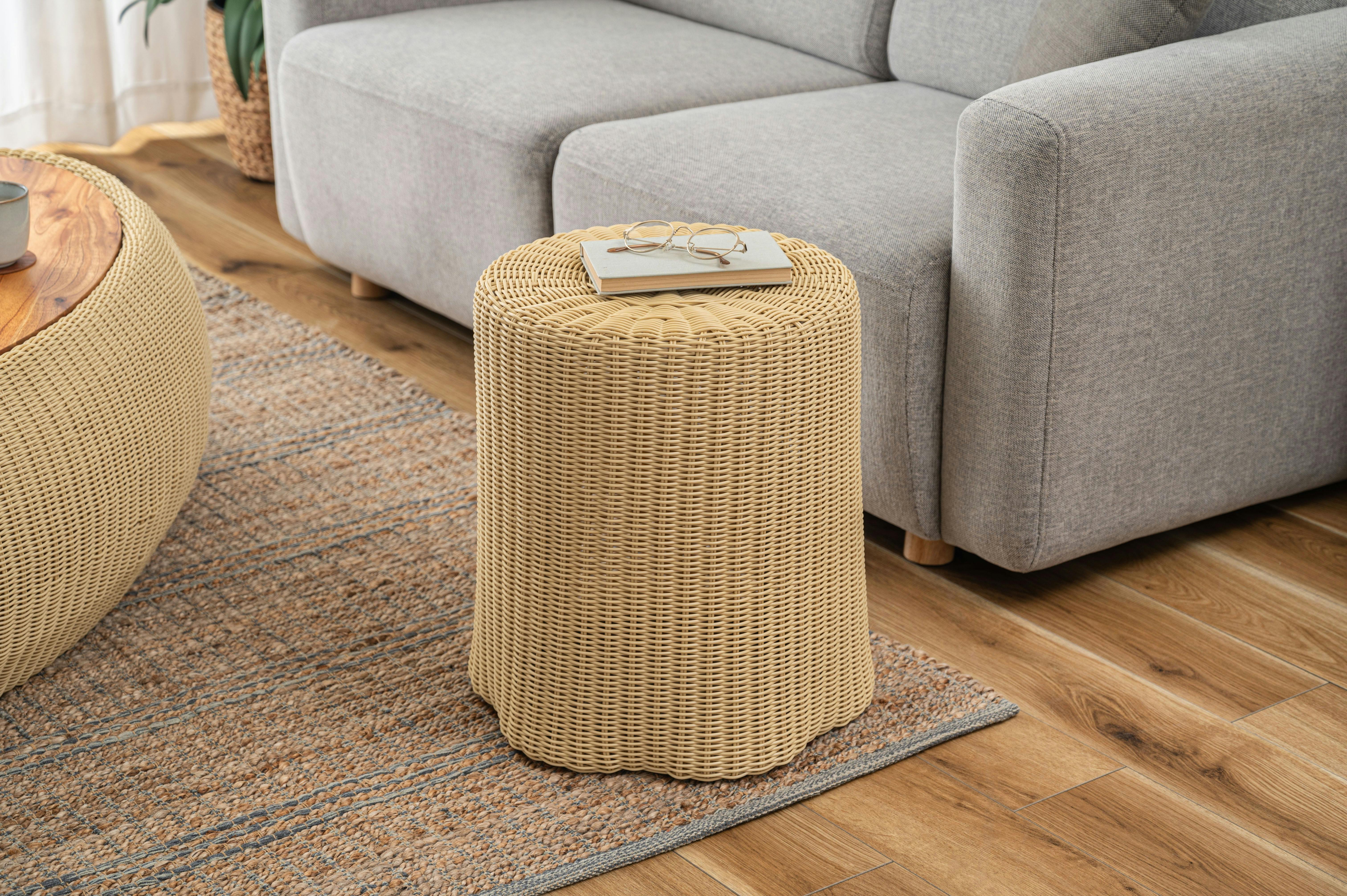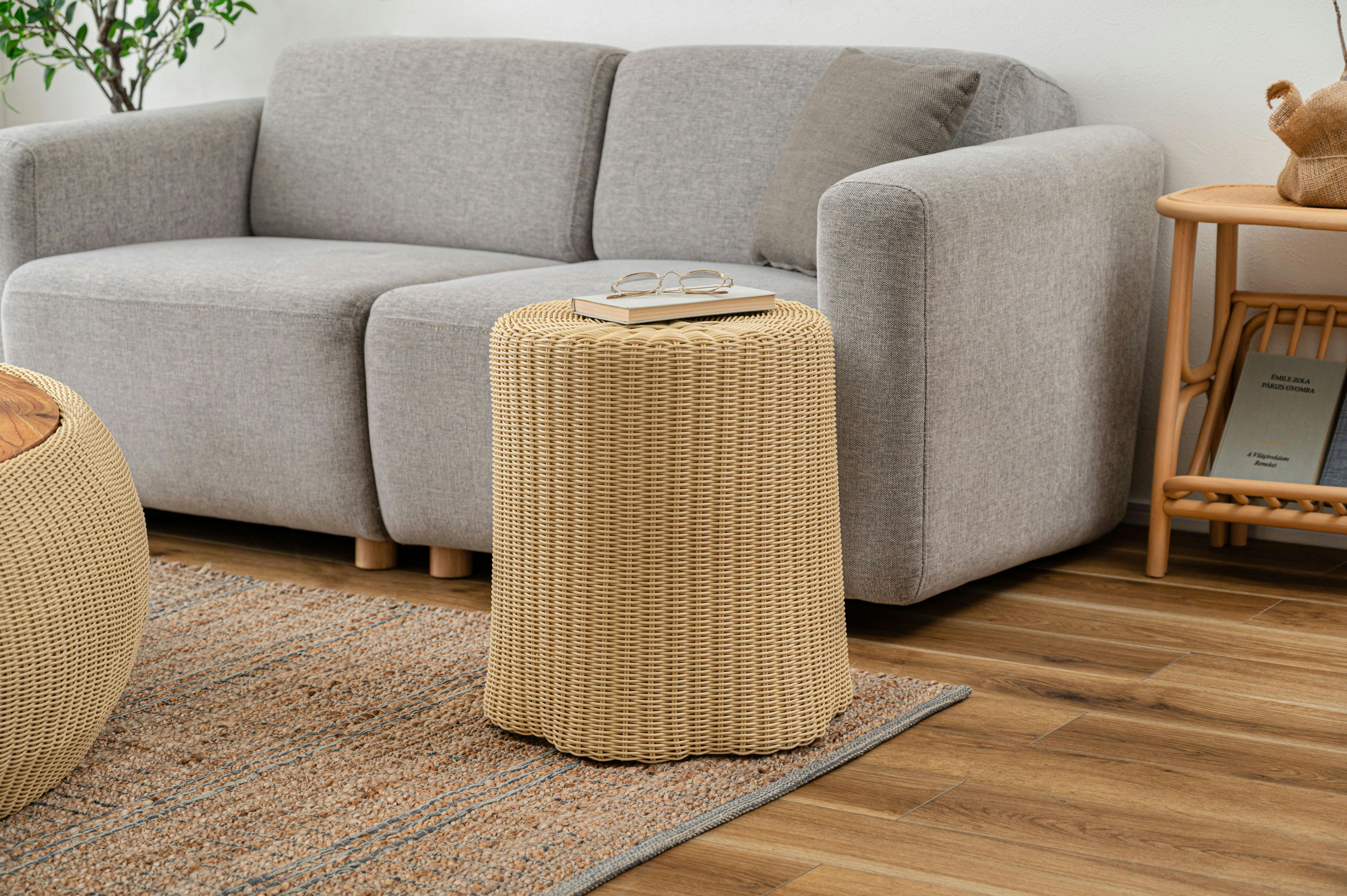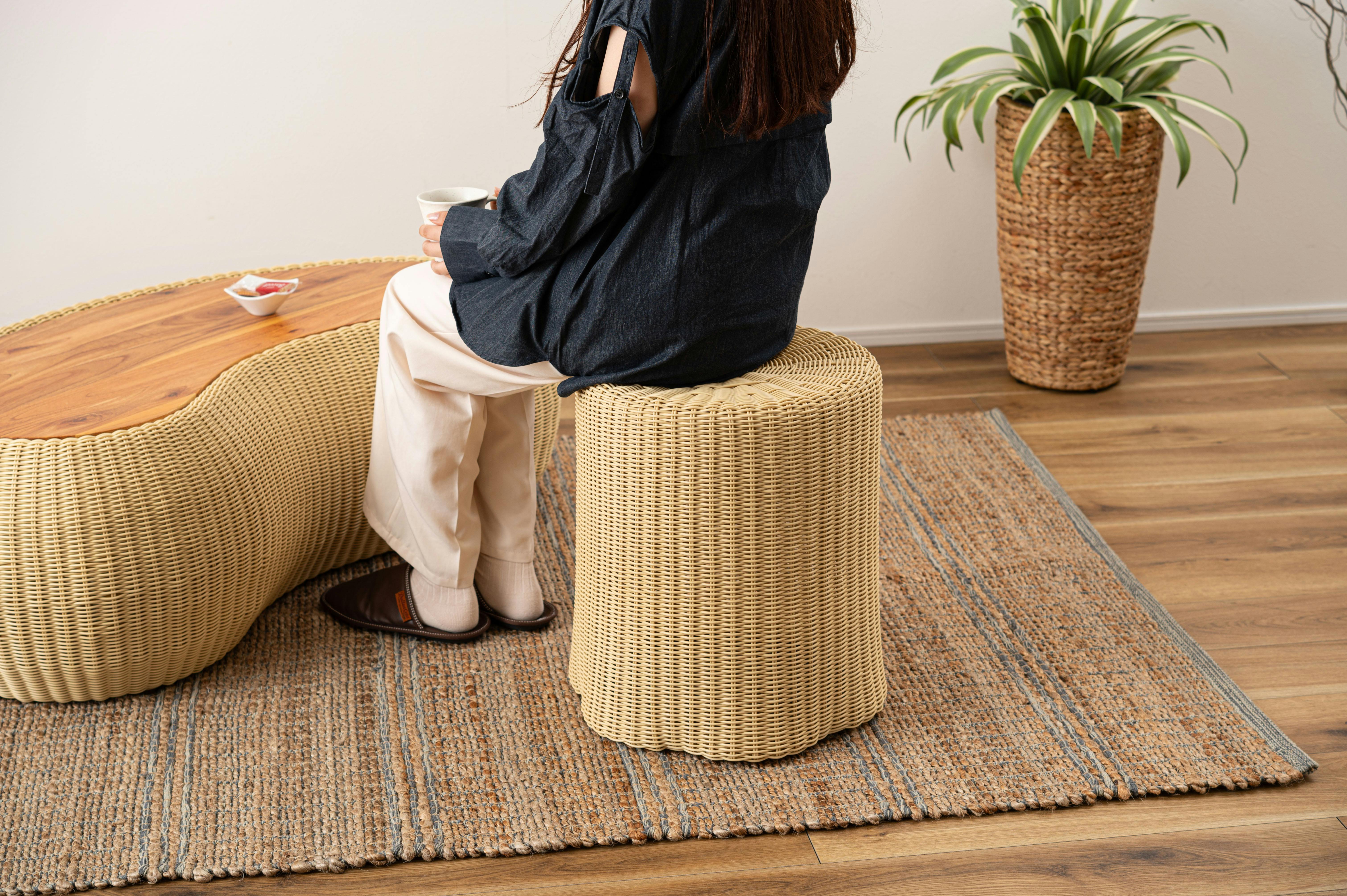 Room Essence スツール W42×D40×H46 ベージュ 完成品 椅子 チェア 切り株風 サイドテーブル かわいい 北欧 丸 コンパクト おしゃれ リビング ダイニング 屋外 NRS-602【別送品】