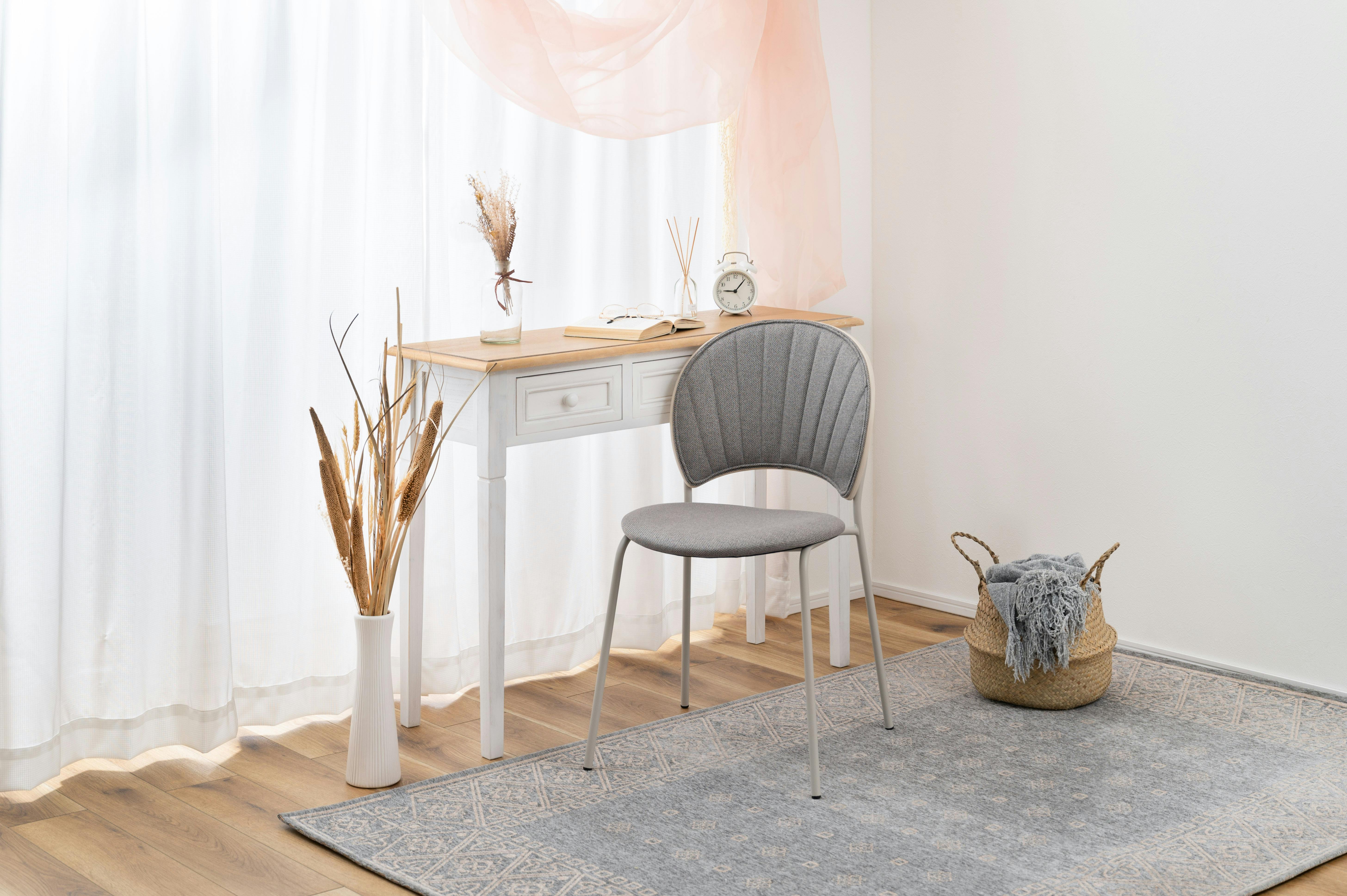 Room Essence チェア W45×D54.5×H77×SH45 グレー 組立式 椅子 イス ダイニング デスク おしゃれ 幅45 座面高45 北欧 韓国 韓国風 かわいい シェル シェル型 ペールカラー 一人掛け ドレッサー PC-621GY【別送品】