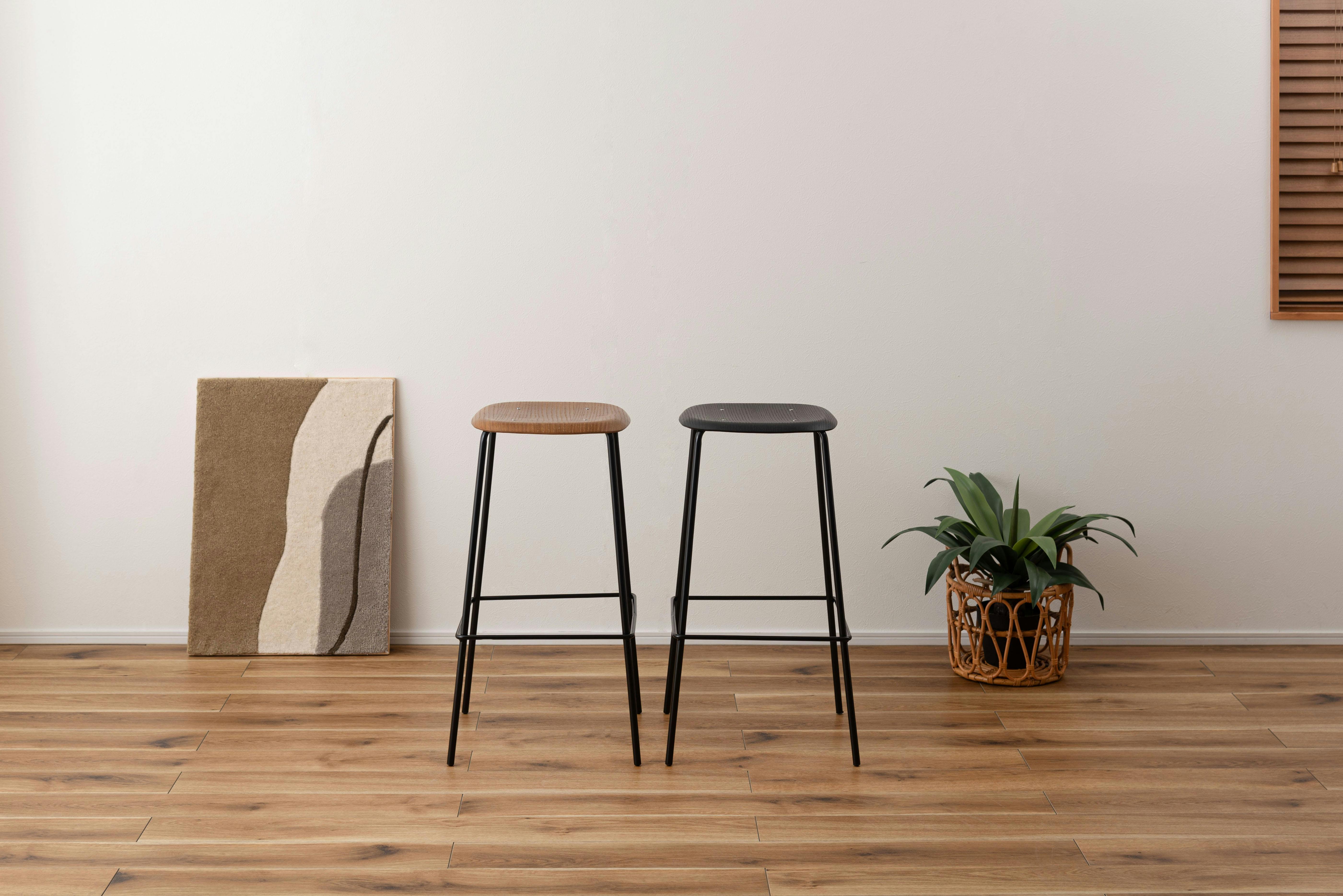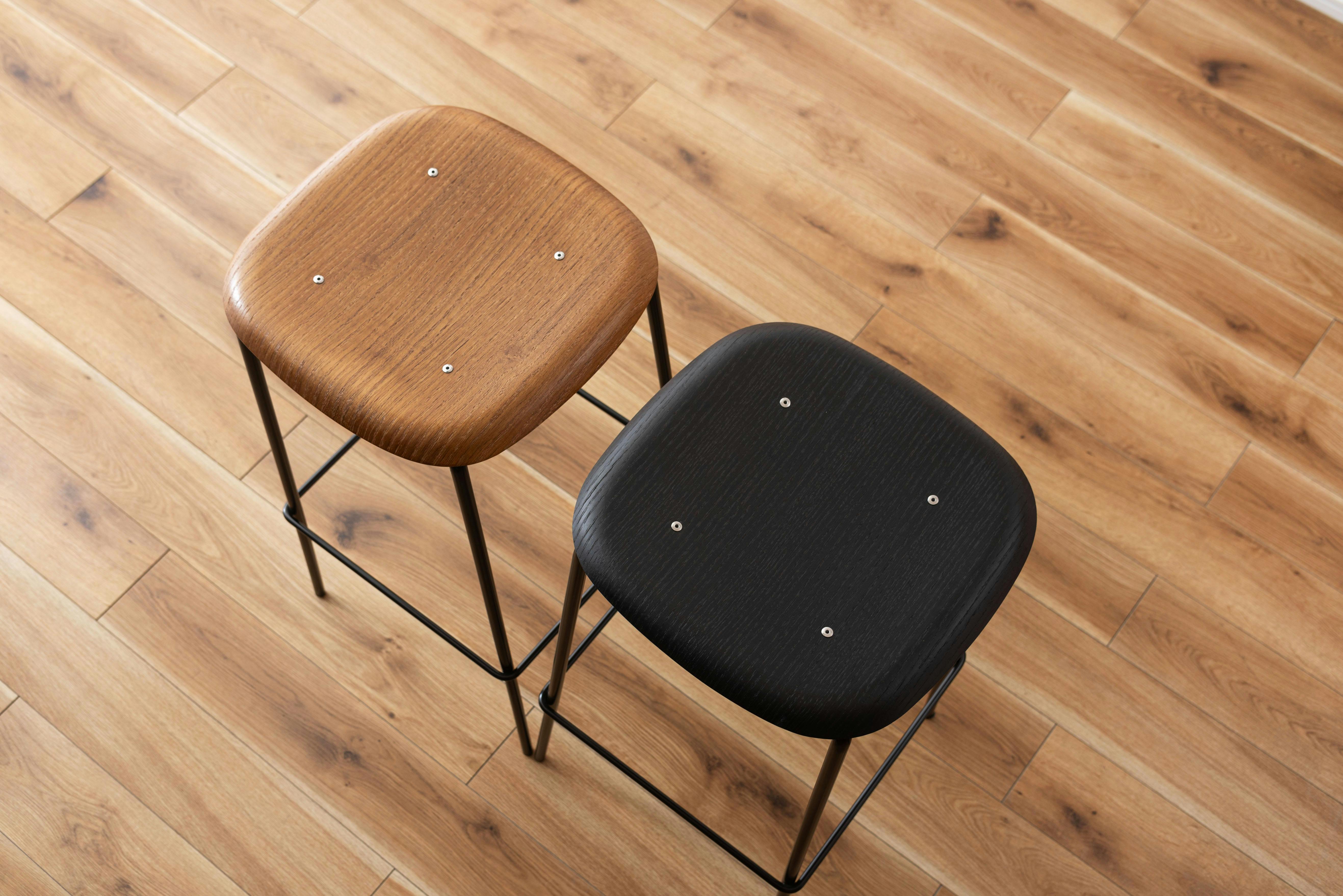 スツール 椅子 高さ74.5 フットレスト 足置き付き 背もたれなし 天然木 ブラックスチール スチール シンプル おしゃれ モダン 異素材