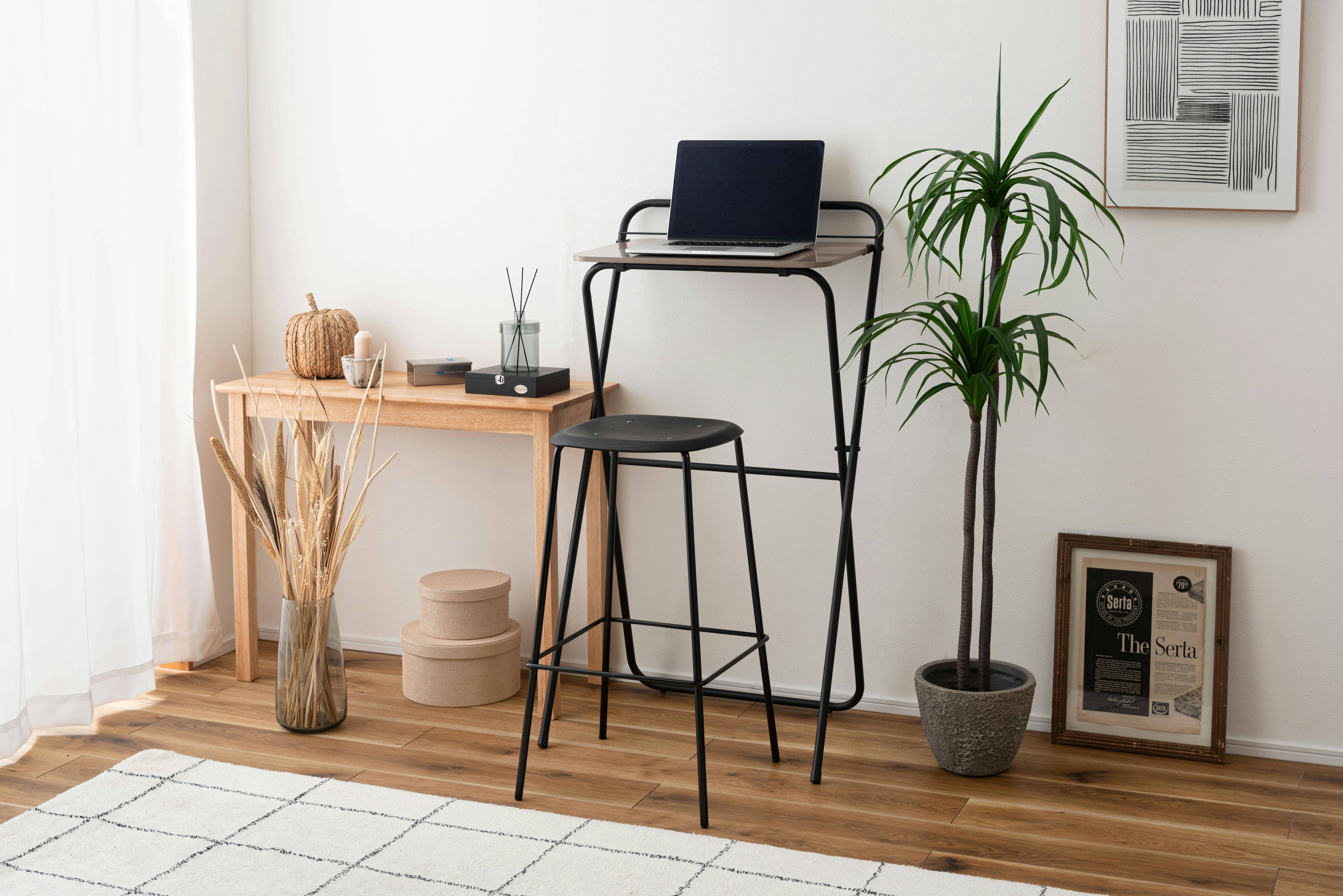 Room Essence ハイスツール W43×D43×H74.5 ブラック 完成品 スツール 椅子 高さ74.5 フットレスト 足置き付き 背もたれなし 天然木 ブラックスチール スチール シンプル おしゃれ モダン 異素材 PC-686BK【別送品】