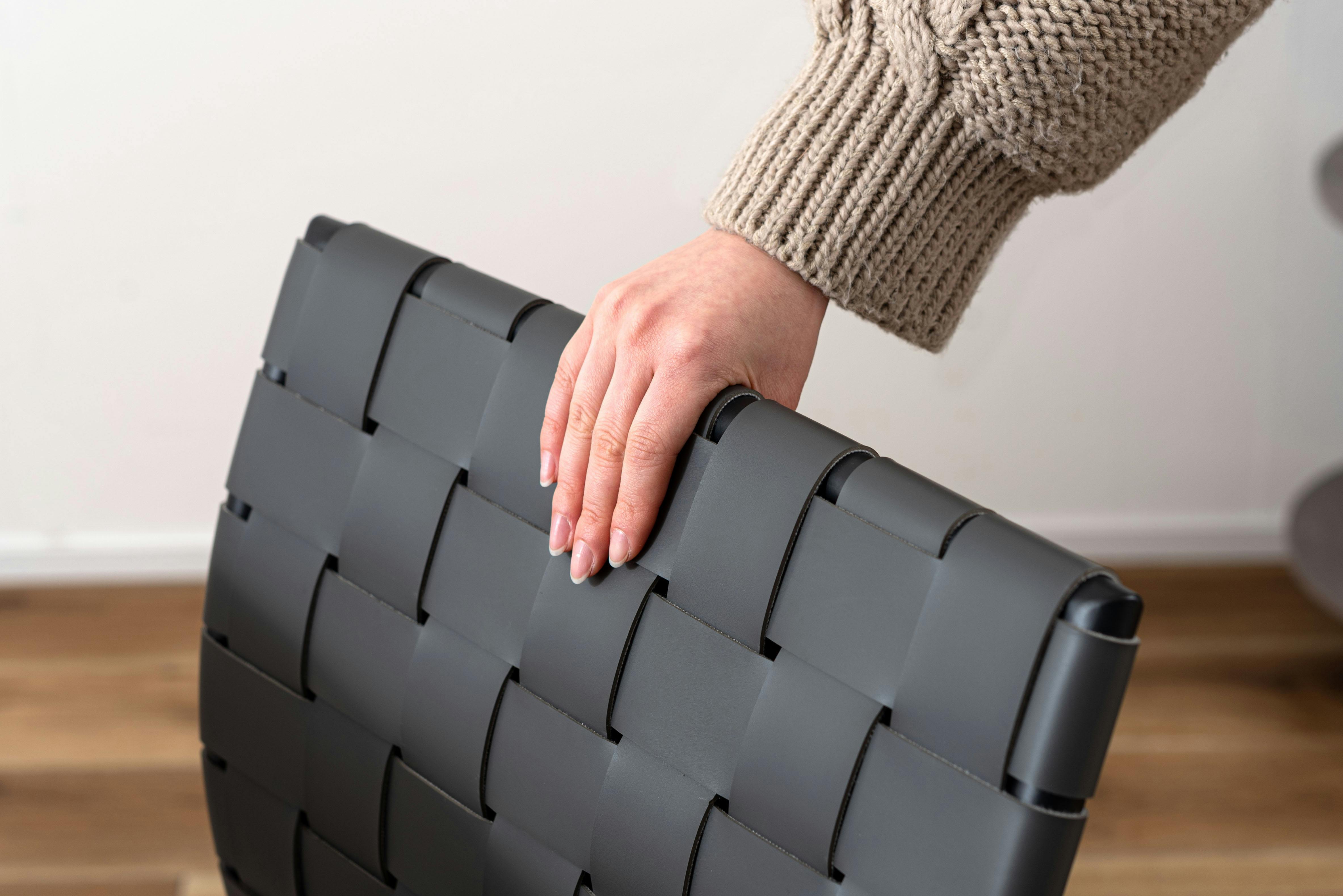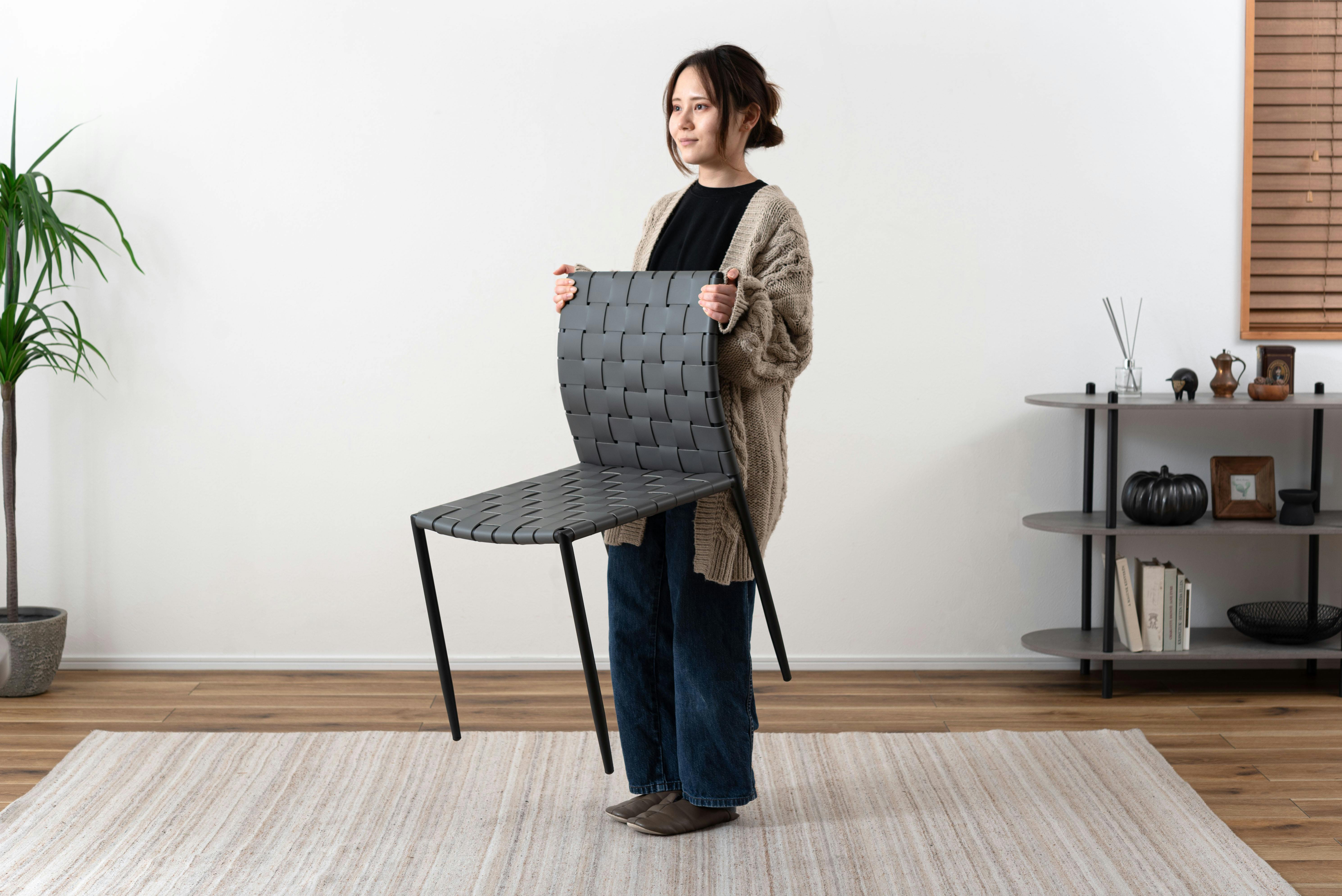 Room Essence チェア W43×D52×H80.5×SH45 ダークグレー 完成品 イス 椅子 ダイニング リビング シンプル モダン おしゃれ アイアン レザー 合皮 PC-822DGY【別送品】