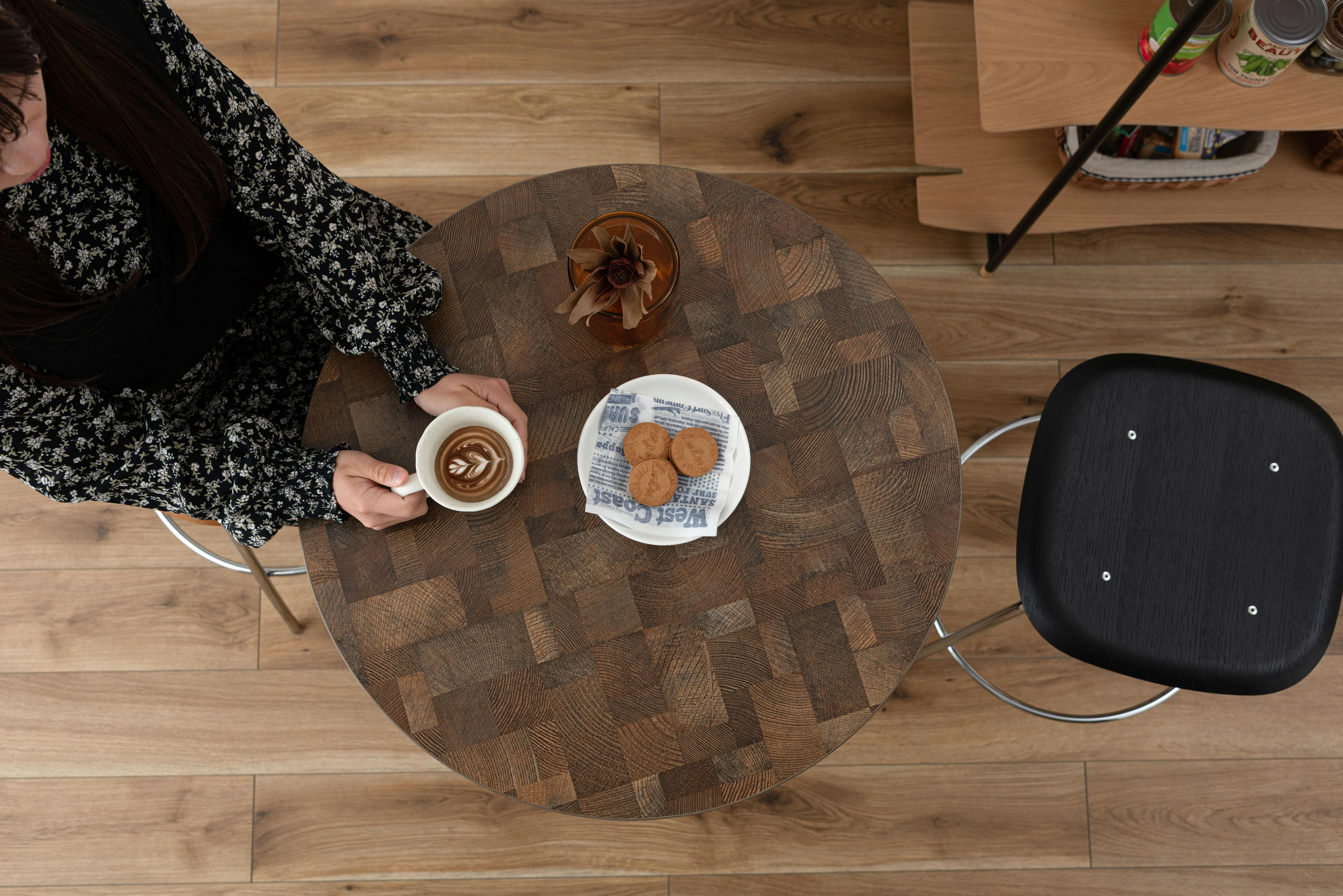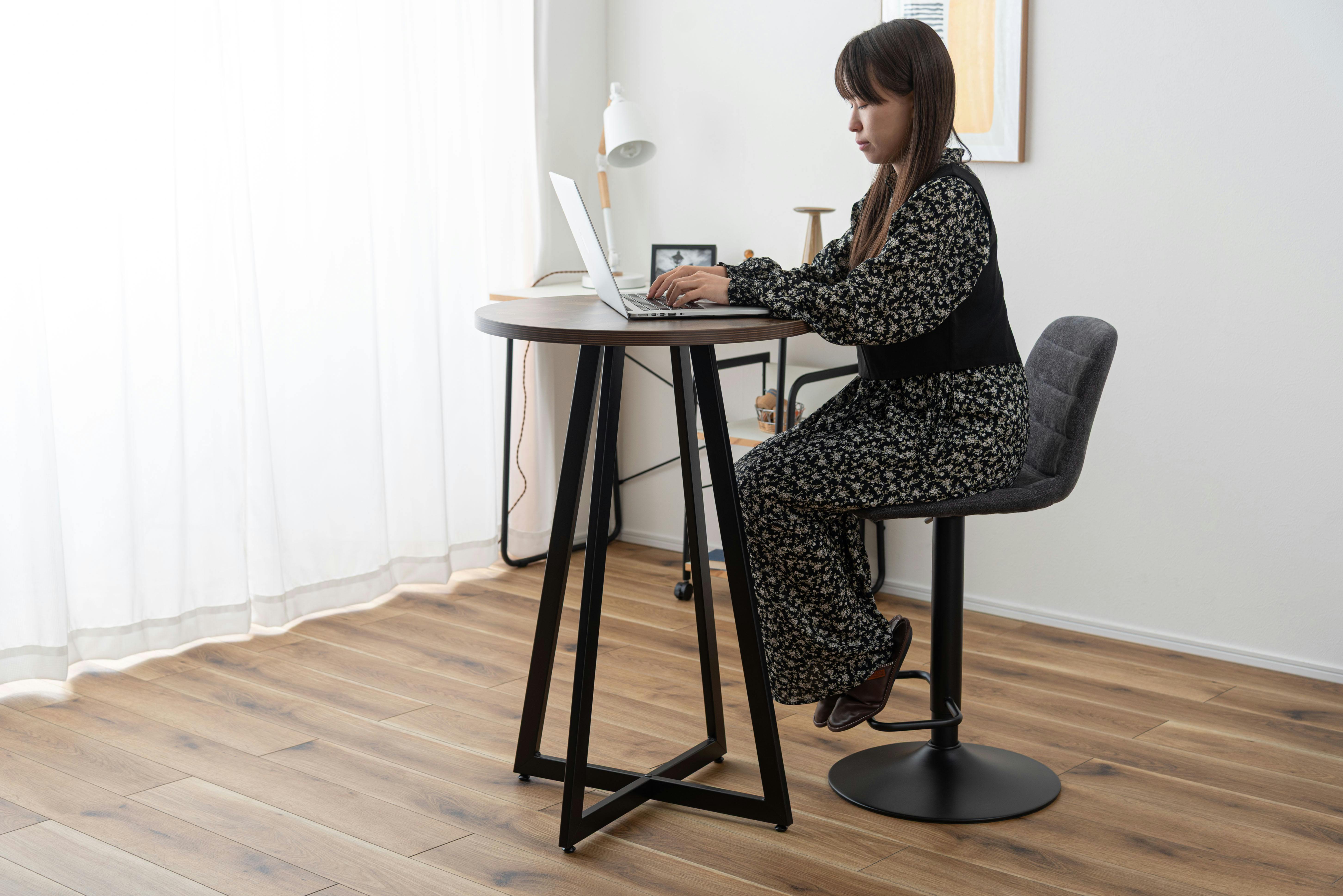 テーブル カフェテーブル カウンターテーブル バーテーブル ハイタイプ 木目調 アイアン ブラックスチール アジャスター 丸 シンプル モダン ミックス