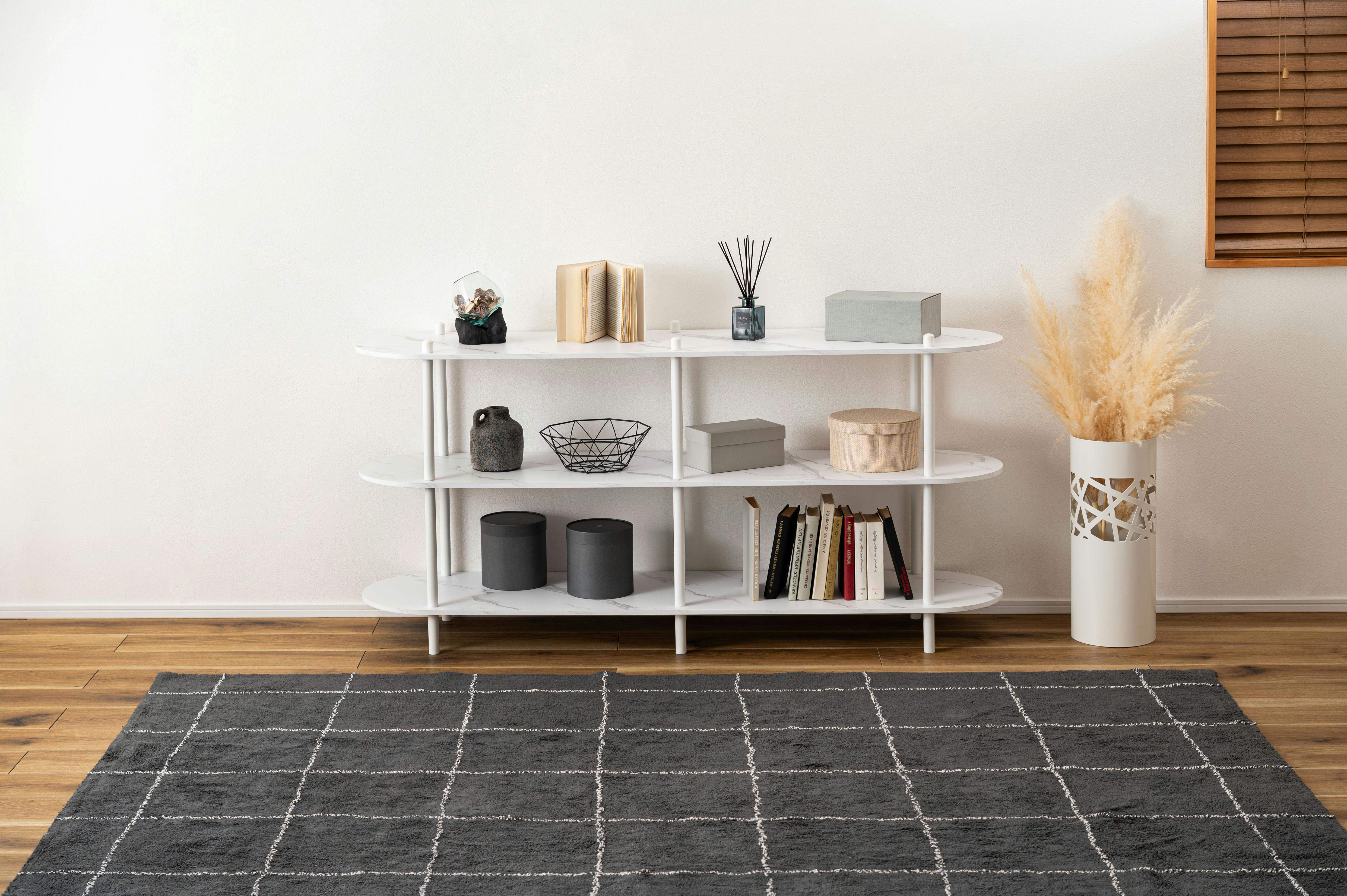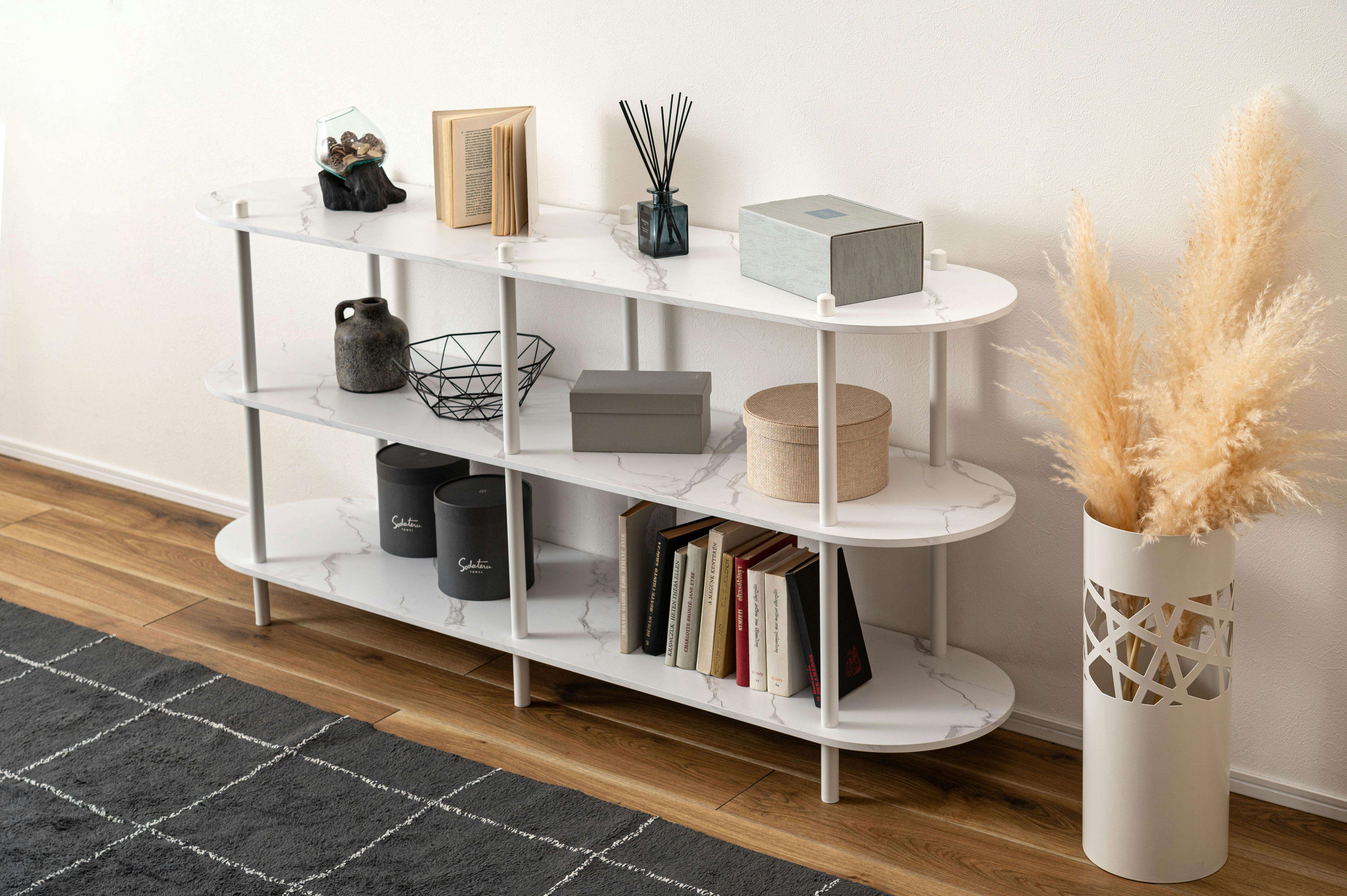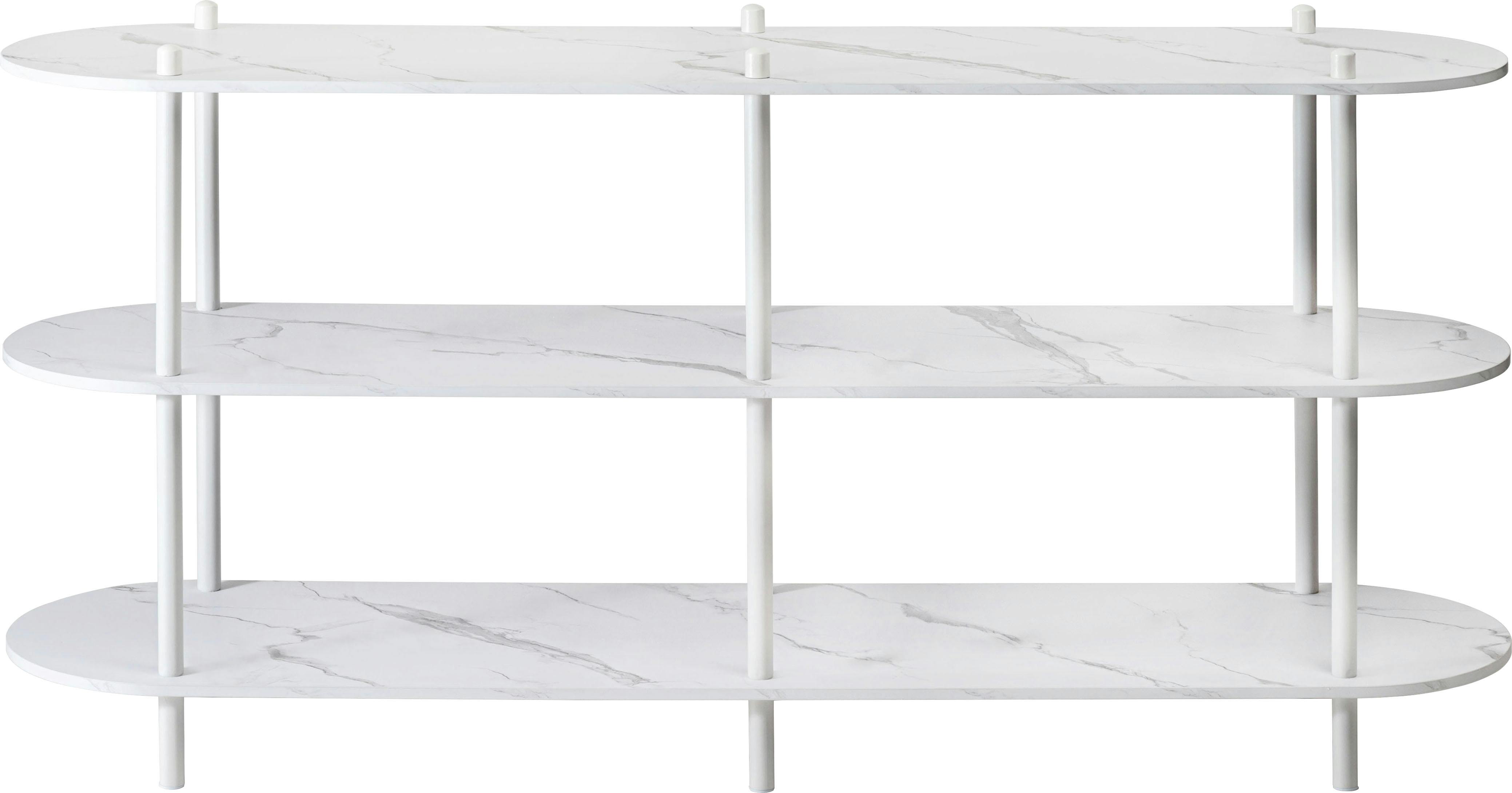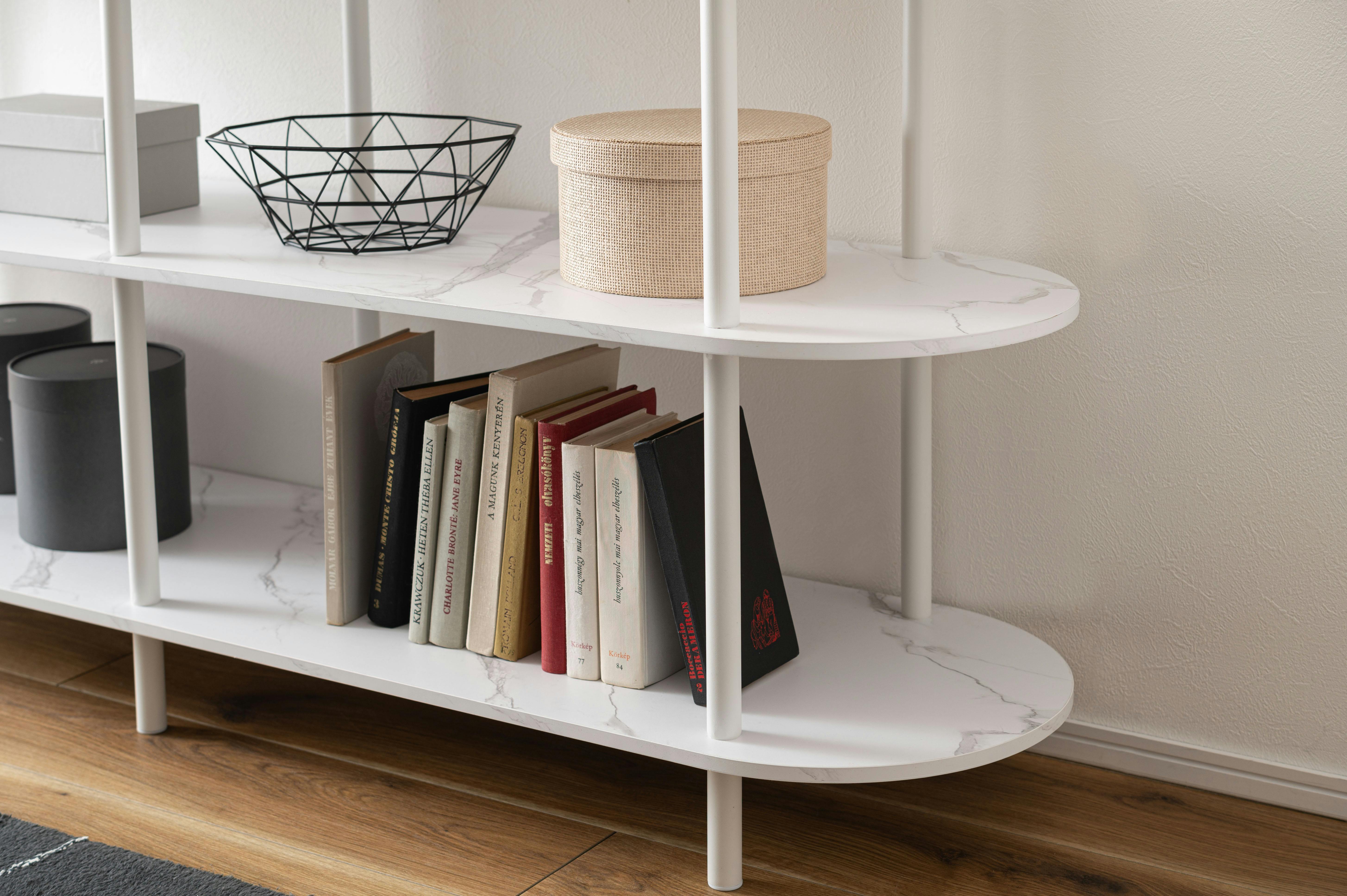 Room Essence オープンラック3段 W155×D38×H76 ホワイト ねじこみ式 収納棚 ディスプレイラック 大理石調 石目調 シック モダン 楕円形 リビング 見せる収納 スチール脚 PT-564WH【別送品】