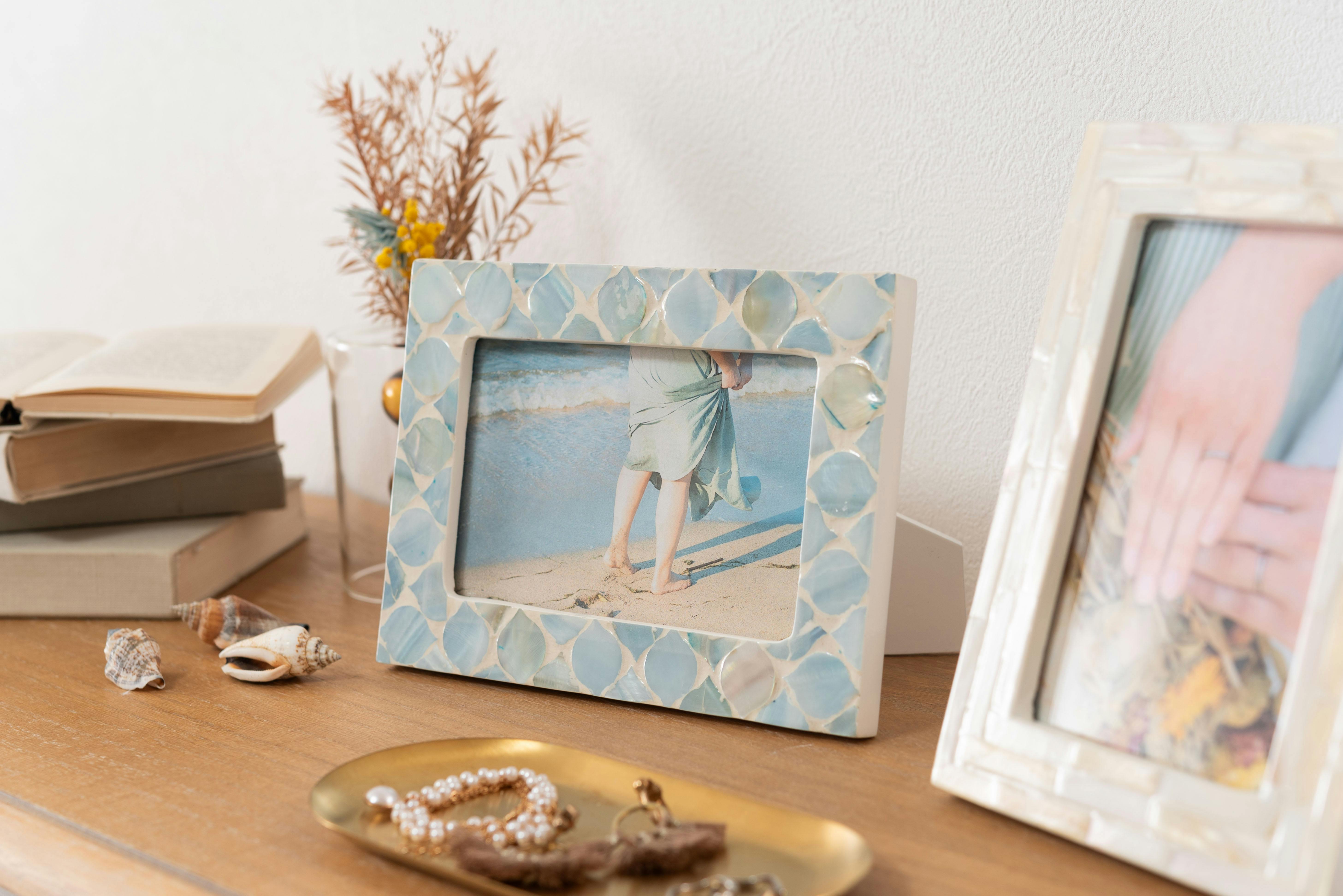 • Room Essence フォトフレーム W14×D2×H19 完成品 マザーオブパールシェル パール貝 貝 海岸 天然 高級感 ラグジュアリー ナチュラル モダン アジアン ヨーロッパ 軽量 フェミニン シンプル かわいい おしゃれ パール SLY-601A【別送品】