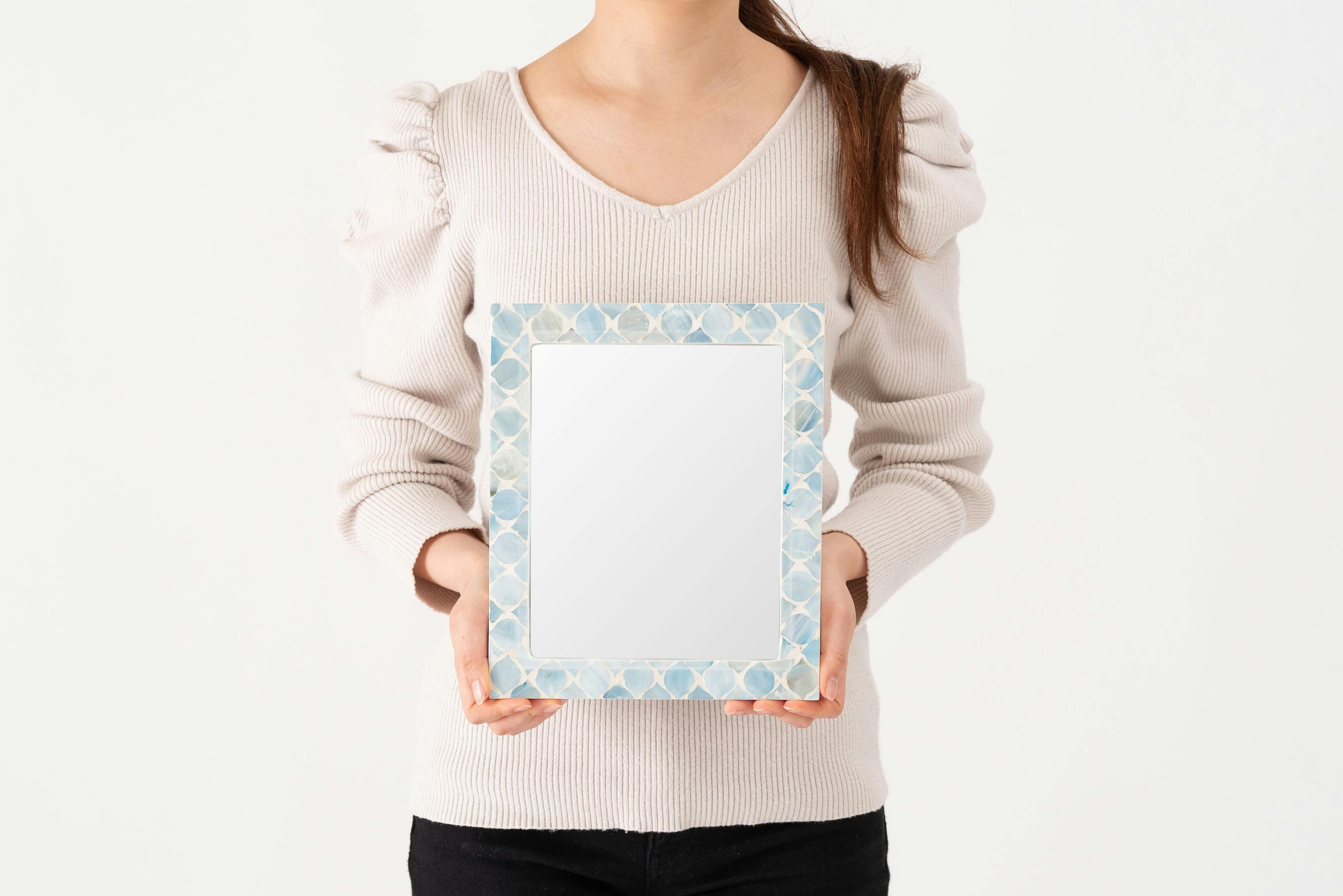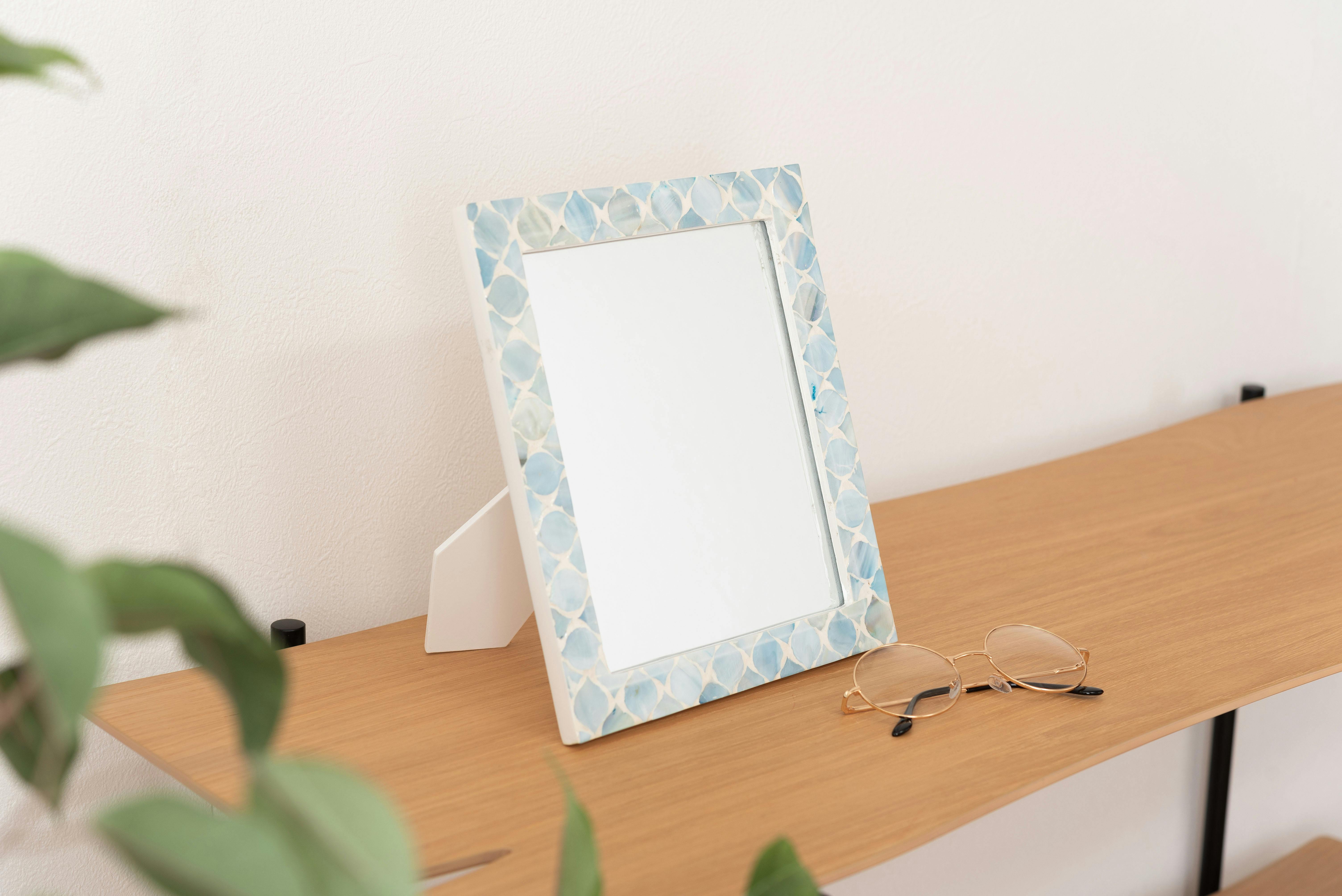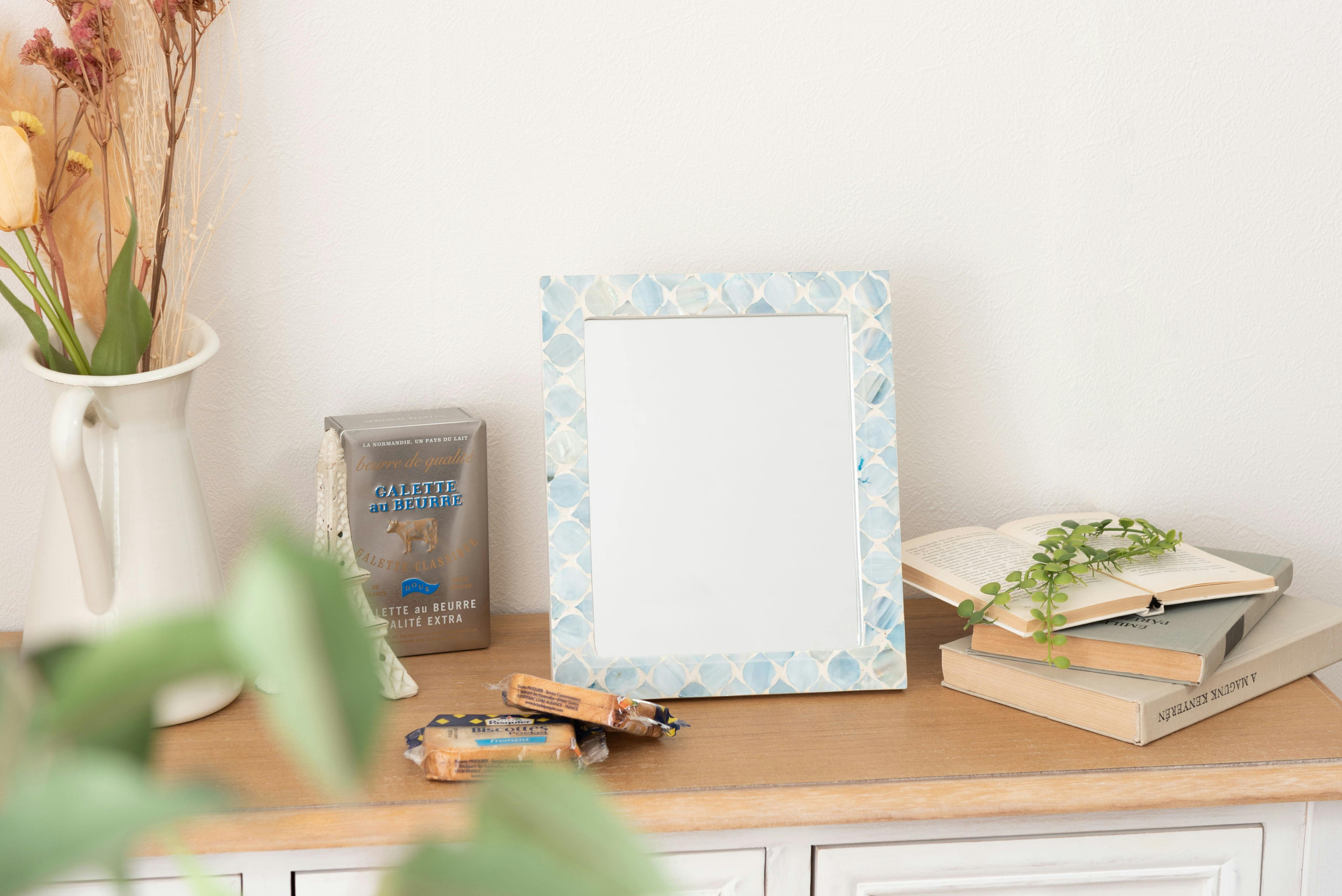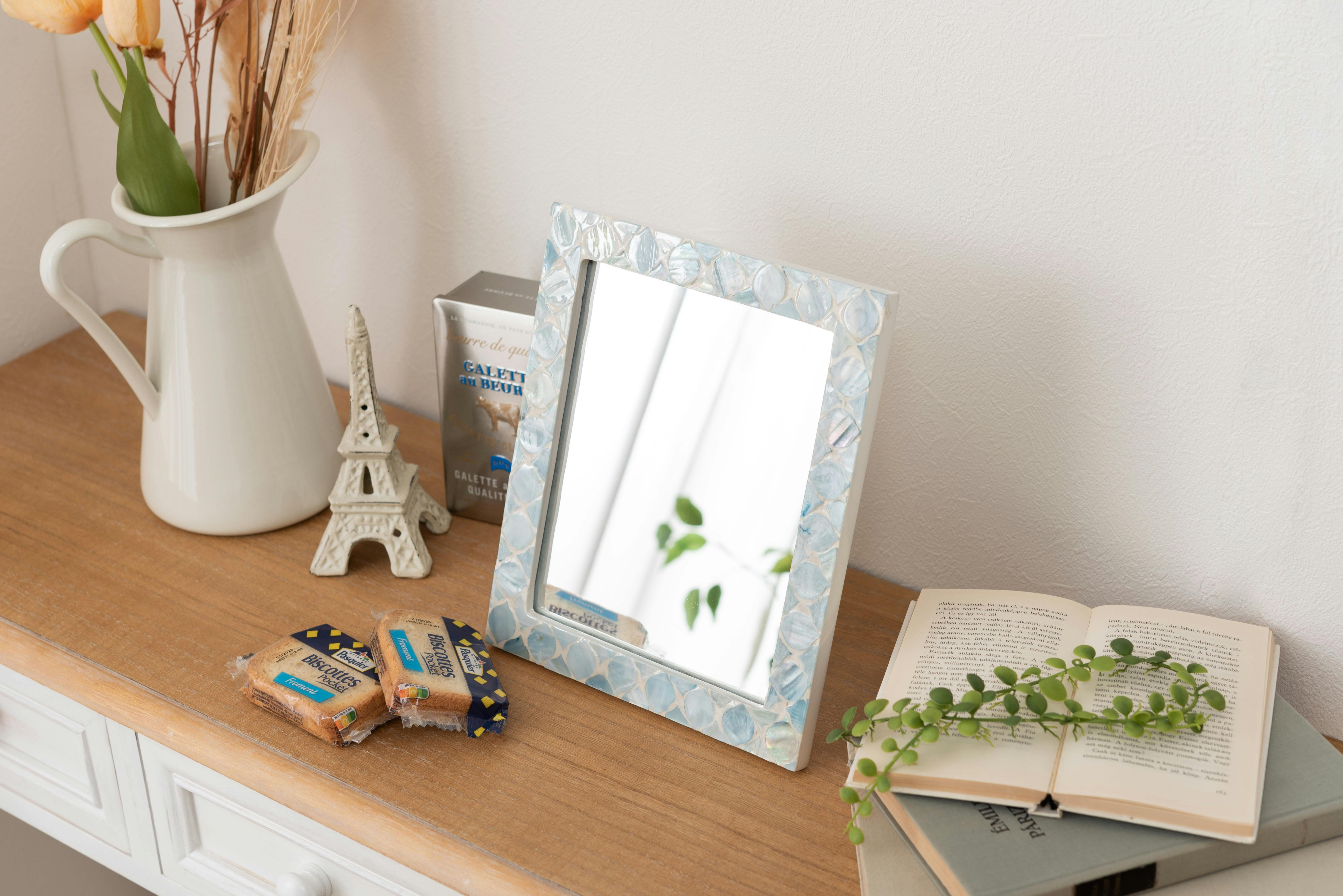 Room Essence ミラー W21×D2×H25 ブルー 完成品 マザーオブパールシェル パール貝 貝 海岸 天然 高級感 ラグジュアリー ナチュラル モダン アジアン ヨーロッパ 軽量 フェミニン シンプル かわいい おしゃれ パール SLY-602A【別送品】