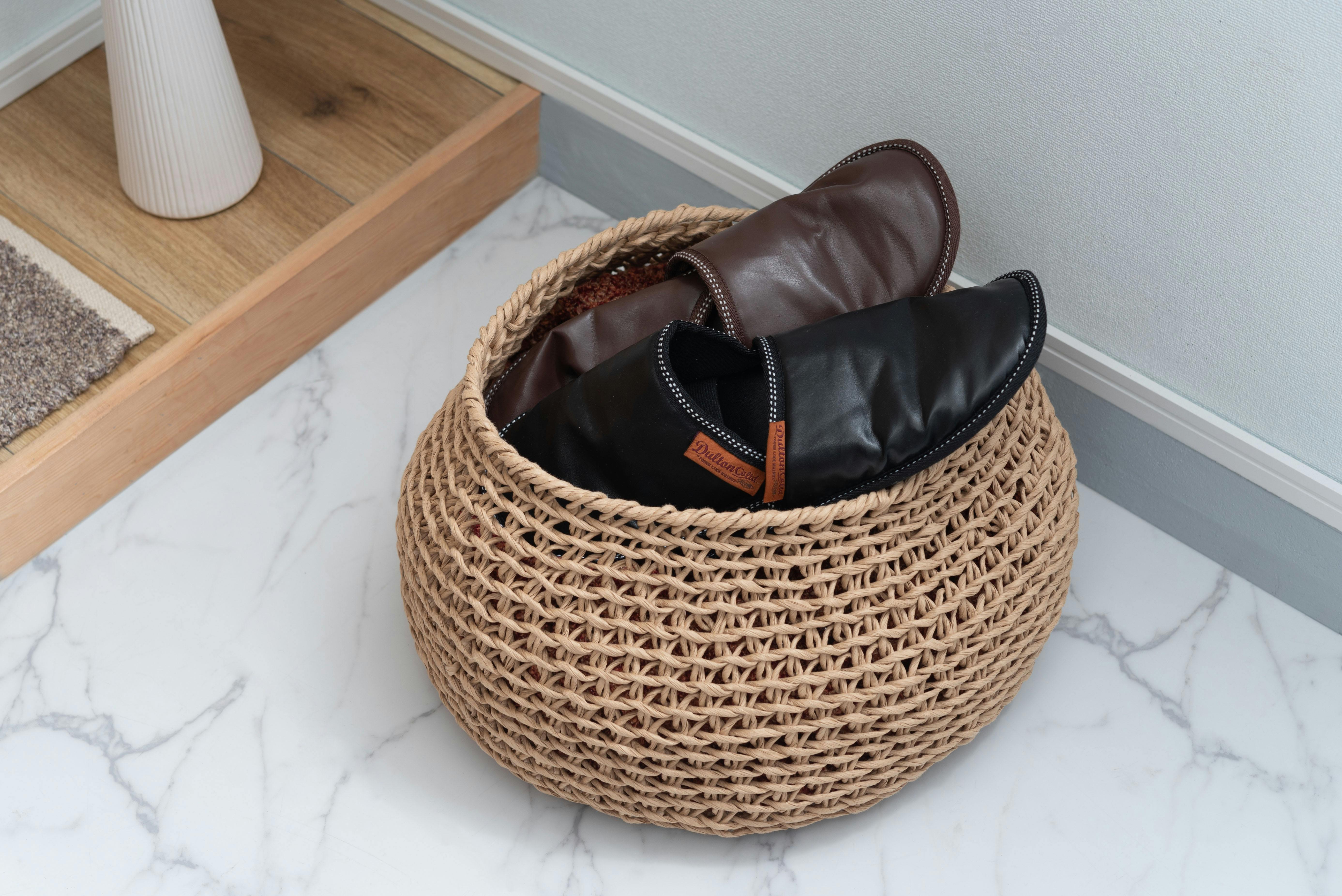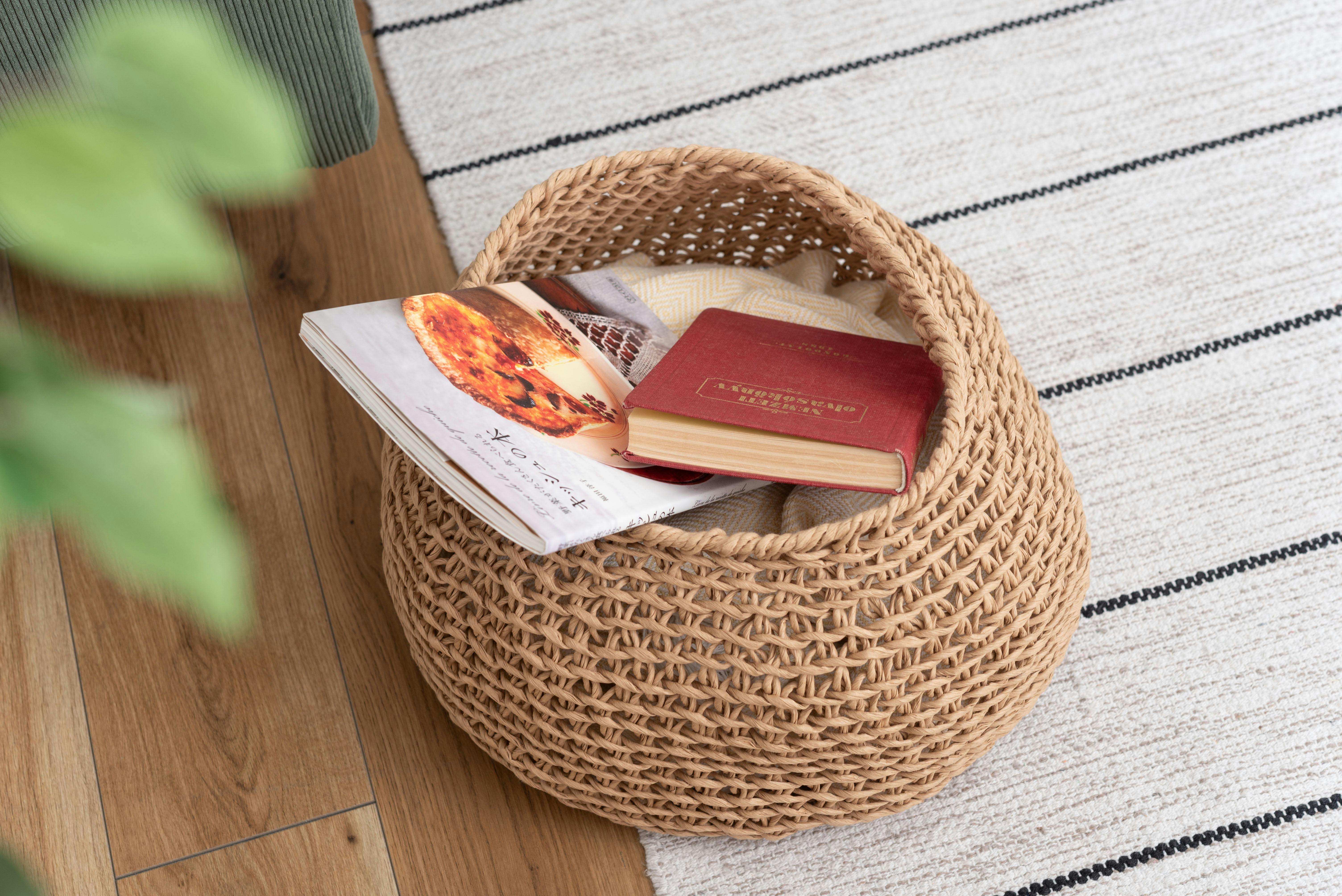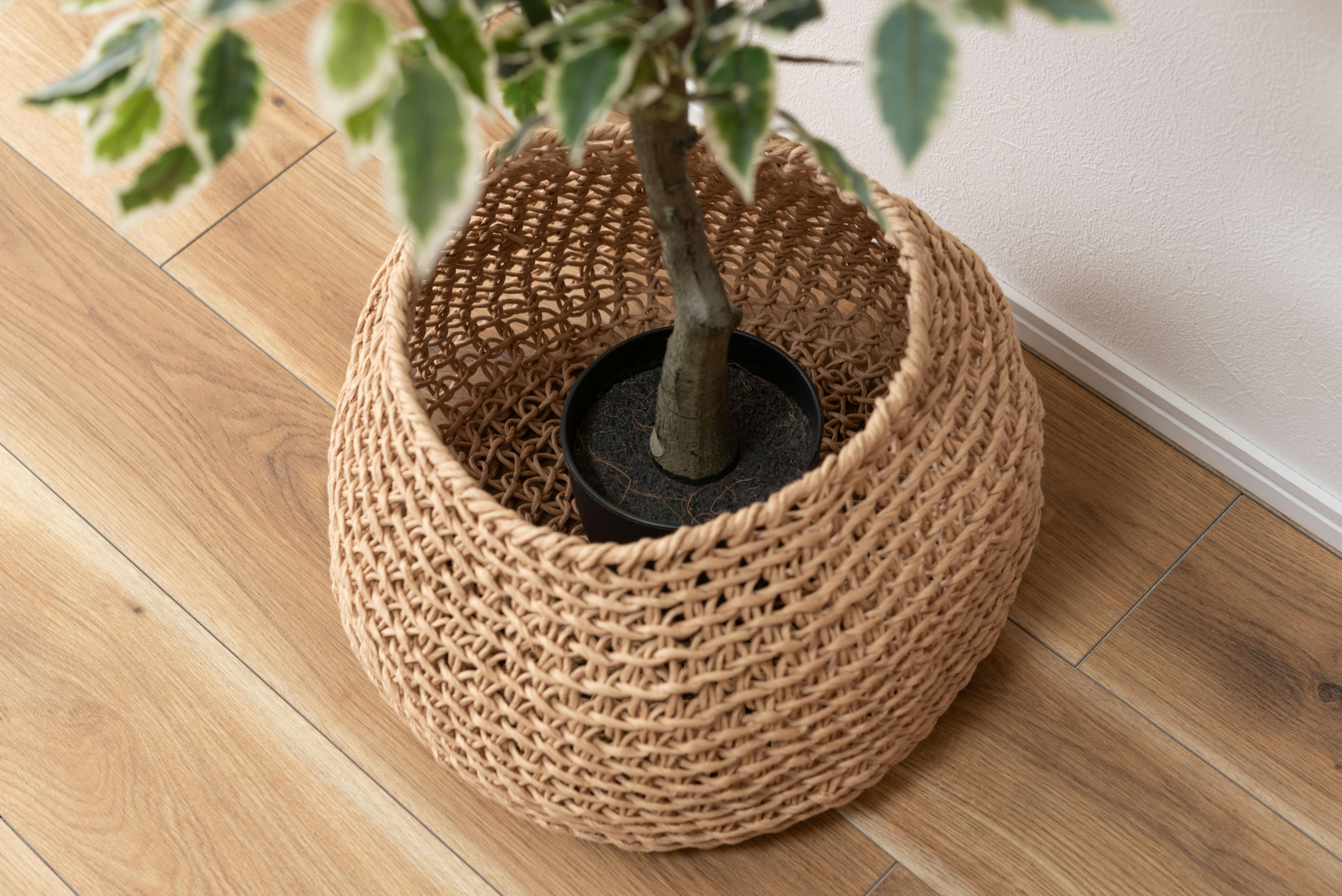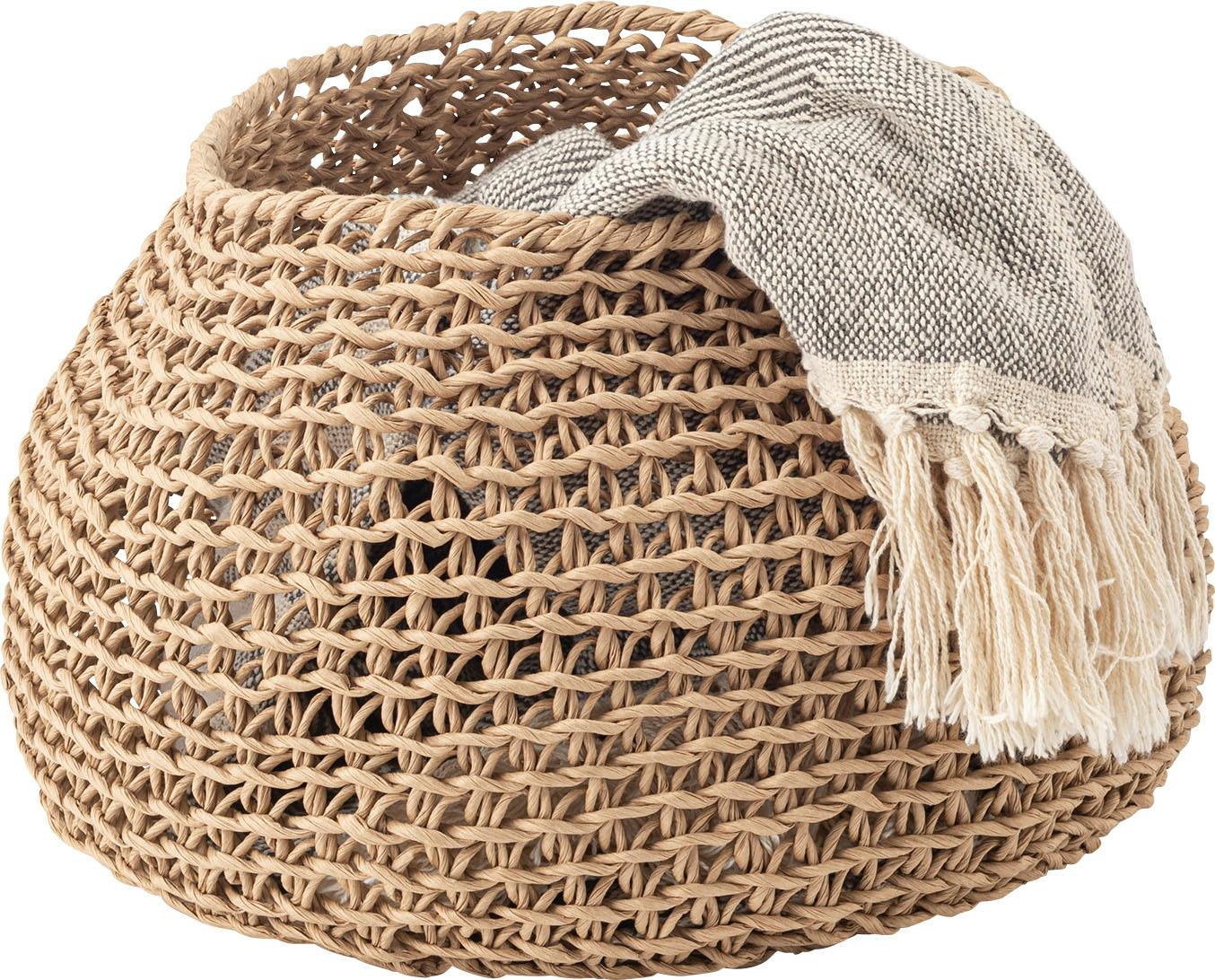 折りたたみ おしゃれ アジアン 北欧 韓国 編み込み 収納 ペーパーコード 入れ物 シンプル 便利 ボックス 軽量 丸 円形