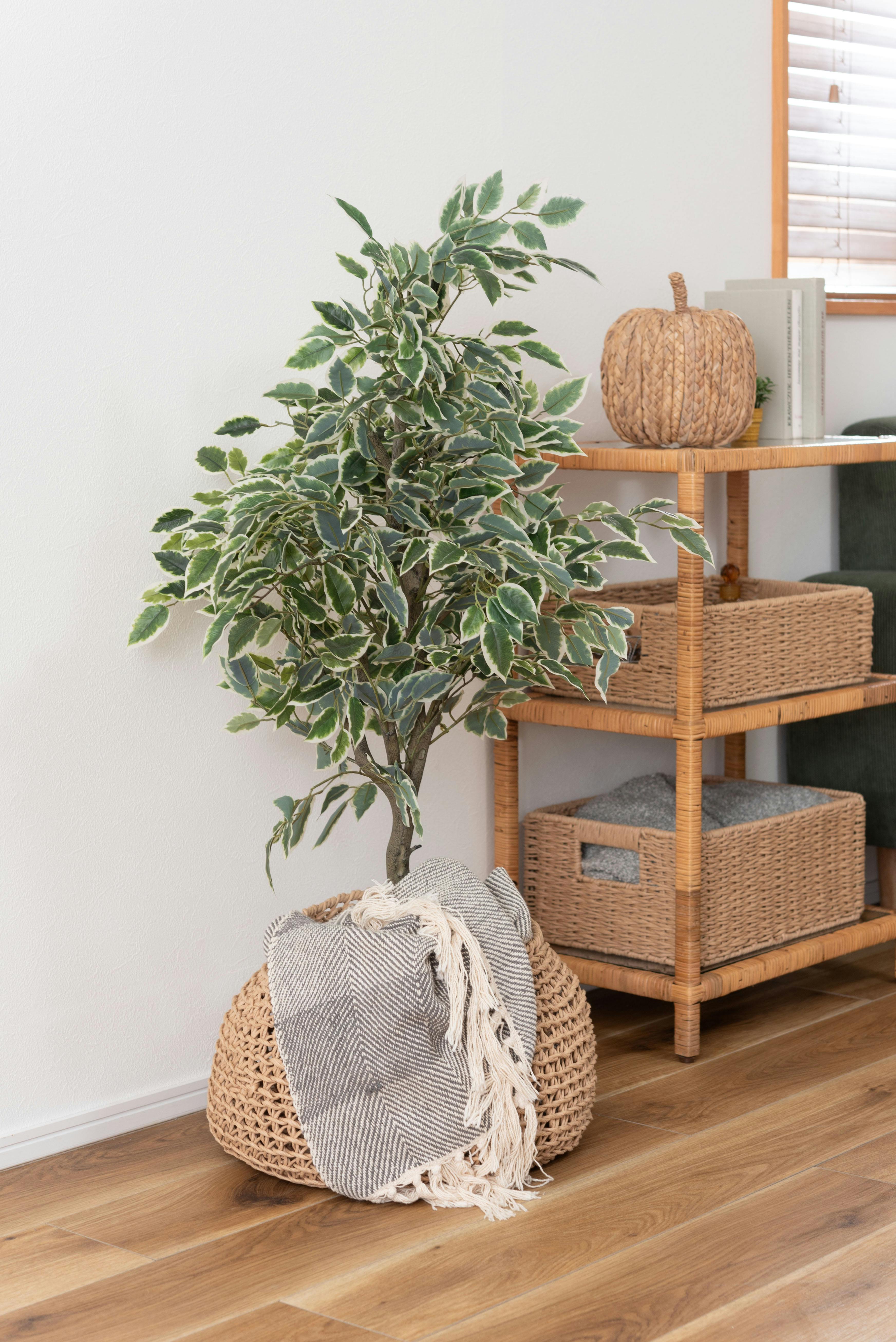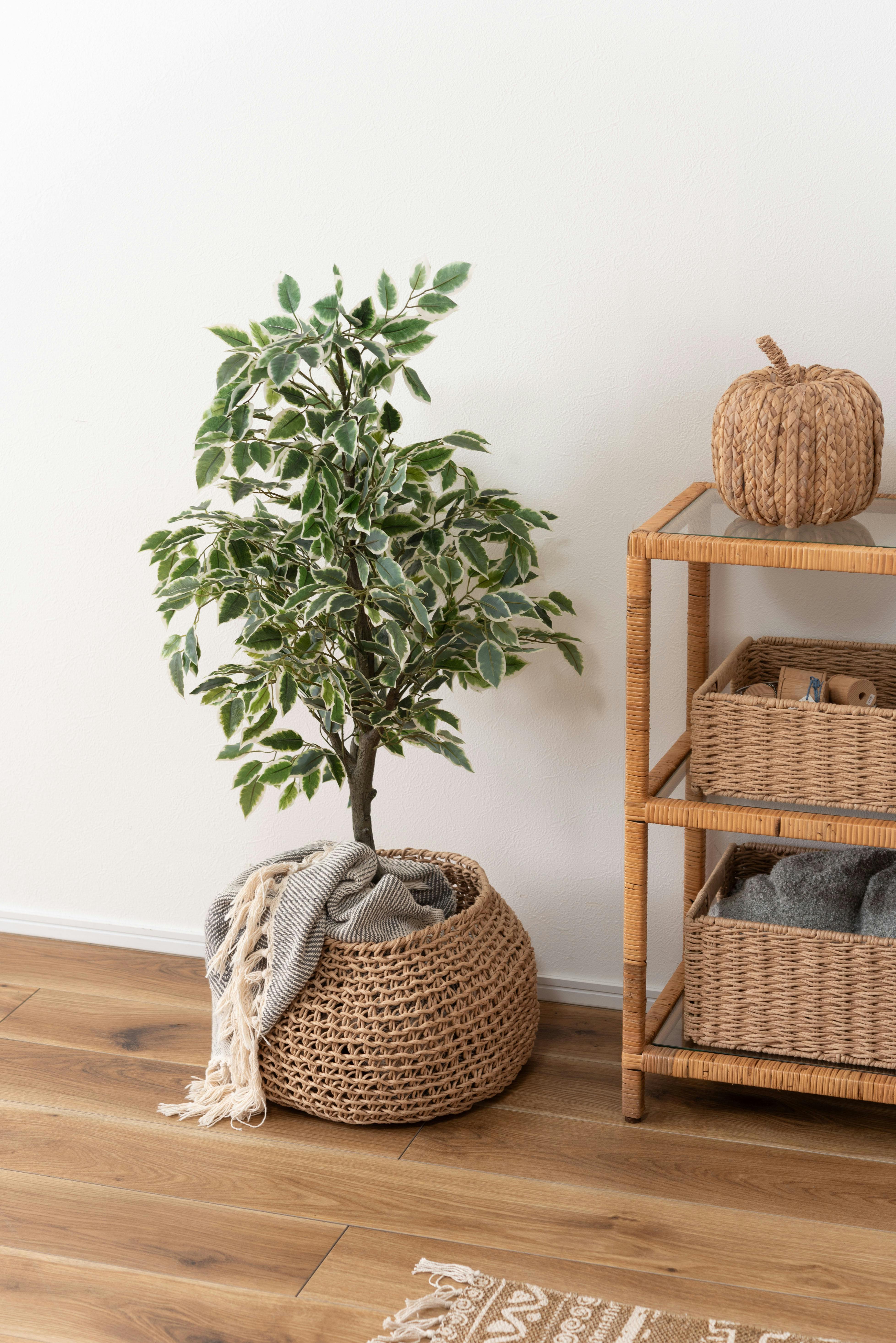 Room Essence ペーパーコードバスケット W34×D34×H25 ナチュラル 完成品 折りたたみ おしゃれ アジアン 北欧 韓国 編み込み 収納 ペーパーコード 入れ物 シンプル 便利 ボックス 軽量 丸 円形 SLY-608【別送品】