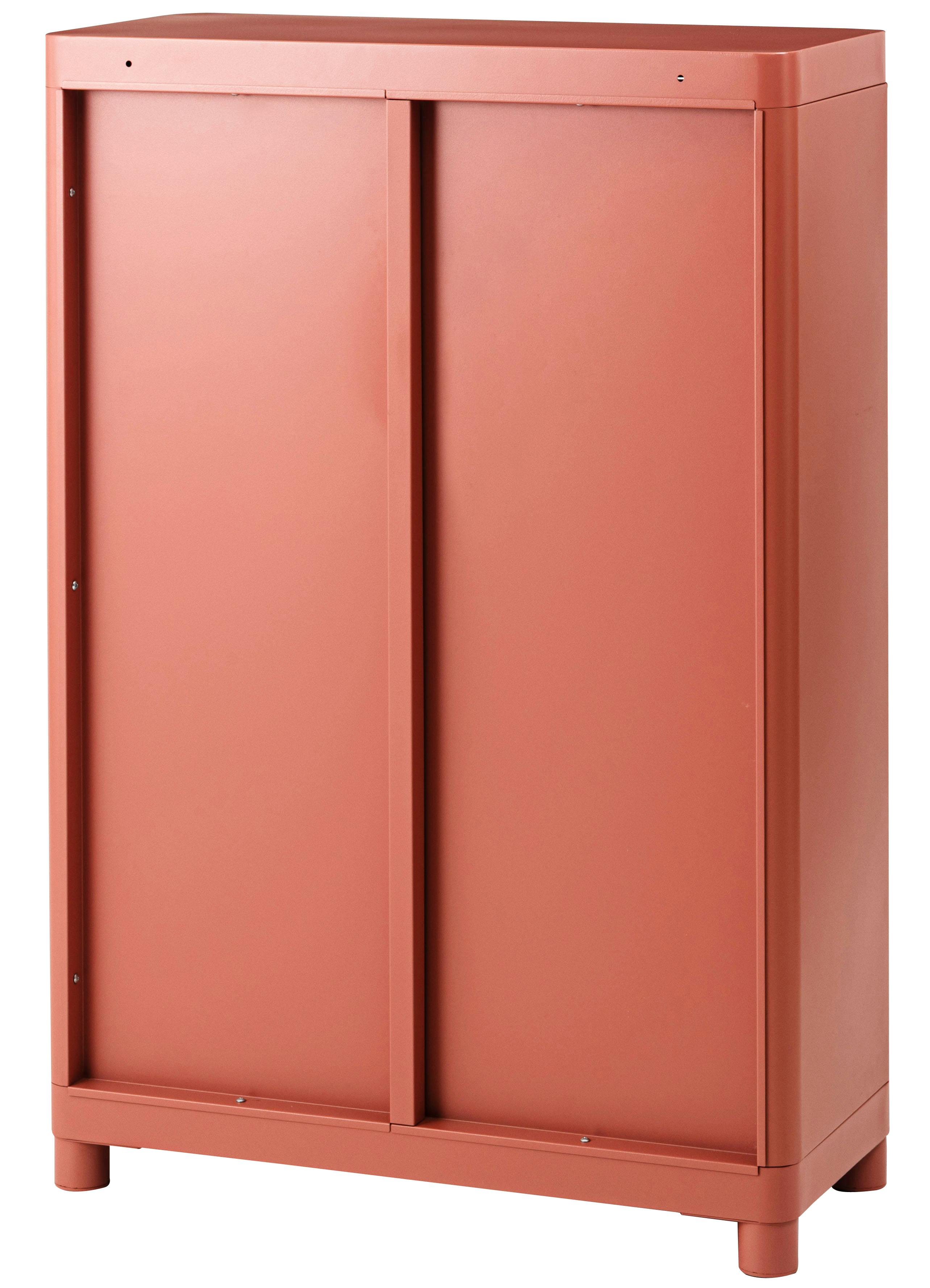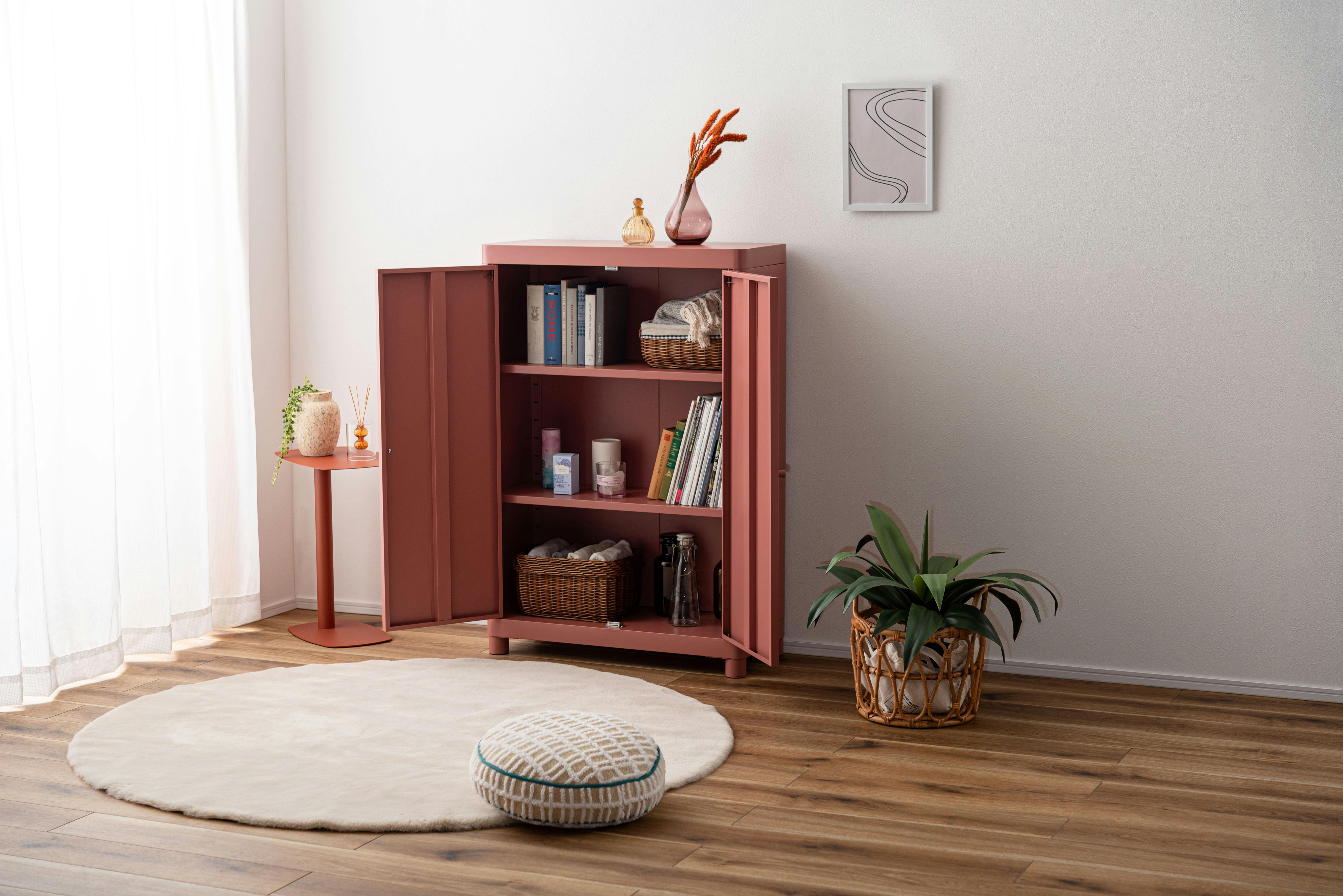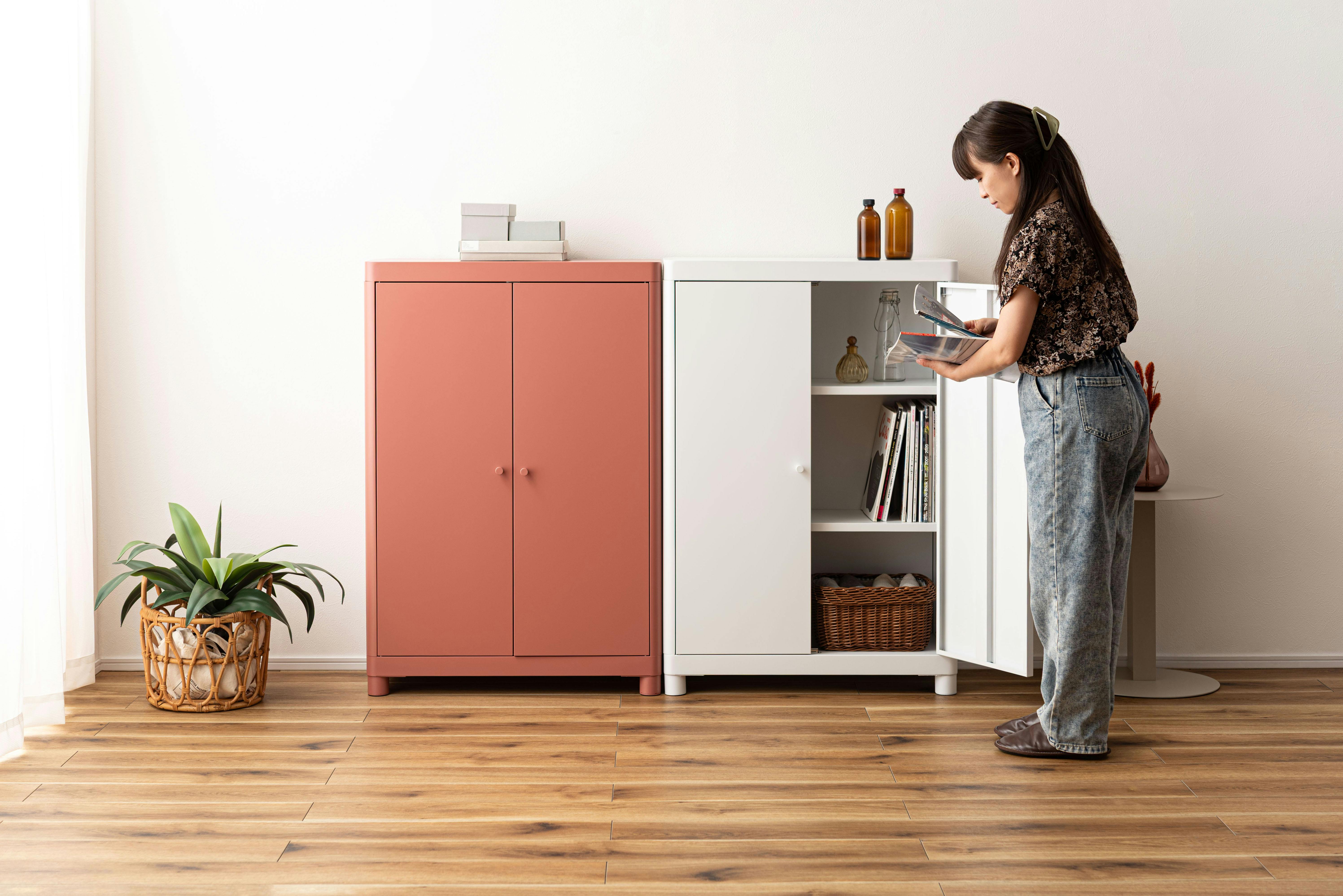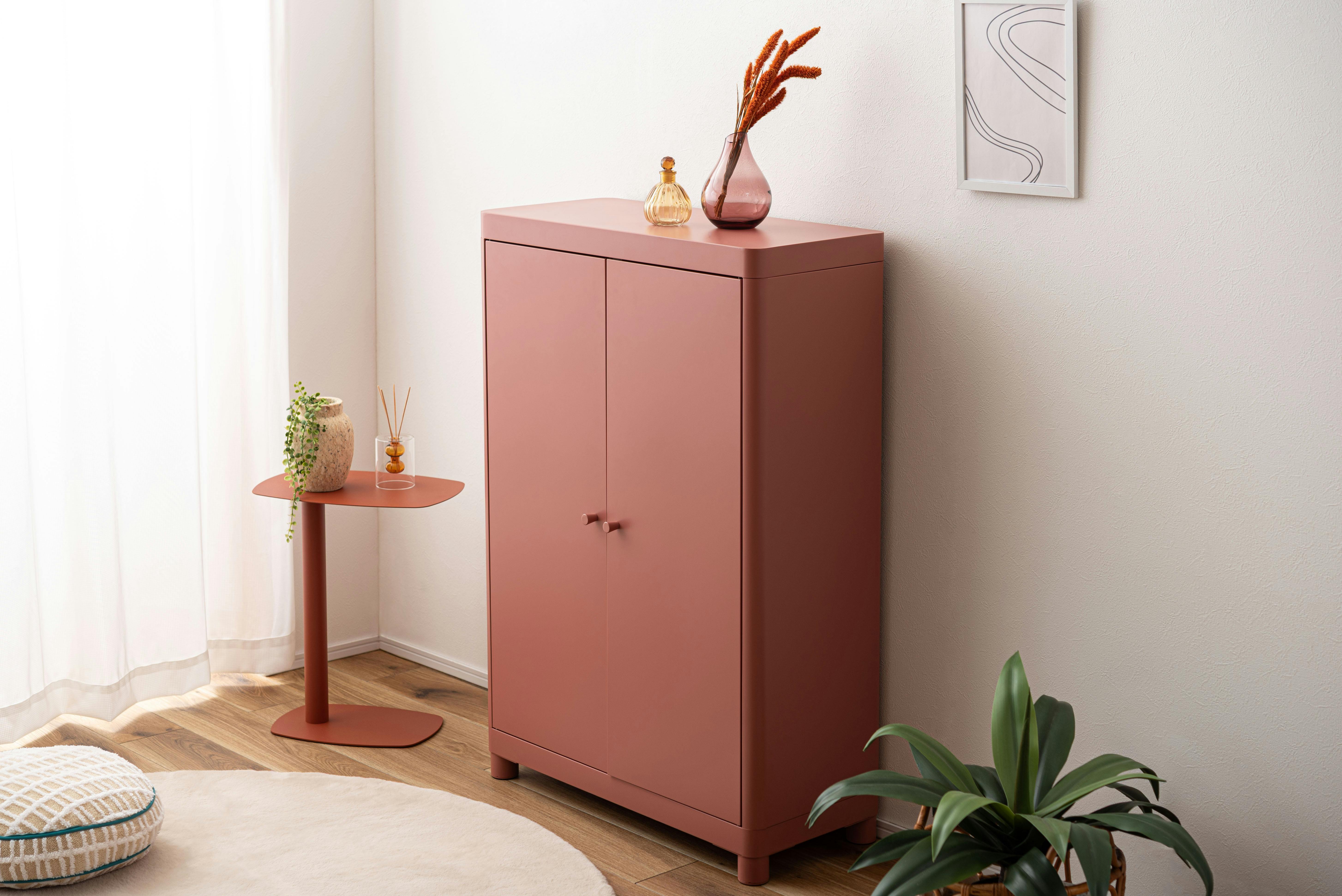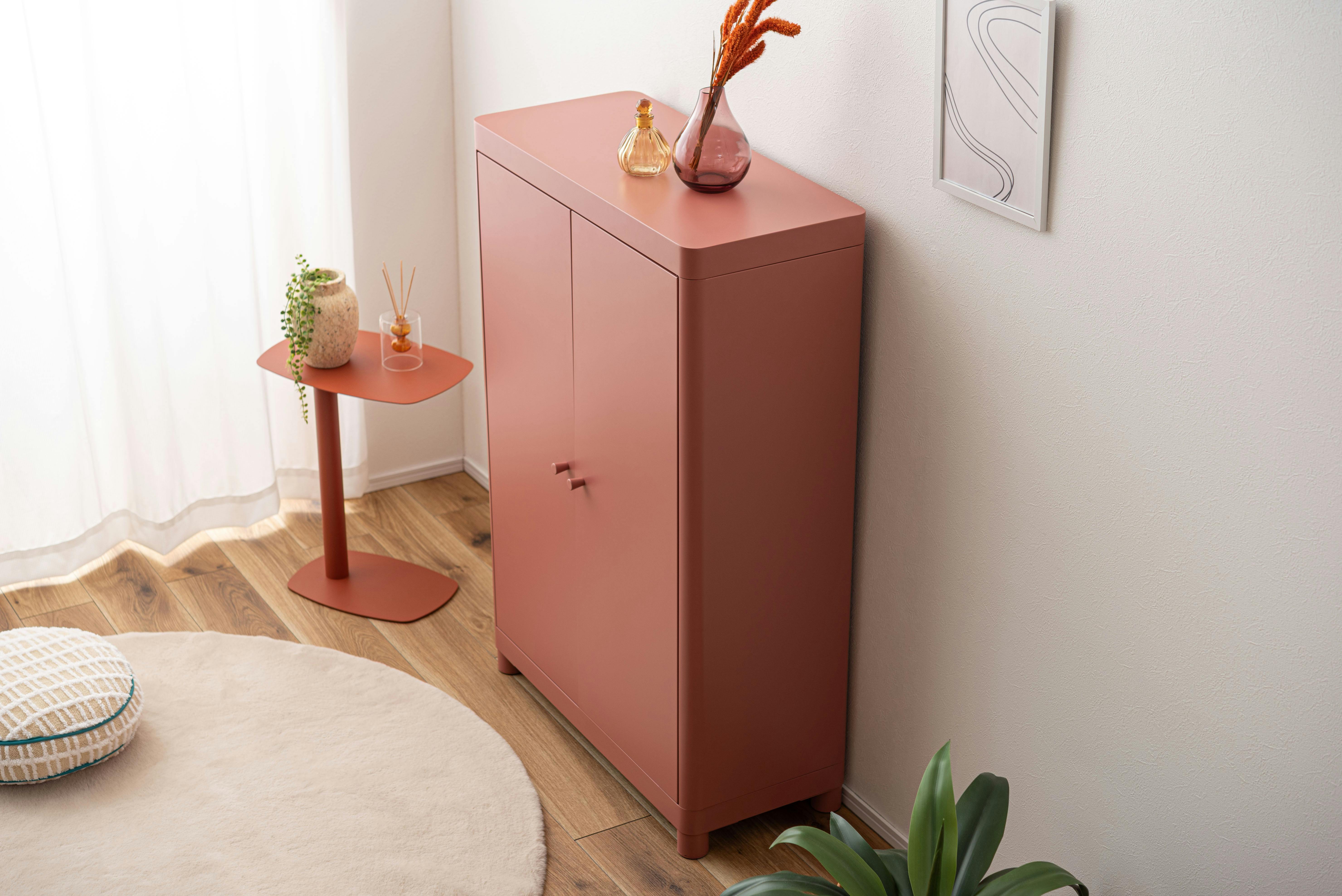 Room Essence チェスト W75×D33×H110.5 コーラルピンク 組立式 スチール おしゃれ リビング ロッカー 収納 ランドリー 更衣室 荷物入れ 扉付き ラック 整理 子供 TPN-50CPK【別送品】