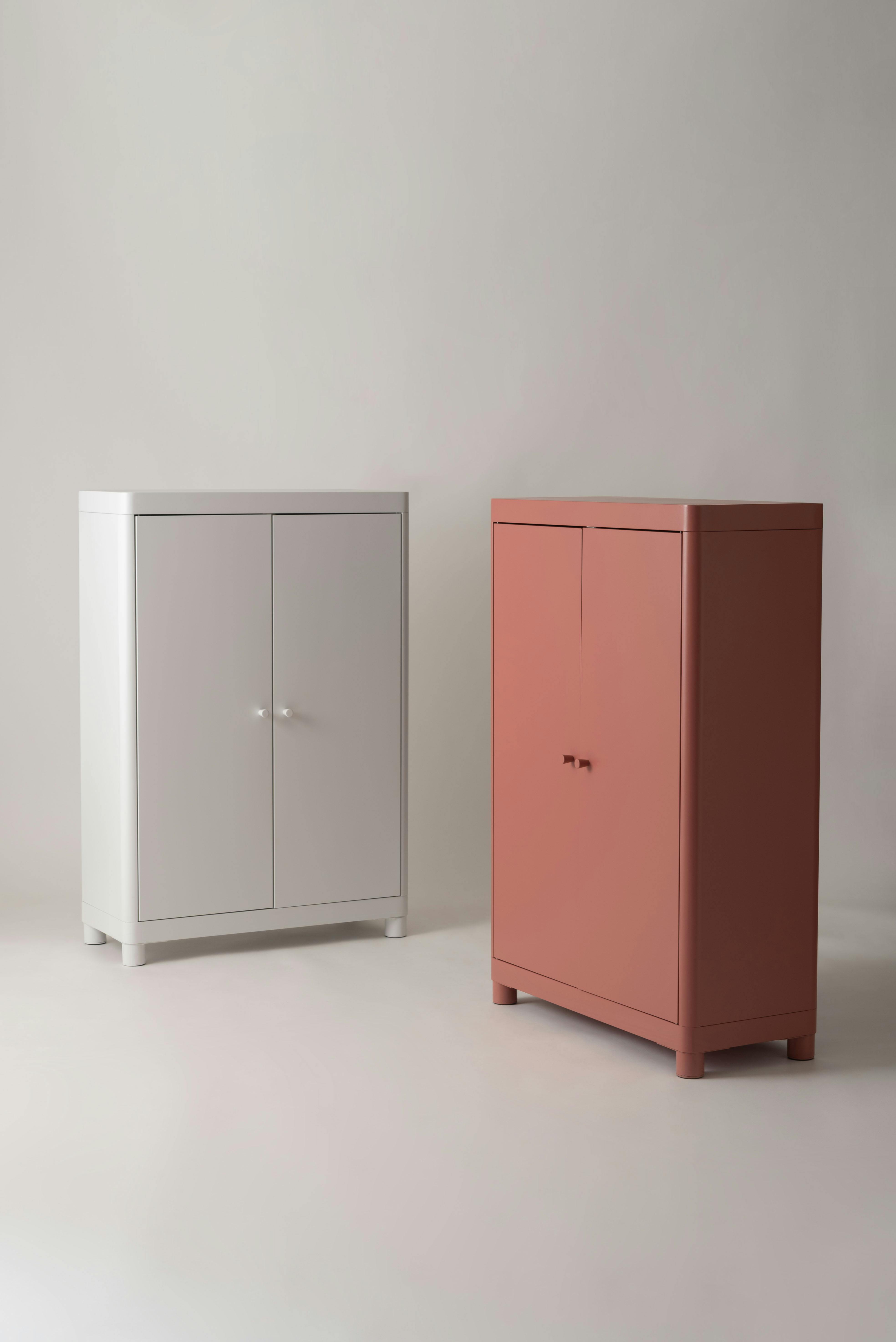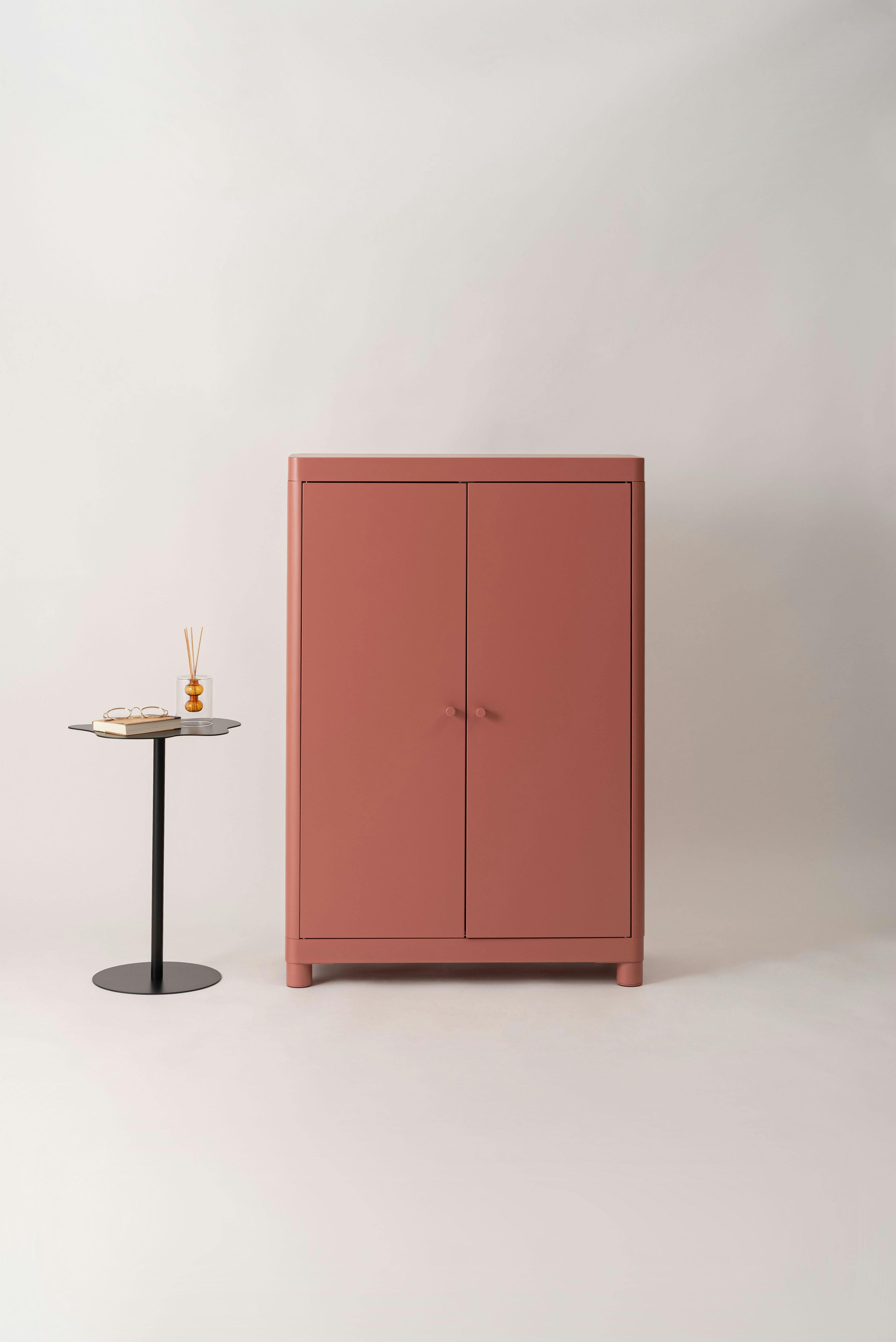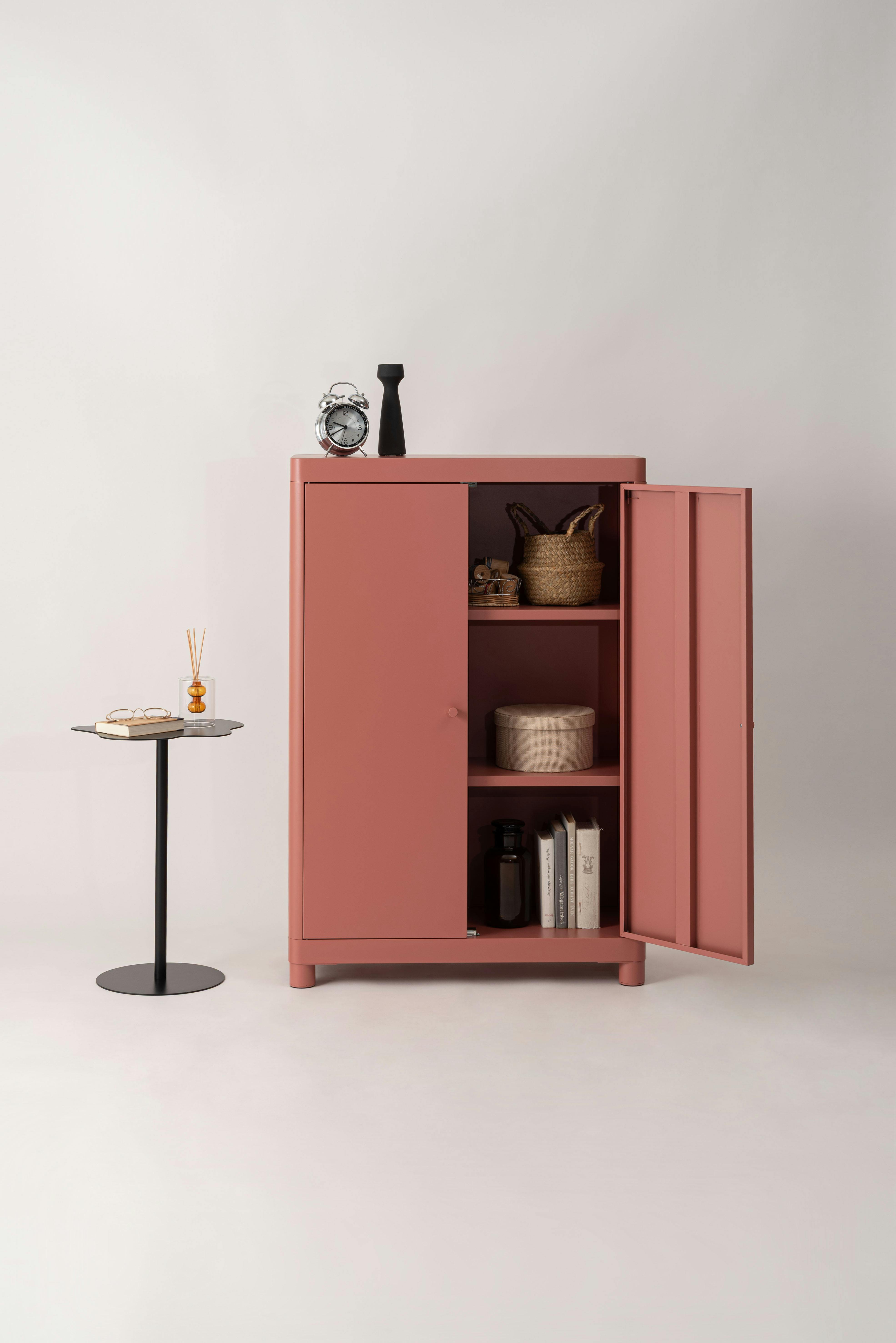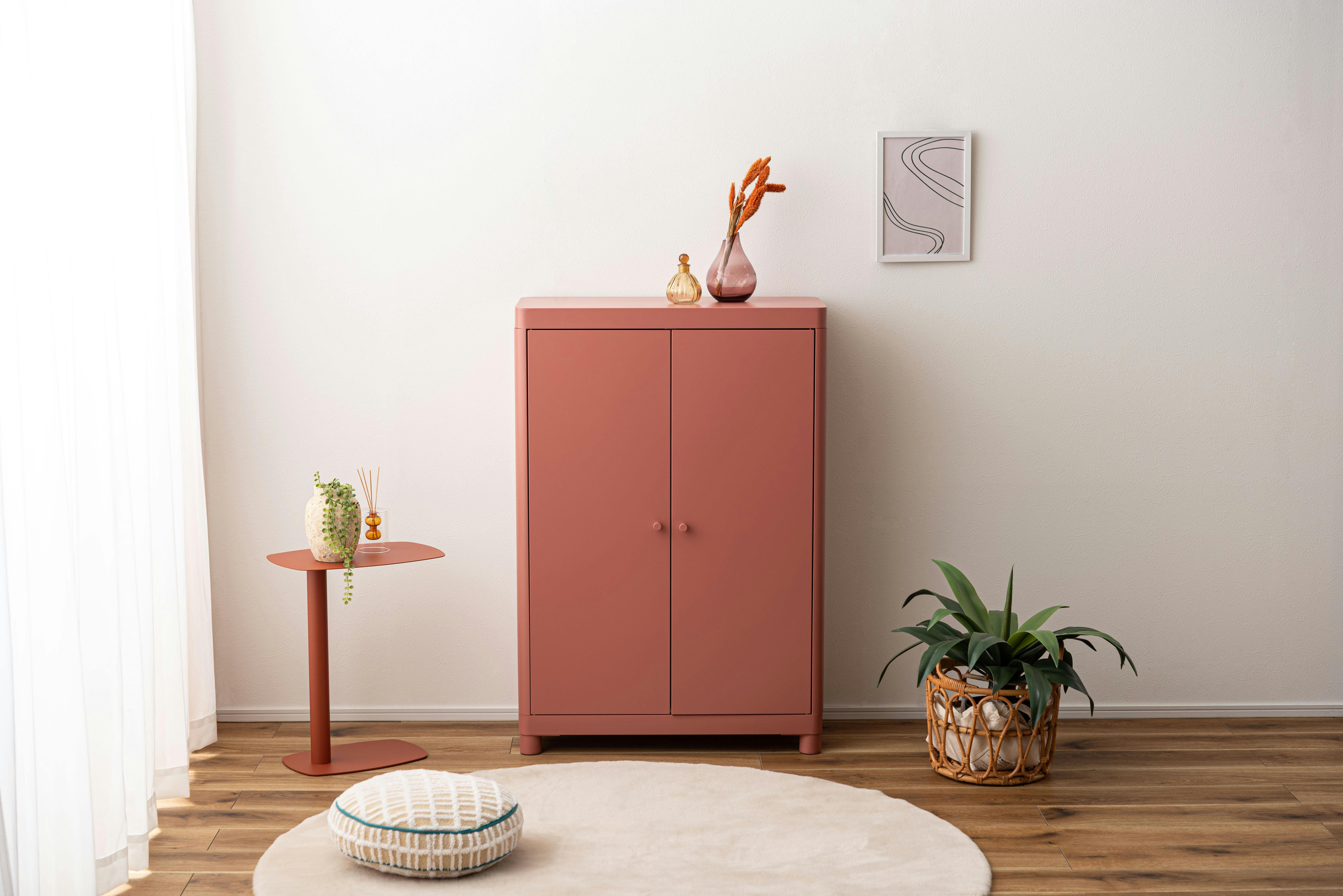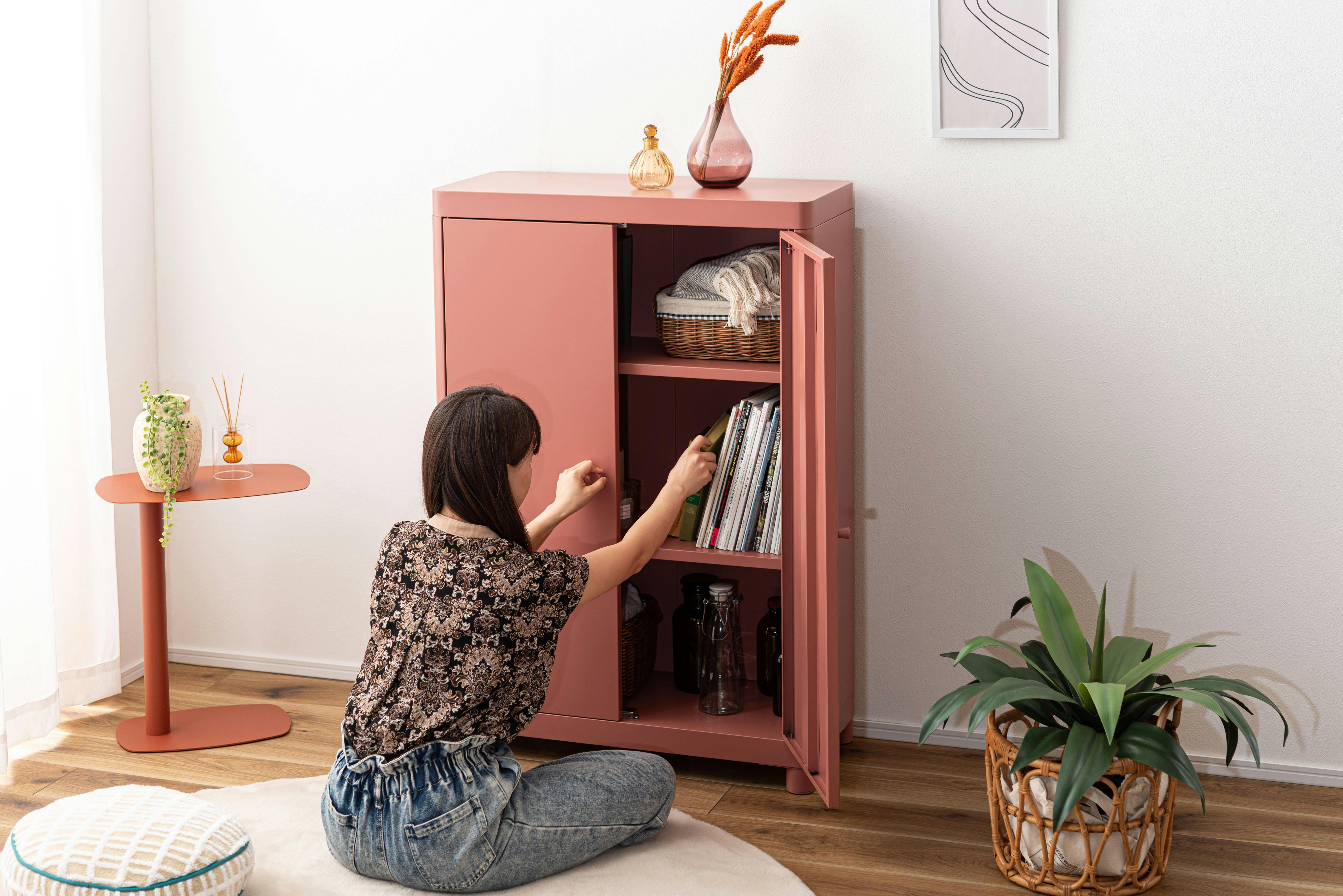 Room Essence チェスト W75×D33×H110.5 コーラルピンク 組立式 スチール おしゃれ リビング ロッカー 収納 ランドリー 更衣室 荷物入れ 扉付き ラック 整理 子供 TPN-50CPK【別送品】