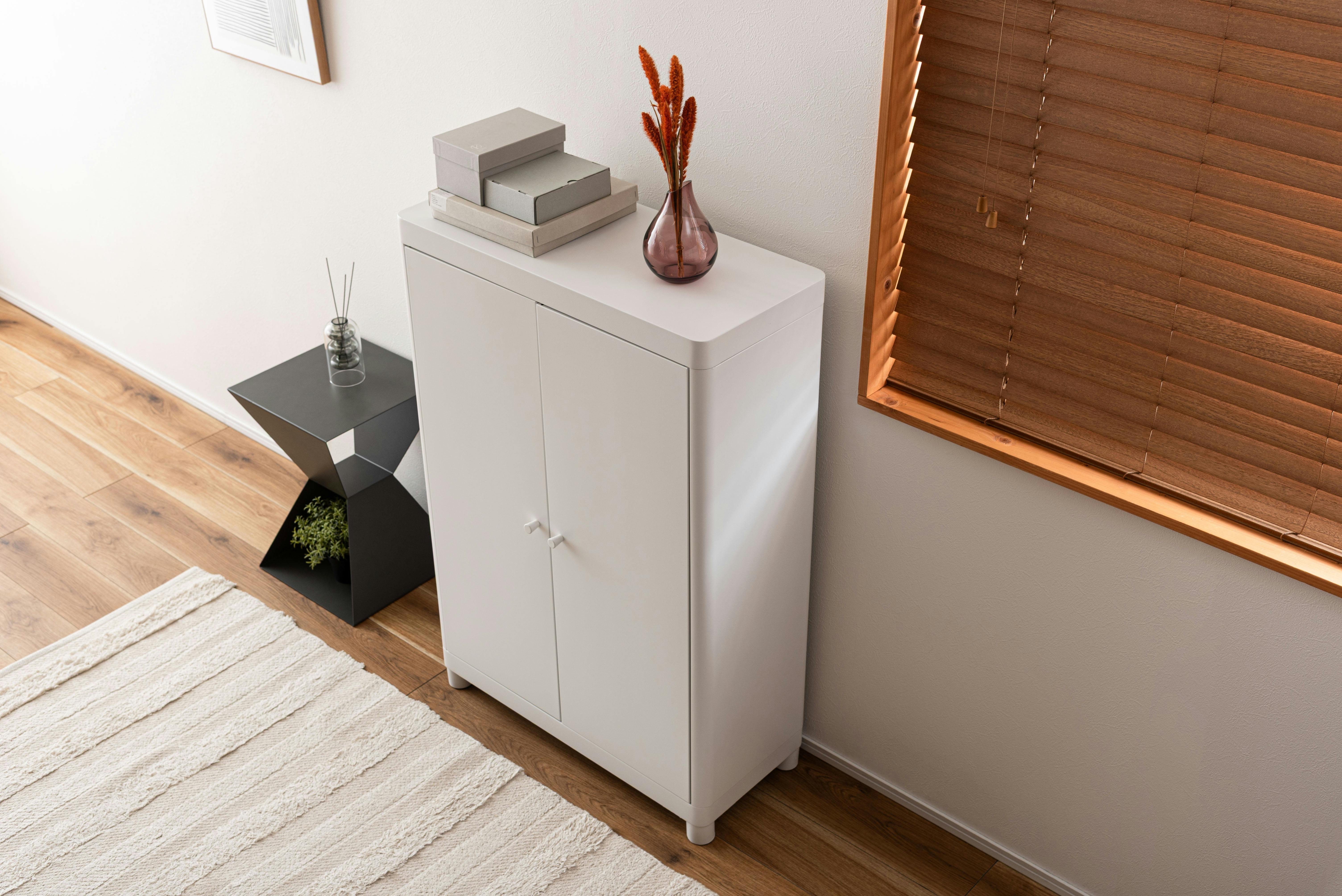 Room Essence チェスト W75×D33×H110.5 ホワイト 組立式 スチール おしゃれ リビング ロッカー 収納 ランドリー 更衣室 荷物入れ 扉付き ラック 整理 子供 TPN-50WH【別送品】