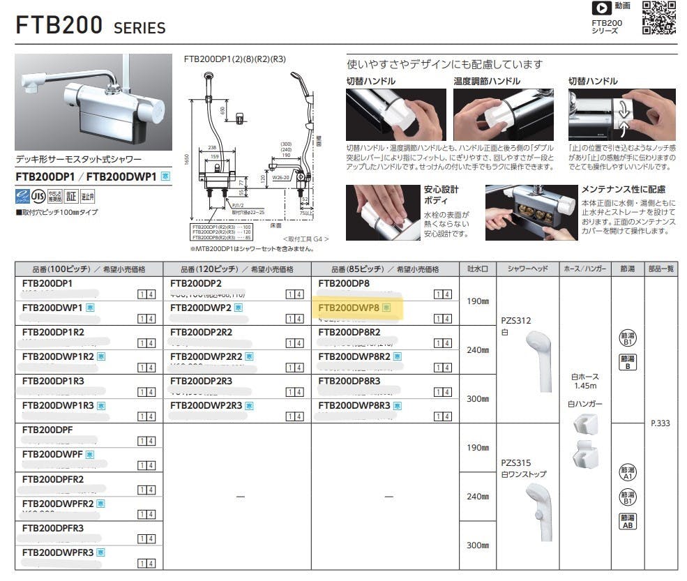 KVK (寒) デッキ形サーモスタット式シャワー FTB200DWP8【別送品】