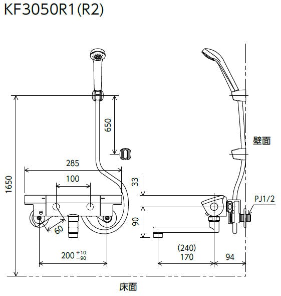 • KVK サーモスタット式シャワー(170mmパイプ付) KF3050R1【別送品】