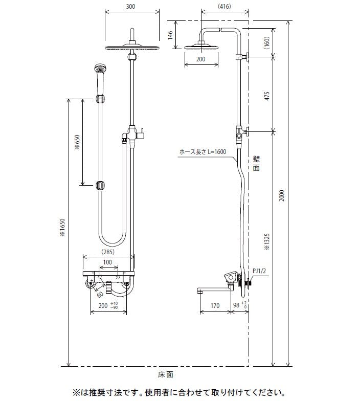 ●肩までスッポリ入る角型シャワー。中央は一気に散水する旋回流シャワー(eシャワー)で、周りをストレートシャワーで覆う構造です。2種類のシャワーの組み合わせにより、浴び心地の良いオーバーヘッドならではの爽快感が得られるシャワーを実現しました。また、幅の広いシャワーは肩までスッポリ入りますので、シャワーだけで全身が温まります●高温出湯温度規制(約50℃)●一般地用のみ●メッキオーバーヘッドシャワー(eシャワー)角●シャワーヘッド:メッキ●ホース:ニューメタリック1.6m●ハンガー:メッキ