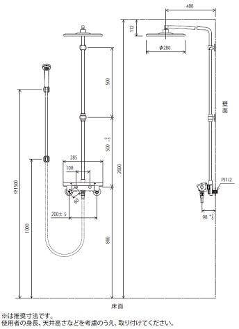 ●肩までスッポリ入る角型シャワー。中央は一気に散水する旋回流シャワー(eシャワー)で、周りをストレートシャワーで覆う構造です。2種類のシャワーの組み合わせにより、浴び心地の良いオーバーヘッドならではの爽快感が得られるシャワーを実現しました。また、幅の広いシャワーは肩までスッポリ入りますので、シャワーだけで全身が温まります●高温出湯温度規制(約50℃)●一般地用のみ●メッキオーバーヘッドシャワー(eシャワー)丸●シャワーヘッド:メッキ●ホース:ニューメタリック1.6m●ハンガー:メッキ