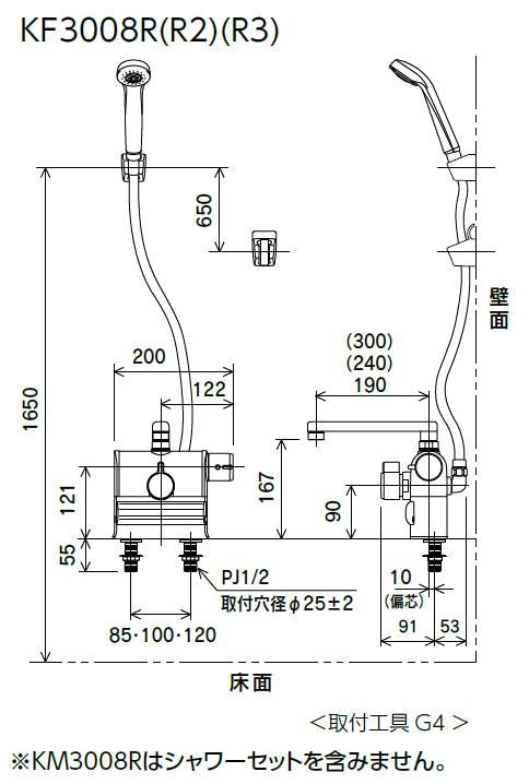 KVK デッキ形サーモスタット式混合栓 右ハンドル仕様 可変ピッチ KM3008R【別送品】
