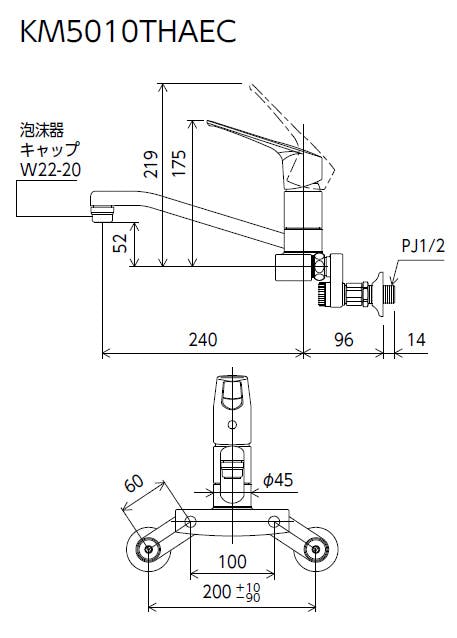 KVK (寒) 楽締めソケット付シングル混合栓(eレバー) KM5010ZTHAEC【別送品】